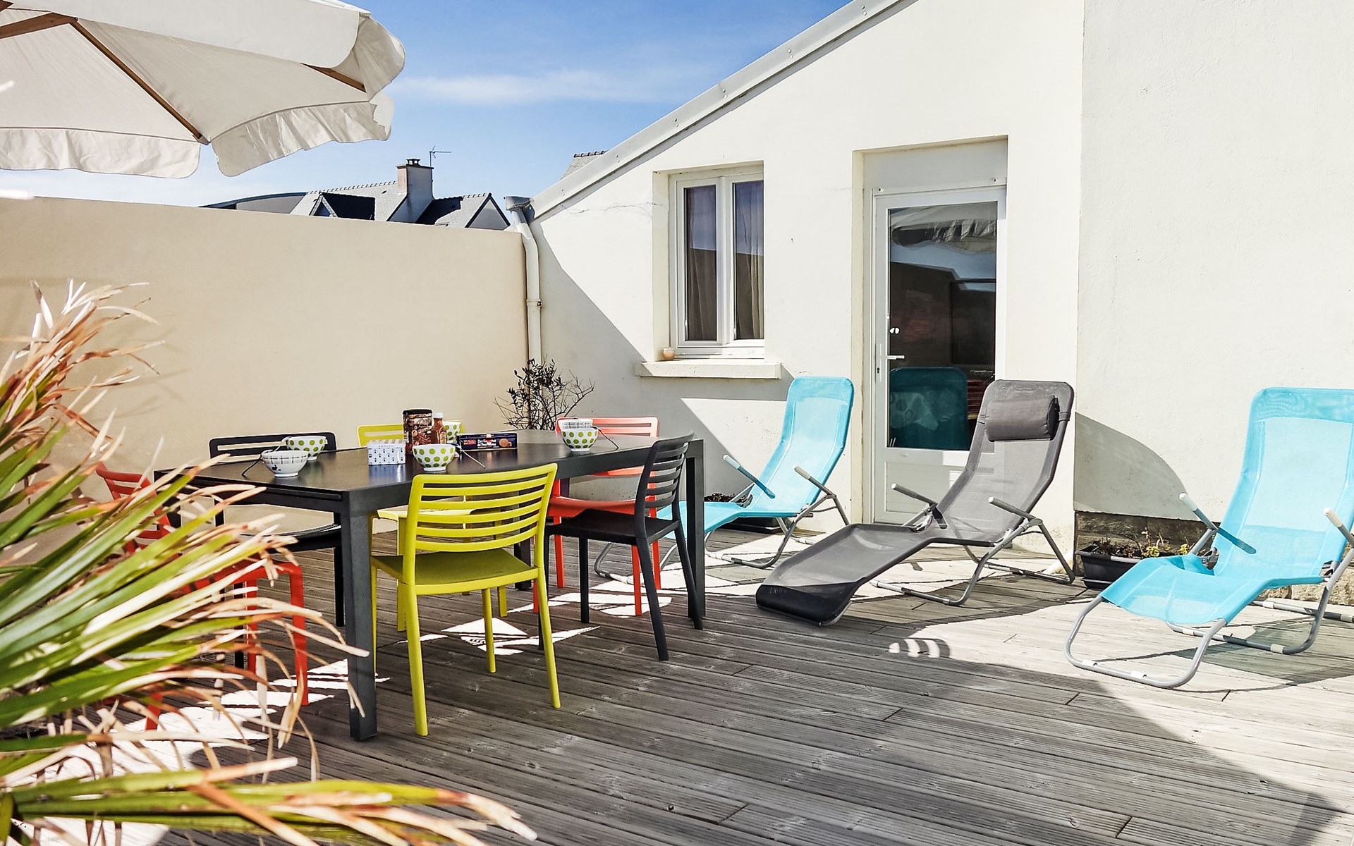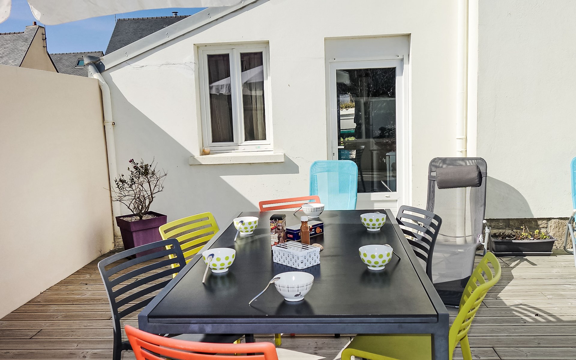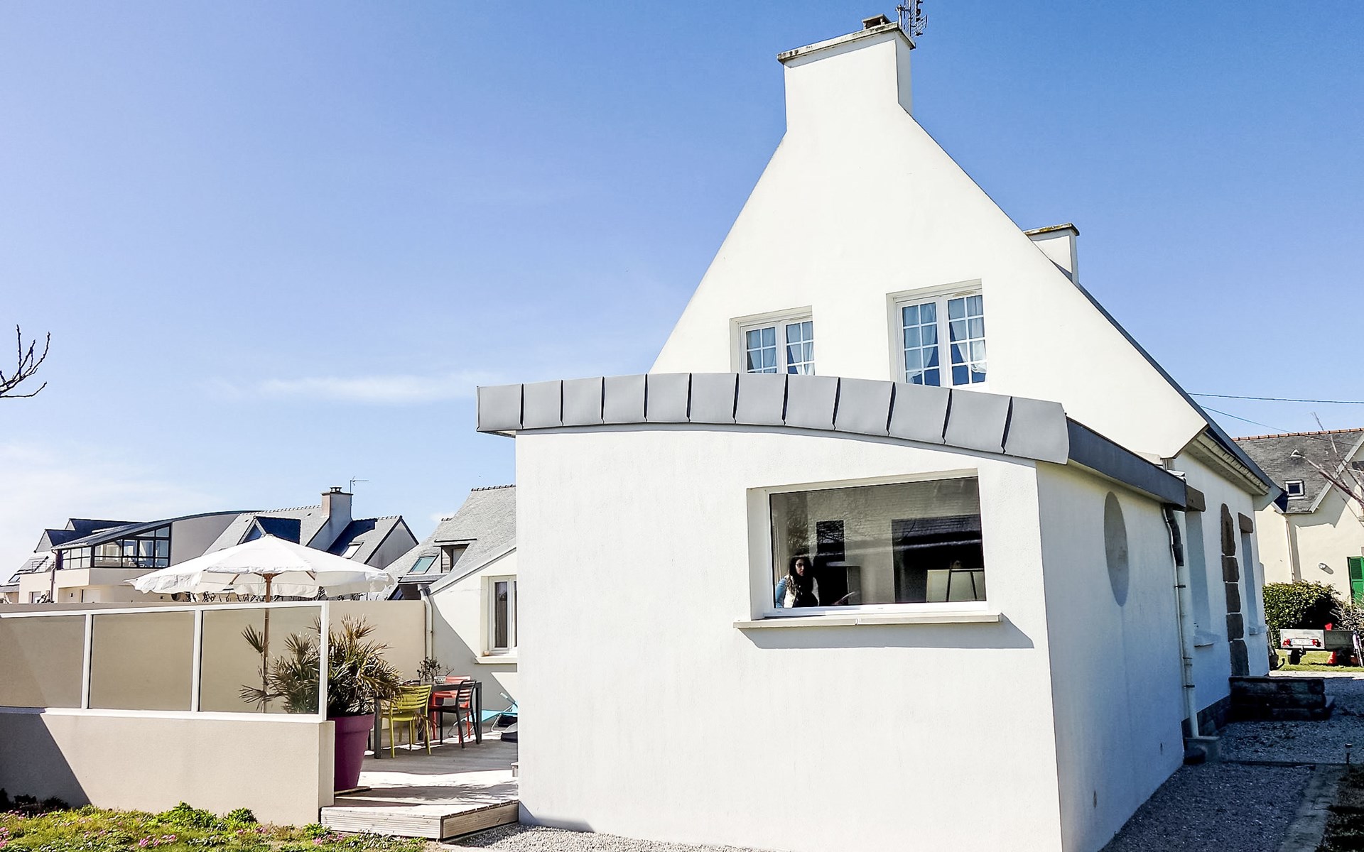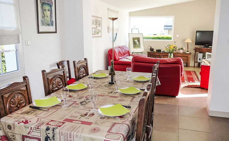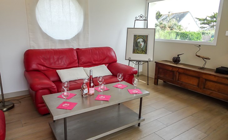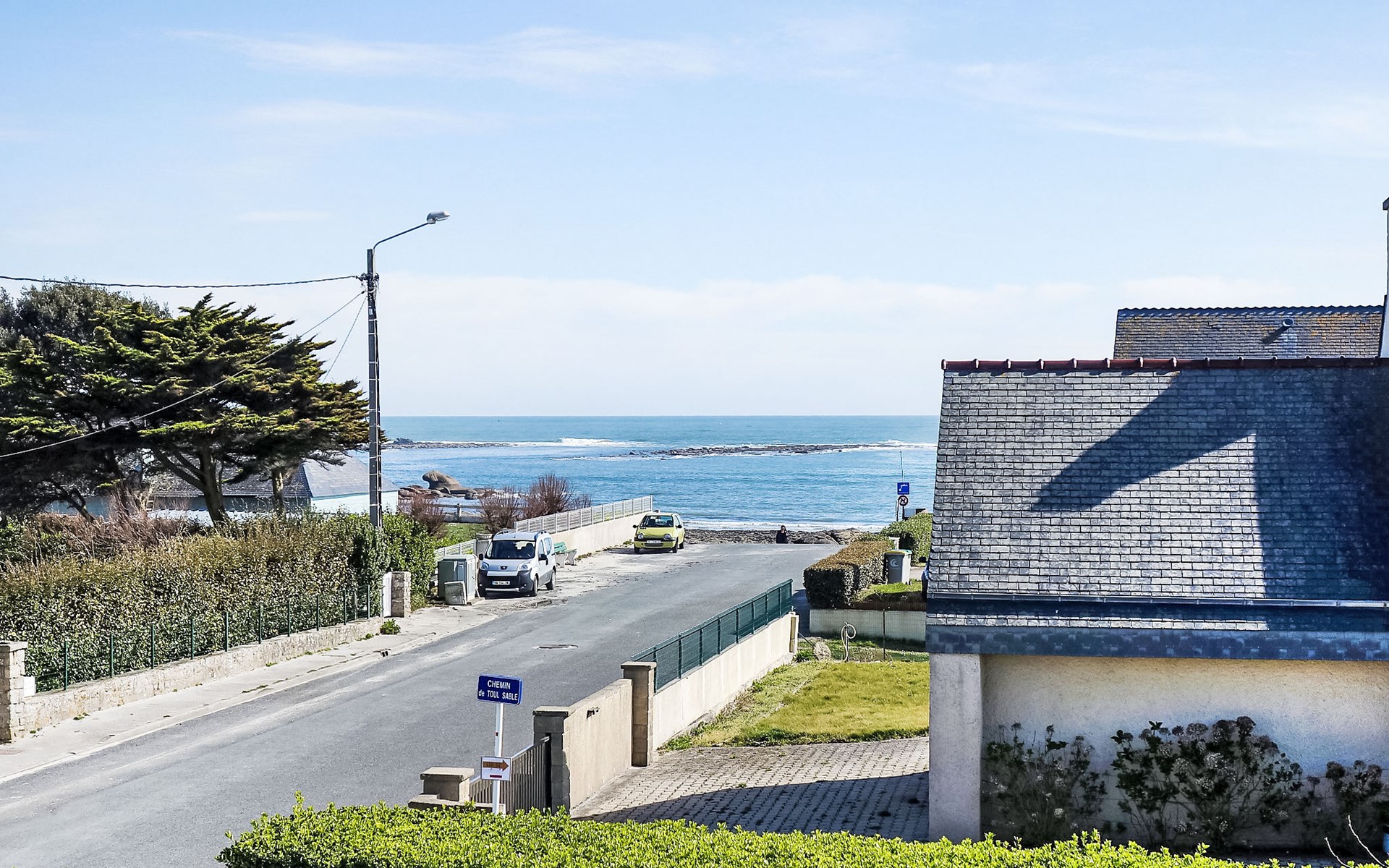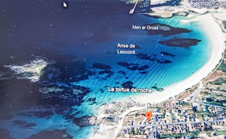 Einfamilienhaus "Sables Blancs". Ausserhalb des Ortes, 150 m vom Meer, 150 m vom Strand, in einer Sackgasse. Zur Alleinbenutzung: Garten 500 m2 (eingezäunt) Rasen, Parkplatz (für 2 Autos) auf dem Grundstück, öffentliche Parkplätze auf der Strasse. Einkaufsgeschäft 3 km, Lebensmittelgeschäft 3 km, Supermarkt 5 km, Restaurant 700 m, Bushaltestelle 5 km, Sandstrand "les sables blancs" 150 m. Golfplatz (18 Loch) 20 km, Tennis 5 km, Reitstall 8 km. Nahe gelegene Sehenswürdigkeiten: Bénodet 18 km, Quimper 35 km, Concarneau 36 km, Pont l'Abbé 9 km, Le Guilvinec 9 km, Lesconil 3 km. Wandergebiete: GR 34.