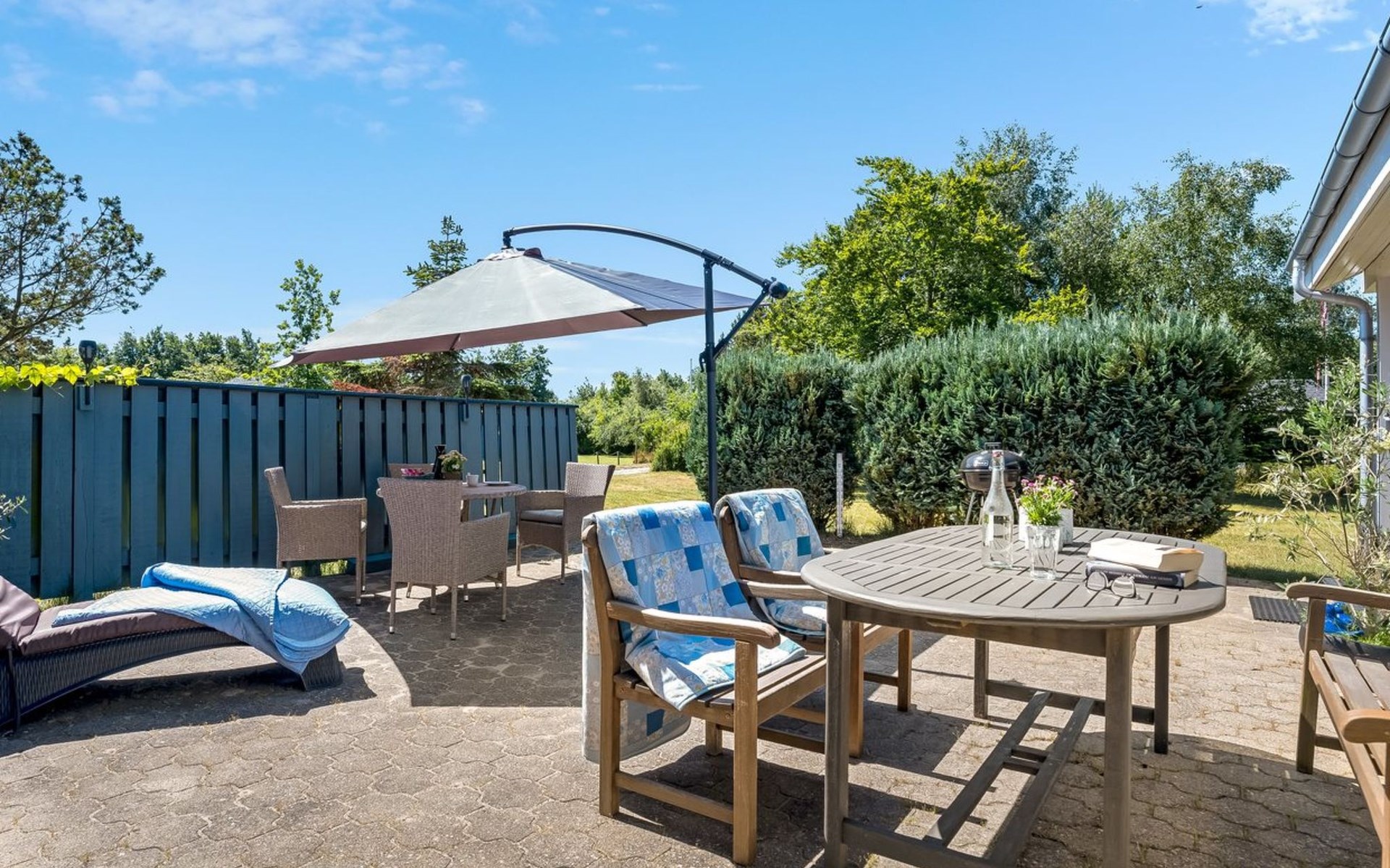 Einfamilienhaus, Baujahr 1989. 100 m vom Meer. Zur Alleinbenutzung: naturbelassenes Grundstück 1'200 m2. Grill (Schaukel). Im Hause: Tischfussball, Waschmaschine. Parkplatz beim Haus. Carport. E-Ladestation. Lebensmittelgeschäft 3 km. Der Besitzer akzeptiert keine Jugendgruppen.
