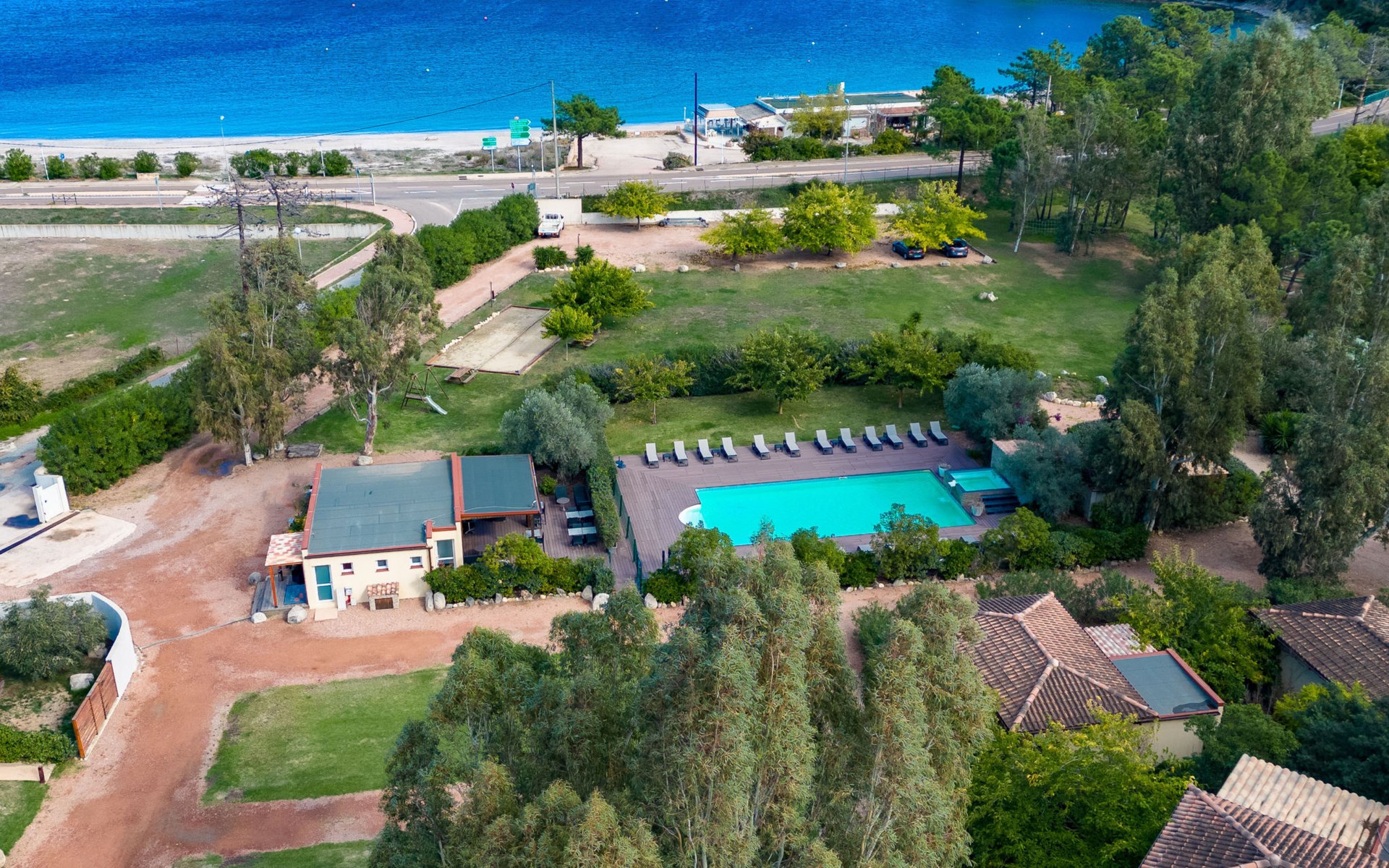 Ferienanlage "Marina di Favone", auf 2 Stockwerken. 3 Häuser in der Residenz. 18 Wohnungen in der Residenz. 300 m vom Zentrum von Favone, 10 km vom Zentrum von Solenzara, 116 km vom Zentrum von Bastia, 200 m vom Meer, Strasse zu überqueren. Zur Mitbenutzung: Grundstück 15'000 m2 mit Pflanzen und Bäumen, Wiese, Schwimmbad (14 x 7 m, saisonale Verfügbarkeit: 30.Apr. - 31.Okt. Öffnungszeiten Schwimmbad: 09:00-20:00). WC im Poolbereich, Aussendusche, Sprudelbad, Boccia, Terrasse, Gartenmöbel (Rutschbahn, Schaukel). In der Anlage: Empfang, Bar, Wireless LAN, Waschmaschine, Wäschetrockner (zur Mitbenutzung). Parkplatz auf dem Grundstück. E-Ladestation. Einkaufsgeschäft 10 km, Bushaltestelle 350 m, Sandstrand "Plage de Favone" 200 m. Minigolf 100 m. Nahe gelegene Sehenswürdigkeiten: Porto-Vecchio 28 km, Plage de Santa Giulia 36 km, Plage de Palombaggia 37 km, Bonifacio 55 km. Bitte beachten: Fahrzeug empfohlen. Das Foto ist nur ein Hausbeispiel.