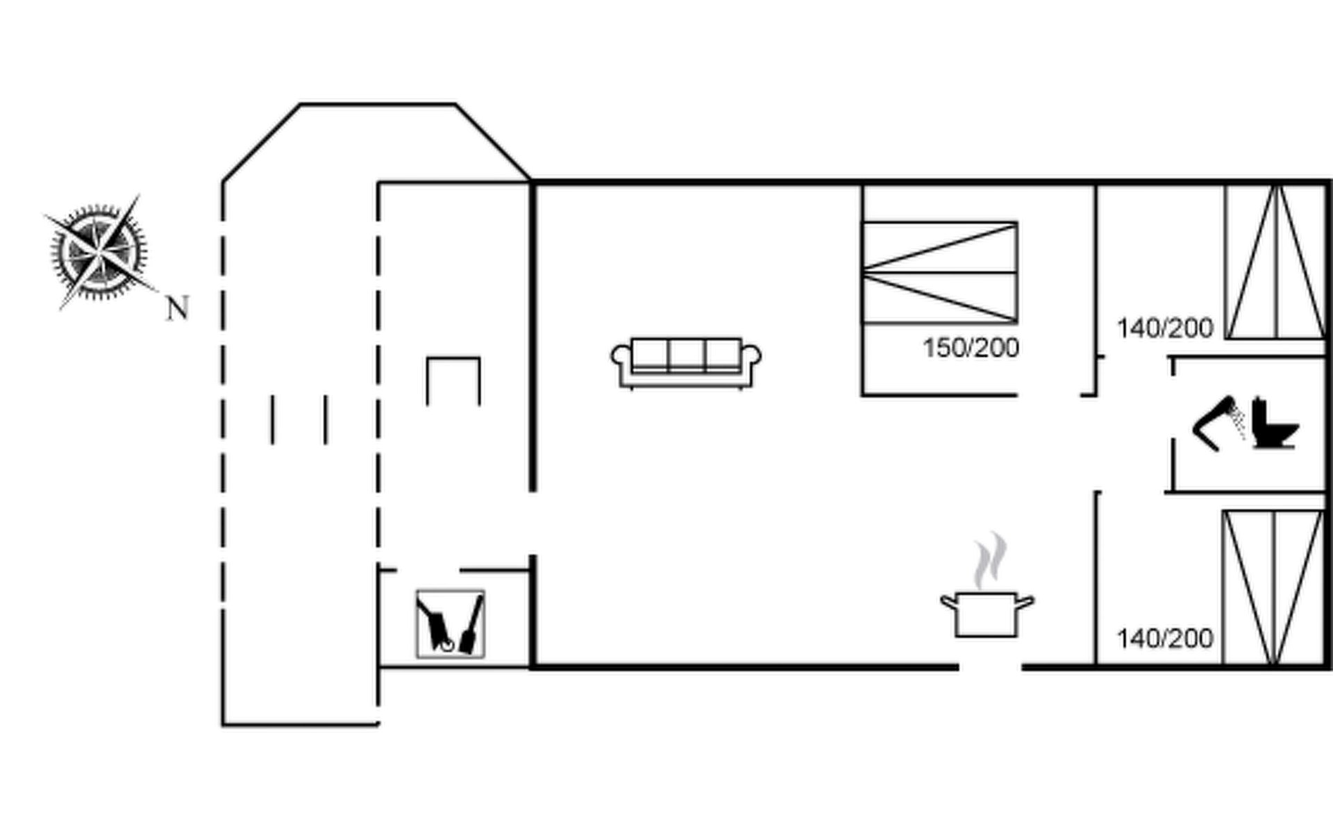 Einfamilienhaus, Baujahr 1986. 900 m vom Meer. Zur Alleinbenutzung: naturbelassenes Grundstück 1'232 m2. Grill. Im Hause: Waschmaschine. Parkplatz beim Haus. Lebensmittelgeschäft 500 m. Der Besitzer akzeptiert keine Jugendgruppen.