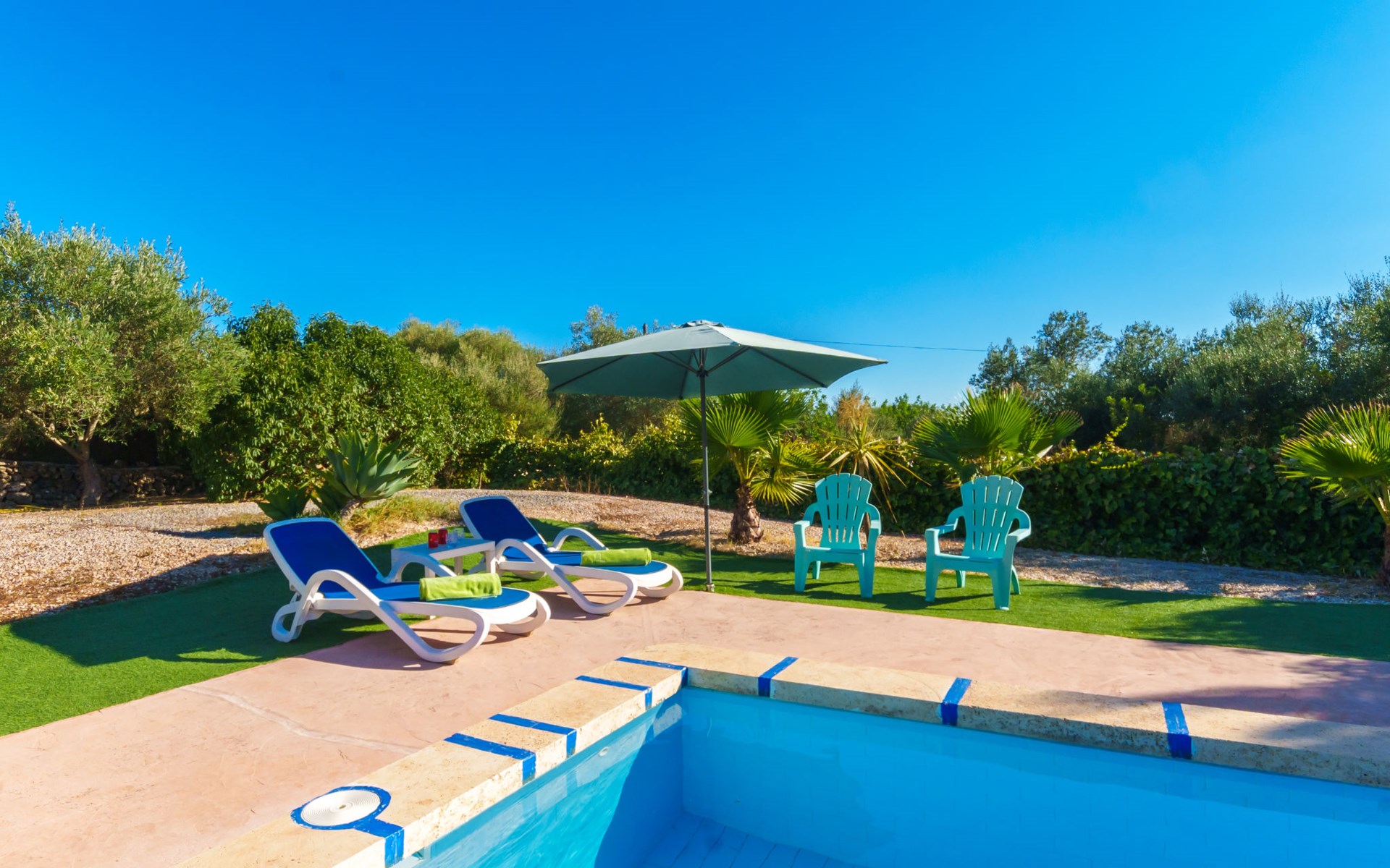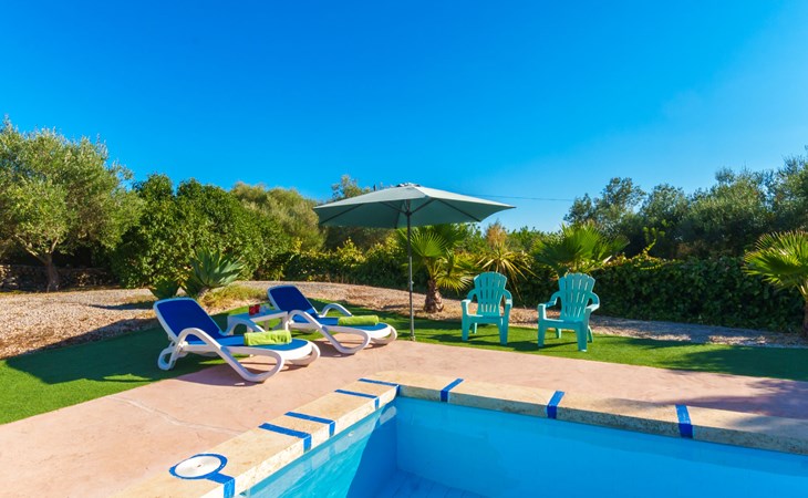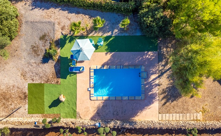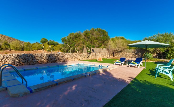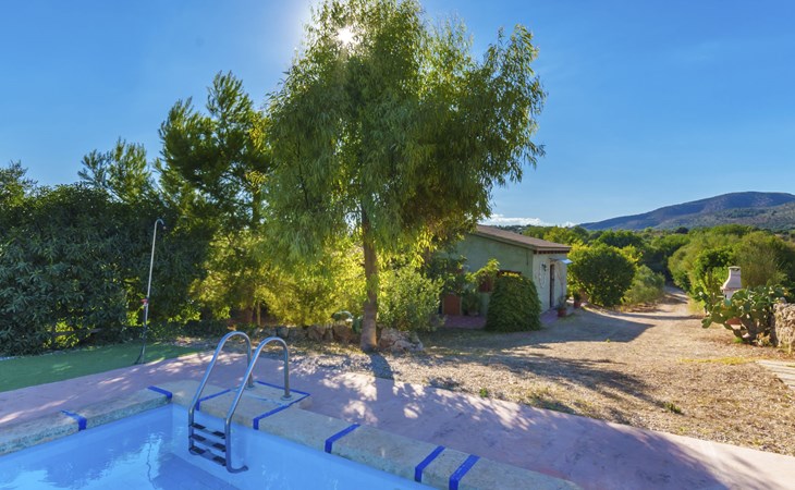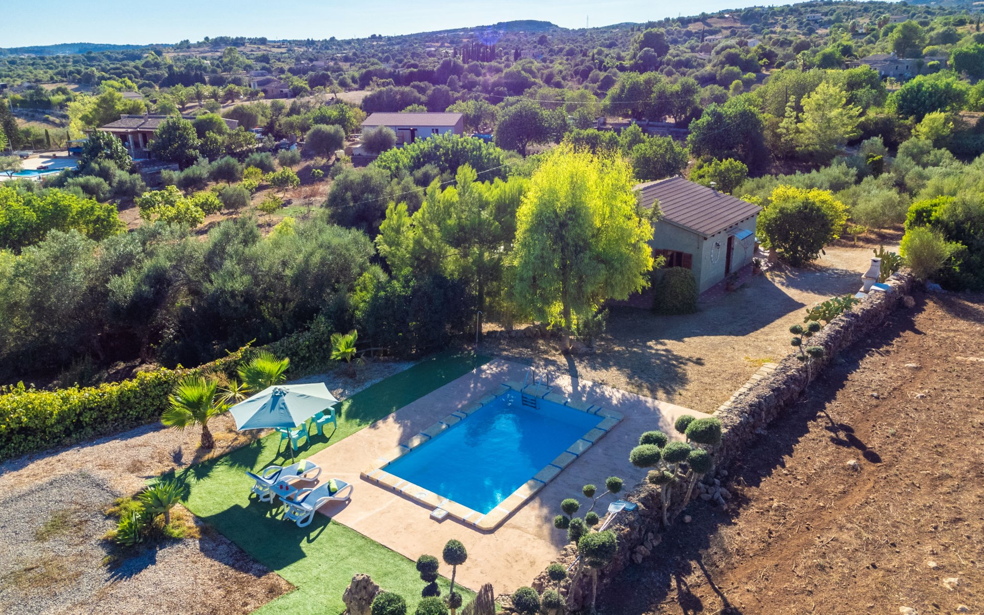 Finca "Estrella", umgeben von Wiesen und Feldern. 2 km vom Zentrum von Sant Llorenc, 11 km vom Zentrum von Manacor, alleinstehende Lage, 12 km vom Meer. Zur Alleinbenutzung: naturbelassenes Grundstück 3'000 m2 (eingezäunt), Obstgarten, Schwimmbad (6 x 3 m, saisonale Verfügbarkeit: 01.Jan. - 31.Dez.). Aussendusche, Parkplatz auf dem Grundstück. Einkaufsgeschäft 2 km, Bushaltestelle "San Lorenzo" 1 km, Bahnstation "Manacor" 10 km, Sandstrand "Porto Cristo" 12 km (klein). Jacht-Hafen 12 km. Nahe gelegene Sehenswürdigkeiten: Playa Cala Millor 15 km. Bitte beachten: Fahrzeug empfohlen.