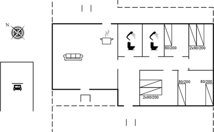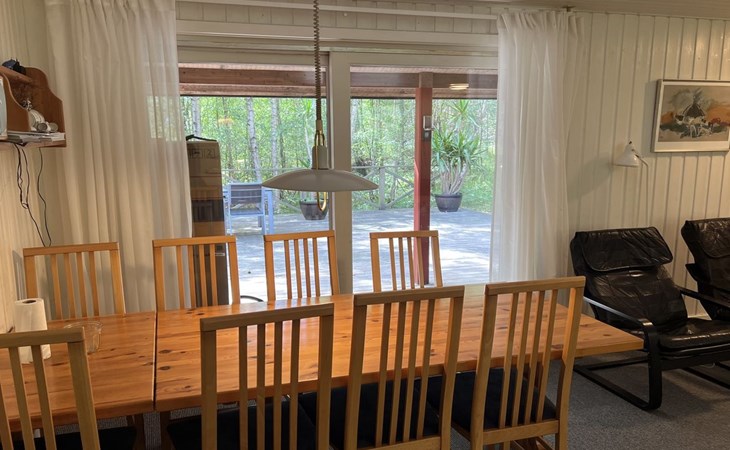 Einfamilienhaus, Baujahr 1967. 1.2 km vom Meer. Zur Alleinbenutzung: naturbelassenes Grundstück 2'700 m2. Grill. Im Hause: Waschmaschine. Parkplatz beim Haus. Carport. Lebensmittelgeschäft 4 km. Golfplatz 5 km. Der Besitzer akzeptiert keine Jugendgruppen.