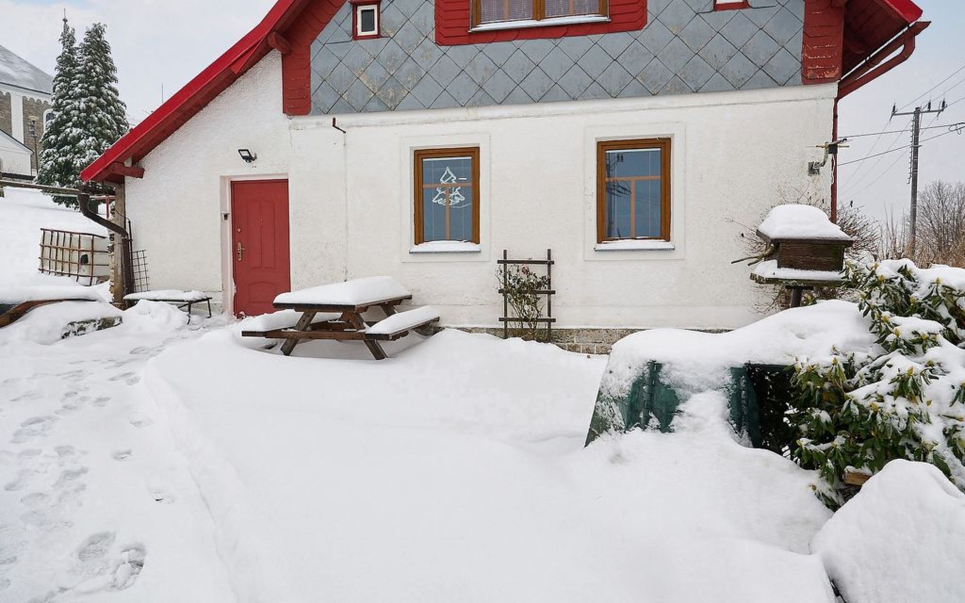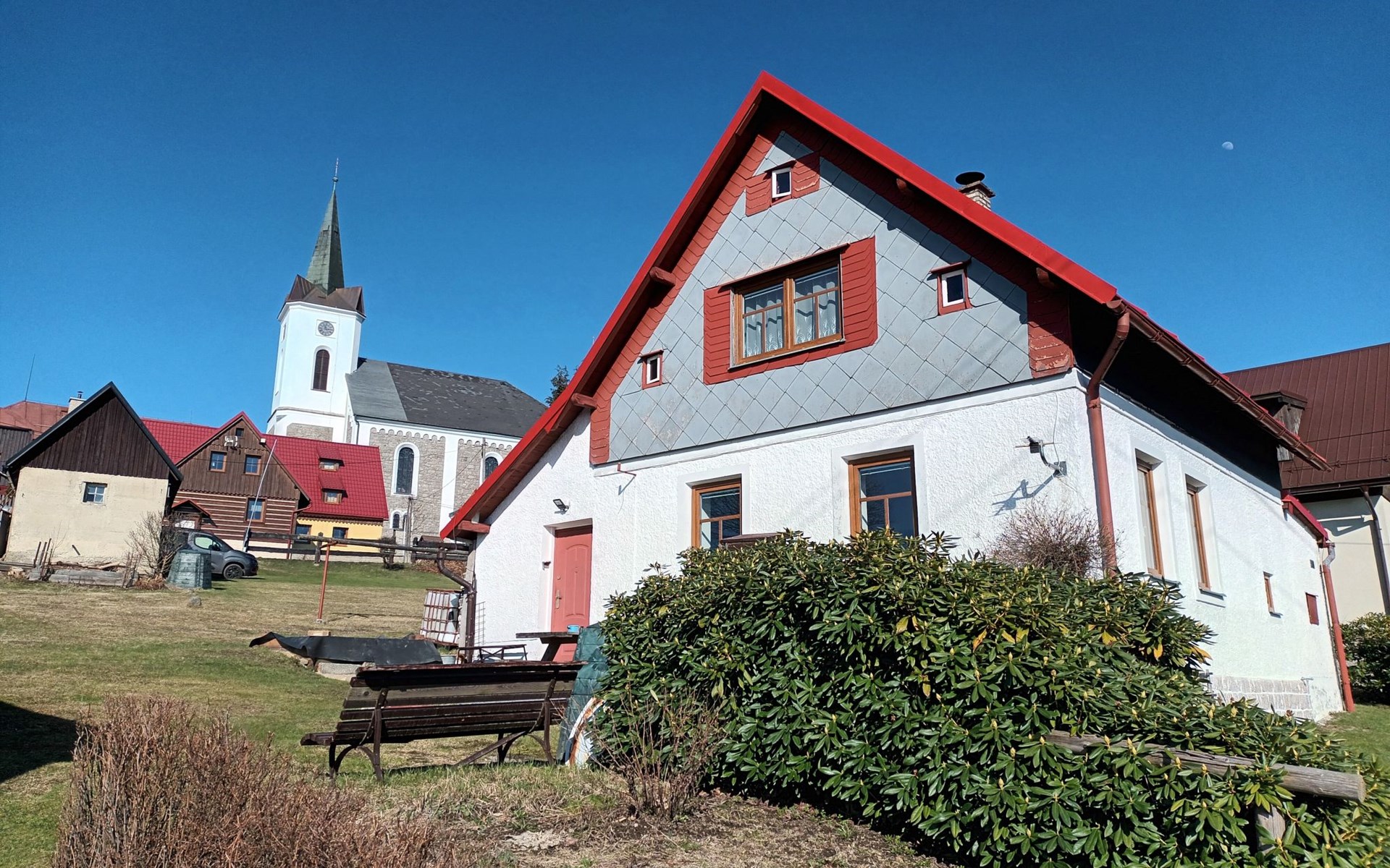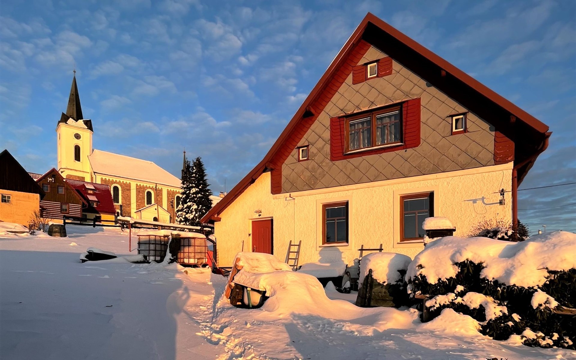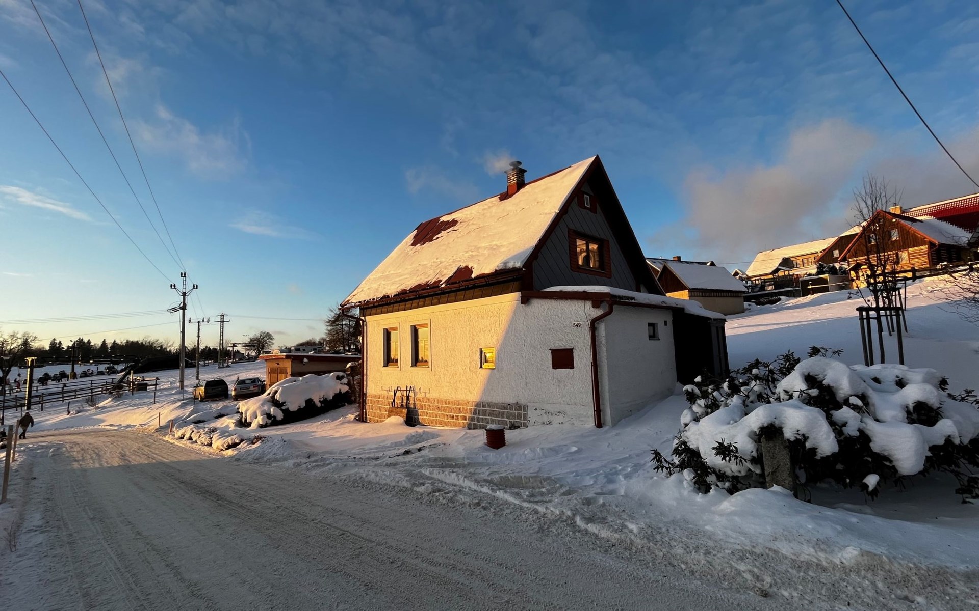 Příchovice 6 km von Tanvald: Kleines, gemütliches Haus "Chaloupka Příchovice". Ruhige, sonnige Lage auf einem Hügel, 400 m vom Skigebiet. Zur Alleinbenutzung: Garten Pflanzen, Liegewiese. Im Hause: Sauna. Parkplatz (für 3 Autos). Einkaufsgeschäft 2 km, Supermarkt 7 km, Restaurant, Bar, Café 100 m, Bushaltestelle "Příchovice" 400 m, Bahnstation "Kořenov" 3 km, Thermalbad "Thermy Cieplickie" 40 km. Minigolf, Skilift, Skiverleih 100 m, Skischule, Kinderskischule, Langlaufloipe. Nahe gelegene Sehenswürdigkeiten: Štěpánka 900 m, Maják J. Cimrmana 200 m, Mumlavský vodopád 10 km, vodopády na Černé Desné 10 km, Mariánská hora 12 km, Jizerka 10 km. Bekannte Skigebiete sind gut erreichbar: Rejdice 3 km, Paseky nad Jizerou 8 km, U Čápa 100 m. Wandergebiete: Protržená přehrada 13 km, Park miniatury Kowary44km,Karpacz (Pl) 50 km, Labská bouda 20km,Vosecká bouda 18 km. Bitte beachten: Ab Hof Verkauf von bäuerlichen Produkten. Bei guter Schneelage Zufahrt mit den Skiern bis zum Haus.