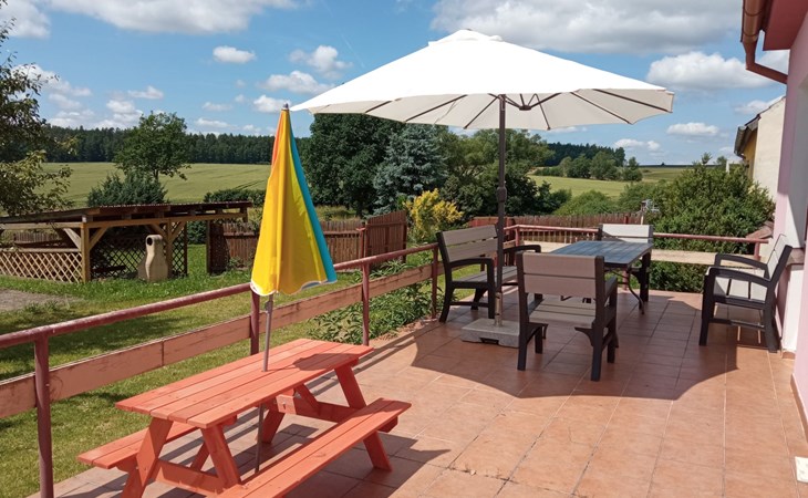 Gemütliches, freistehendes Haus "Smrž", auf 2 Stockwerken. Am Ortsrand Dudov, 1.5 km vom Zentrum von Skrýchov u Malšic, ruhige, sonnige Lage, 400 m vom Waldrand. Zur Alleinbenutzung: Grundstück (eingezäunt), Garten, Schwimmbad (5 x 3 m, 120 cm tief, saisonale Verfügbarkeit: 01.Jun. - 30.Sep.). Gartenmöbel, Grill, Feuerstelle. In der Anlage: Tischtennis, Zentralheizung. Parkplatz auf dem Grundstück. Einkaufsgeschäft 5 km, Einkaufszentrum 12 km, Restaurant 5 km, Bushaltestelle "Skrýchov u Malšic, Dudov" 300 km, Bahnstation "Třebelice" 2 km, Freibad 15 km, Strandbad 1 km. Golfplatz (18 Loch) 3 km, Reitstall 5 km. Nahe gelegene Sehenswürdigkeiten: Černická obora 4 km, Zámek Černice 6 km, Hrad Dobronice 8 km, Bechyně 14 km, Tábor, Borkovická blata, Židova strouha 15 km, Chýnovská jeskyně, Zámek Červená Lhota 30 km, Zámek/ZOO Hluboká nad Vltavou 40 km.