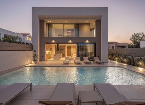 Alle 4 Doppelschlafzimmer haben ein eigenes Bad, so dass die Villa ideal für bis zu 4 Paare oder mehrere Familien ist. Zusätzliche Schlafplätze in Einzelbetten, Schlafsofas und Couch. Privater Pool mit Außendusche. Essbereich im Freien und im Haus und privater Grill. Parken ist innerhalb des eingezäunten Gartens möglich.