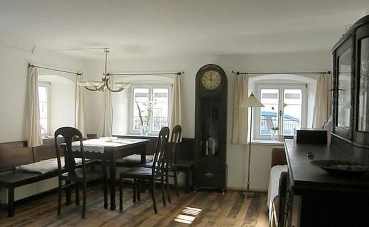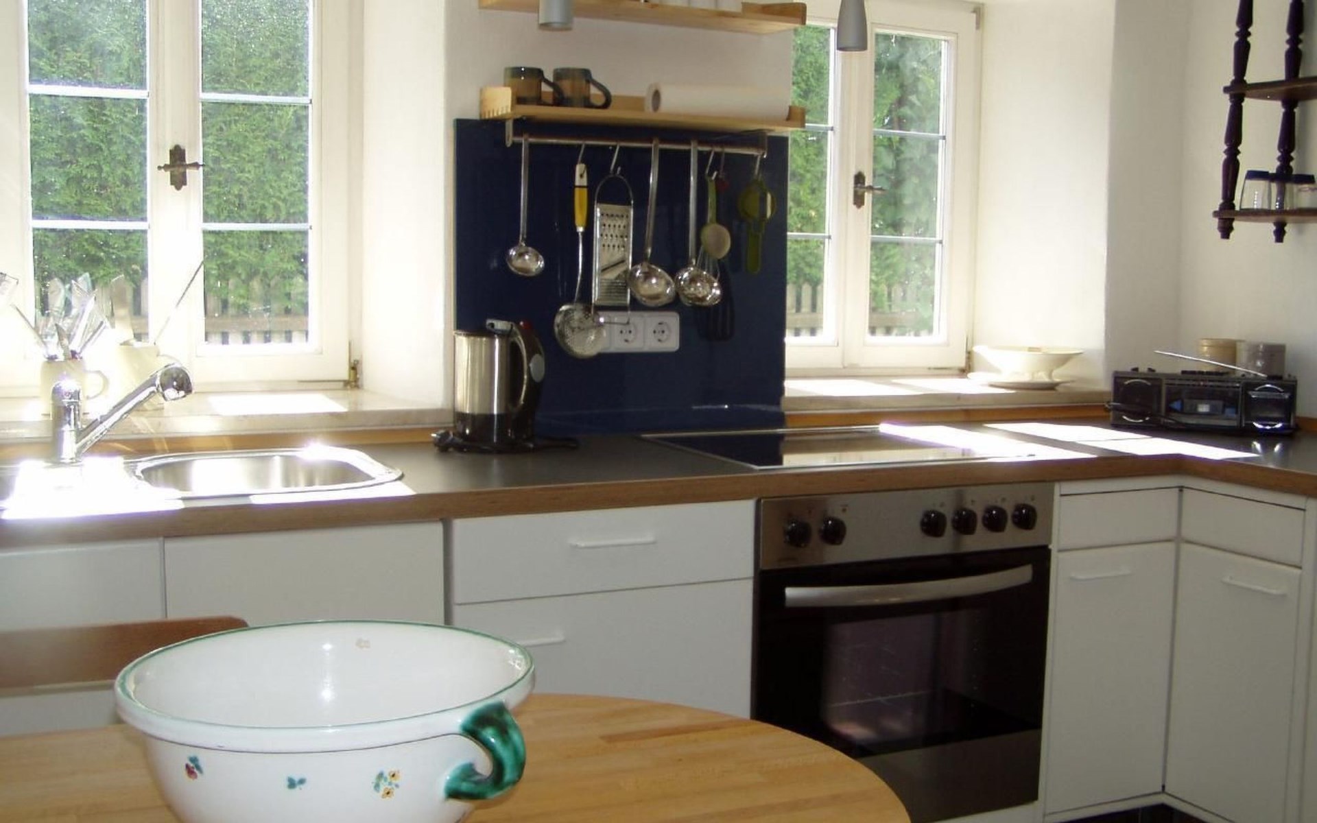Innerhalb des Hauses erwarten Sie eine große, gemütliche Wohnstube, die mit einem alten, aber zurzeit nicht betriebsbereiten Gussplattenofen ausgestattet ist. Eine modern ausgestattete Küche mit Spülmaschine, Backofen, Elektroherd, Gefrierfach, Kaffeemaschine, Kühlschrank, Toaster und Wasserkocher steht Ihnen zur Verfügung. Zwei Schlafzimmer bieten ruhige Rückzugsorte, und für den Komfort unserer Gäste gibt es ein Bad mit WC im ersten Stock sowie ein separates WC im Erdgeschoss, welches sich in der alten Rauchkuchl befindet. Für zusätzliche Schlafgelegenheiten sorgt eine Schlafdiele, die durch einen Vorhang abtrennbar ist und über eine Doppelschlafcouch verfügt.