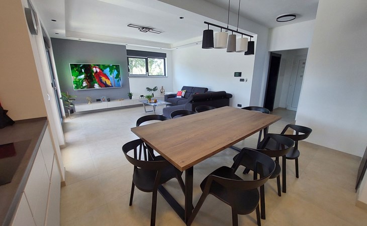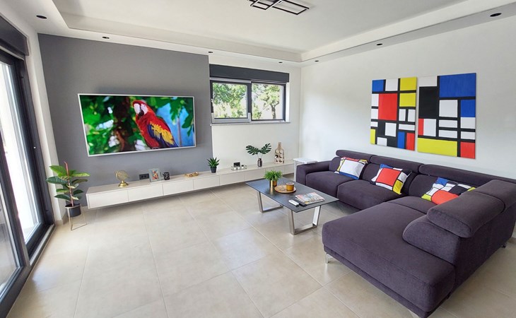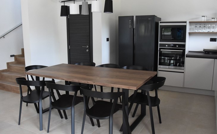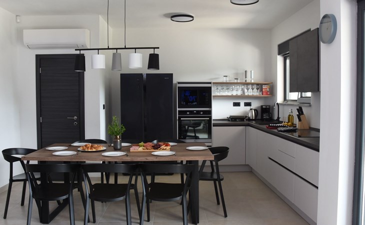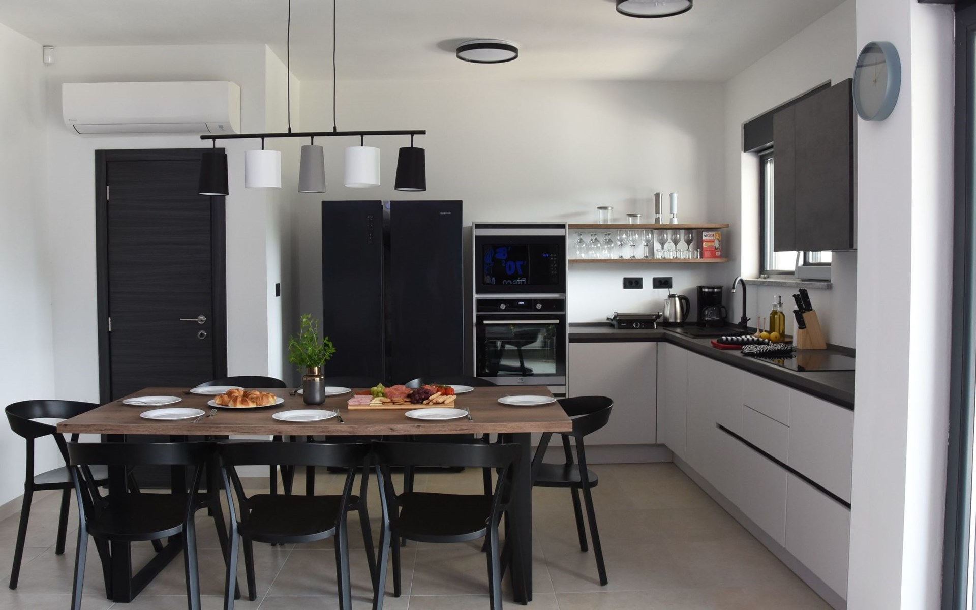 Im Inneren bietet die Villa eine umfassende Ausstattung, die einen komfortablen Aufenthalt garantiert. Dank der Klimaanlage und der Fußbodenheizung, die im gesamten Haus vorhanden sind, ist die Temperatur zu jeder Jahreszeit angenehm. Die Villa verfügt über vier gemütliche Schlafzimmer, die für erholsame Nächte sorgen, sowie über drei Badezimmer, die wahlweise mit Dusche oder Badewanne ausgestattet sind, damit der Morgen für alle reibungslos verläuft. Ein Smart-TV und eine Spielkonsole sorgen für Unterhaltung und Entspannung nach einem Tag voller Entdeckungen. Kulinarisch Interessierte werden die gut ausgestattete Küche mit Induktionskochfeld, Kaffeemaschine, Filterkaffeemaschine, Geschirrspüler und Wasserkocher zu schätzen wissen, die die Zubereitung von Mahlzeiten zu einem Vergnügen und einem Kinderspiel macht.
