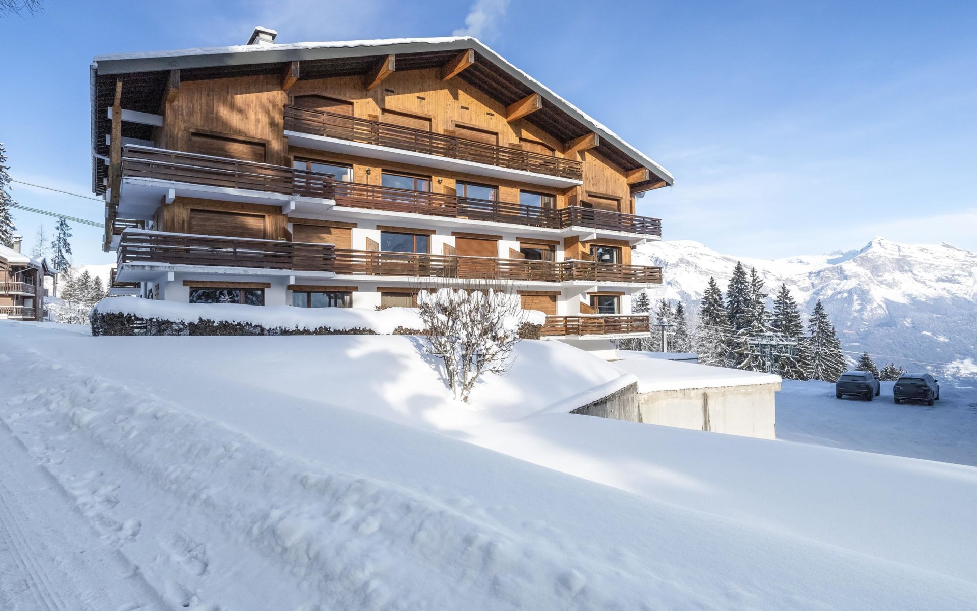 8 km von St Gervais: Die Residenz "La Christaz" besteht aus 5 Chalets mit mehreren Wohnungen Residenz "La Christaz", auf 4 Stockwerken. Im Ortsteil Le Bettex, ausserhalb des Ortes, 8 km vom Zentrum von St Gervais, ruhige, sonnige Lage, 650 m vom Skigebiet. Zur Mitbenutzung: Schwimmbad (12 x 6 m, saisonale Verfügbarkeit: 01.Jul. - 30.Aug.). Im Hause: Skiraum. Im Winter bitte Schneeketten mitbringen. Parkplatz. Lebensmittelgeschäft 150 m, Restaurant 600 m, Bahnstation "Saint-Gervias les Bains le Fayet" 12 km, Freibad 9 km, Thermalbad "Thermes de Saint-Gervais" 12 km. Gondelbahn 700 m, Skisportanlagen, Skibushaltestelle 100 m, Ski-Kindergarten, Schlittelbahn, Langlaufloipe 500 m, Eisfeld 9 km. Bekannte Skigebiete sind gut erreichbar: Domaine Evasion Mont-Blanc 500 m. Bitte beachten: Fahrzeug empfohlen. Gratis Skibus. Im Winter sind Schneeketten erforderlich. Restaurants, Einkaufsgeschäfte: im Winter 1.5 km, im Sommer 12 km.