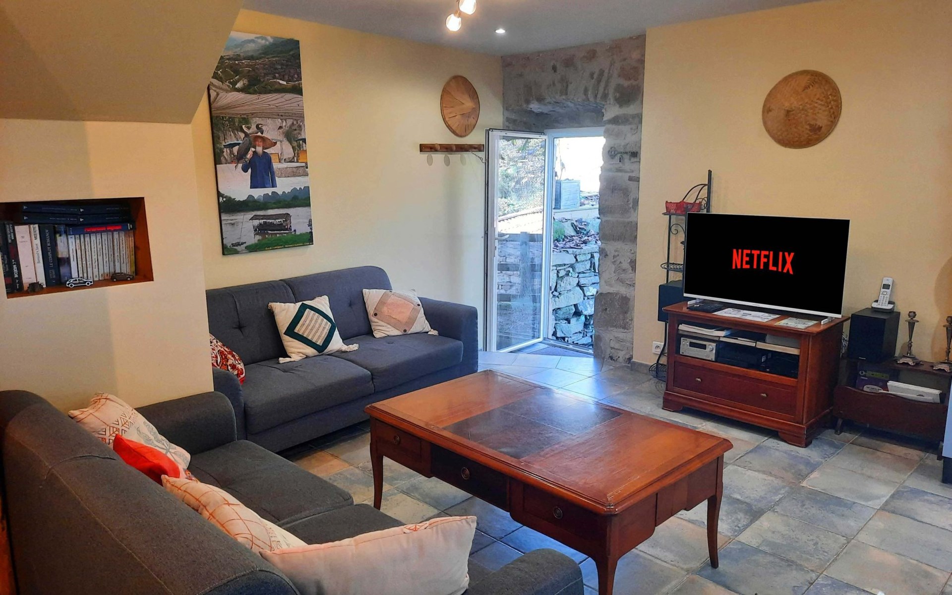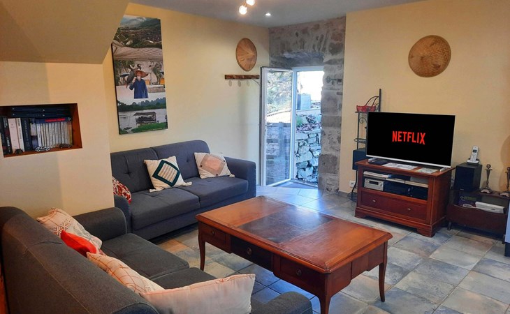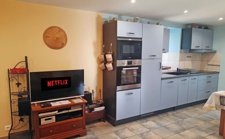 Das Innere unseres Ferienhauses wurde für Ihren maximalen Komfort konzipiert und verfügt über eine Klassifizierung als Meublé Tourisme Confort 4*. Das einladende Wohnzimmer ist mit einem großen Sofa und einem großen Fernseher mit Netflix-Zugang ausgestattet, sodass Sie Ihre Abende entspannt genießen können. Die praktische und voll ausgestattete Küche umfasst Backofen, Mikrowelle, Kühlschrank, Gefrierschrank, Geschirrspüler und alle notwendigen Utensilien, um Ihre Mahlzeiten in aller Gemütlichkeit zuzubereiten und zu genießen.