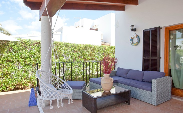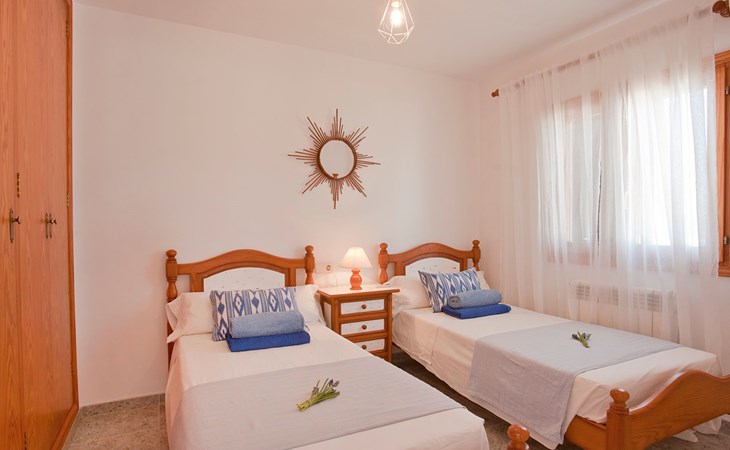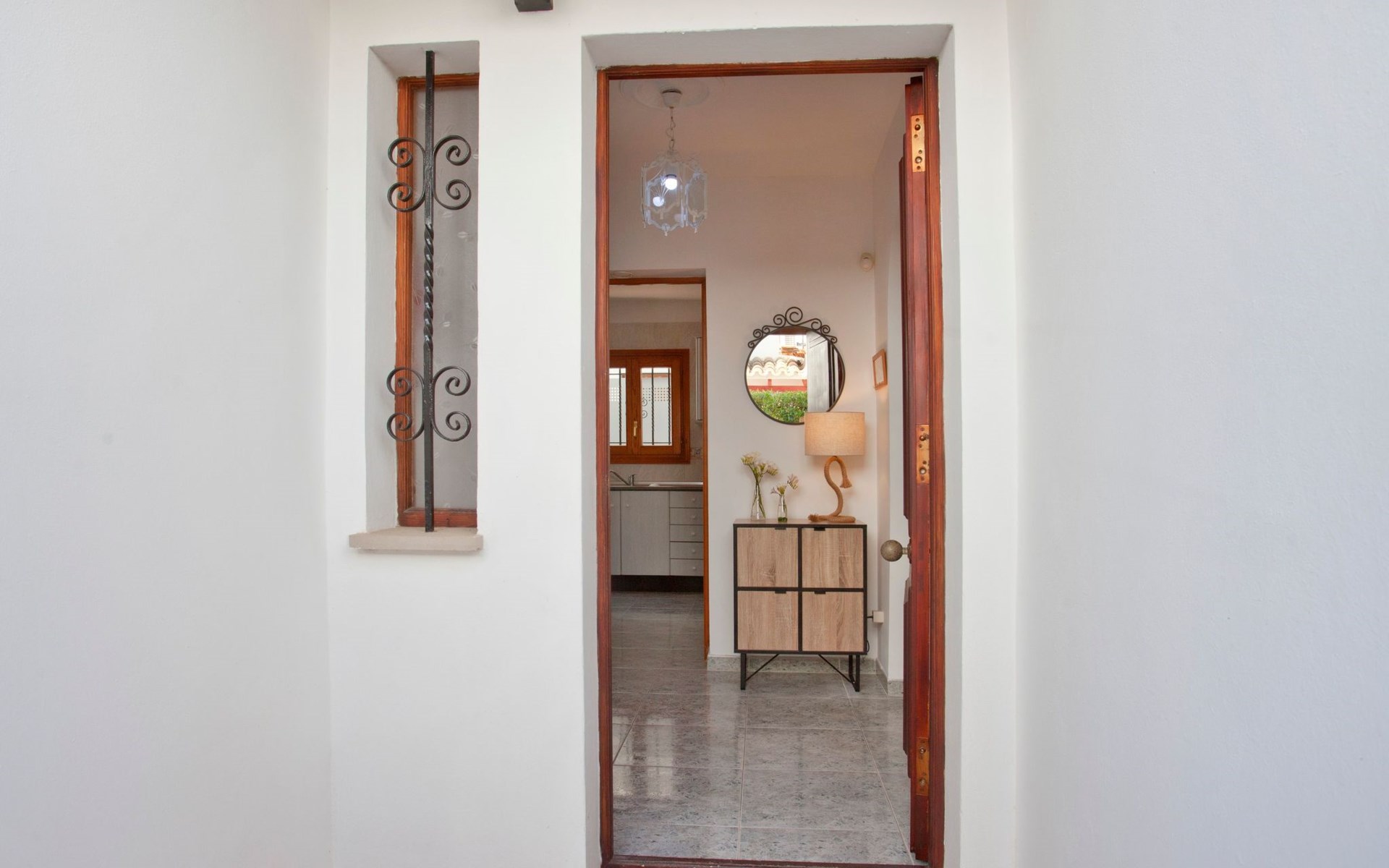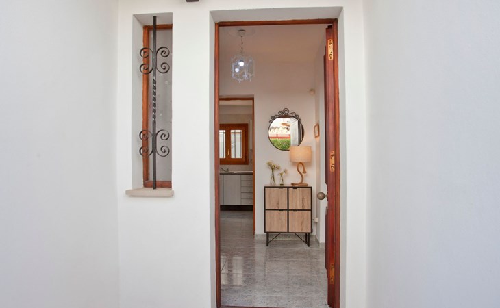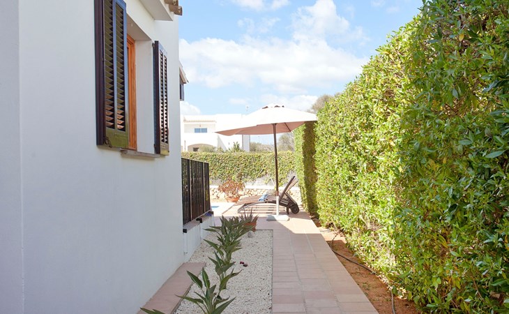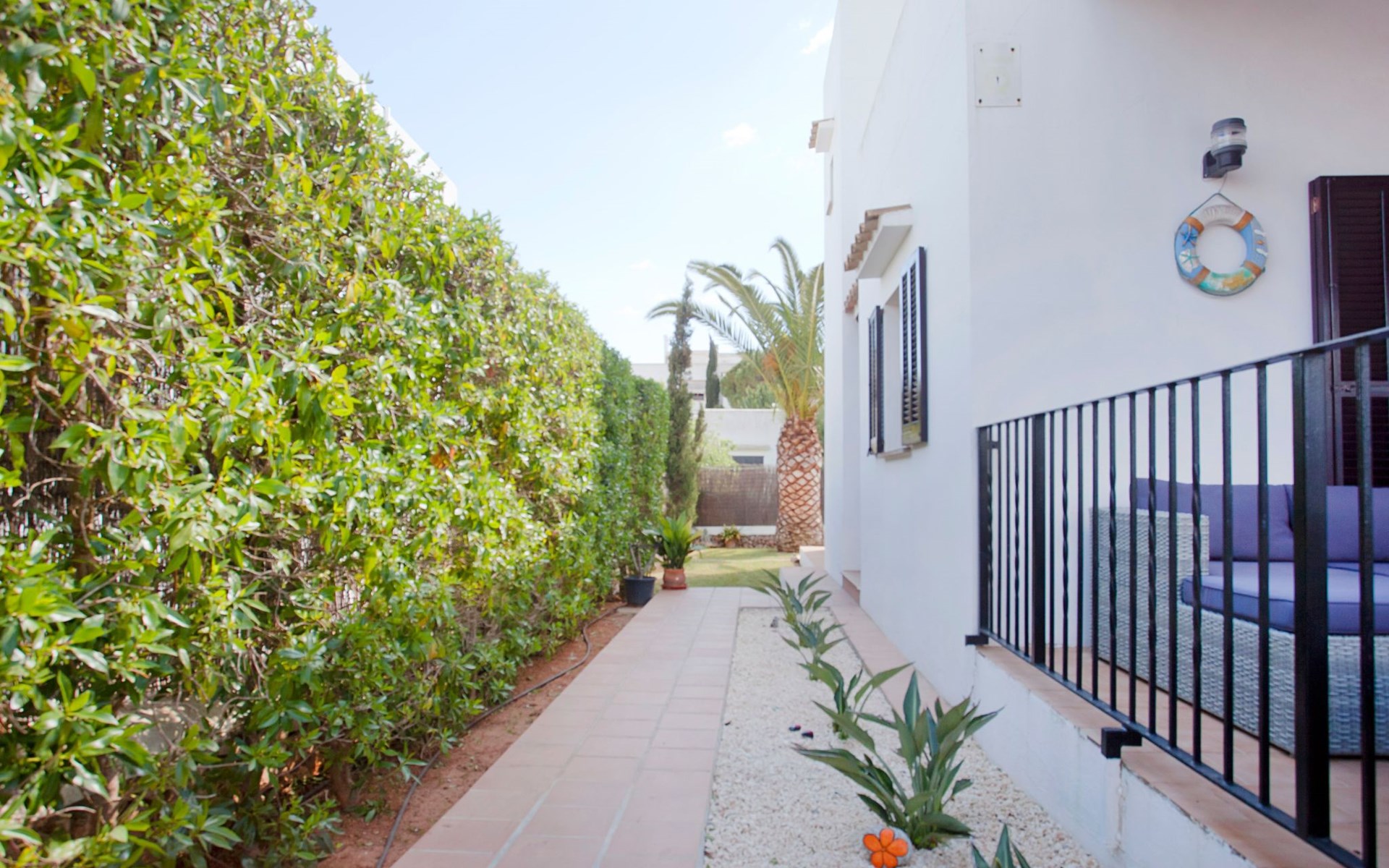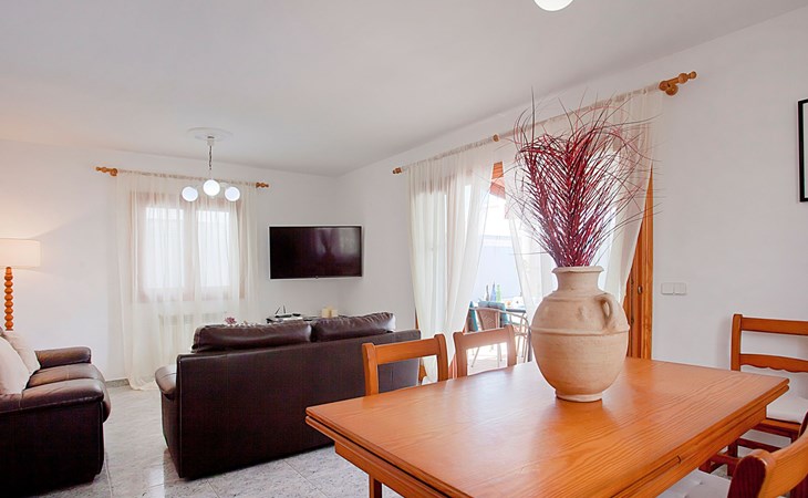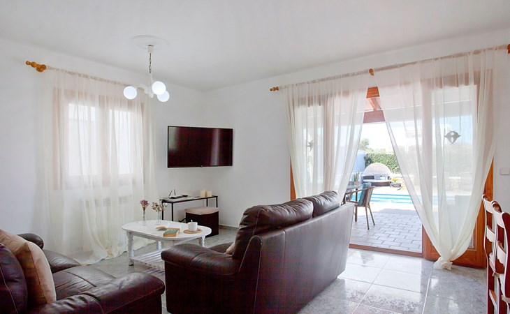 Das Innere der Villa zeigt ein Design, das auf das Wohlbefinden der Gäste ausgerichtet ist. Der Eingang führt in einen einladenden Flur, der zu einem offenen Wohn-/Esszimmer führt. Die Türen des Wohnzimmers führen auf eine teilweise überdachte Terrasse, die mit ihrem Grill ideal ist, um die Natur zu genießen. Die voll ausgestattete Küche mit Frühstückstisch bietet einen direkten Zugang zum Parkplatz. Der Komfort erstreckt sich auch auf die Schlafzimmer, wobei das Hauptschlafzimmer über ein eigenes Bad verfügt, während sich die beiden Zweibettzimmer ein Bad teilen. Alle sind mit Klimaanlage und Heizung ausgestattet.