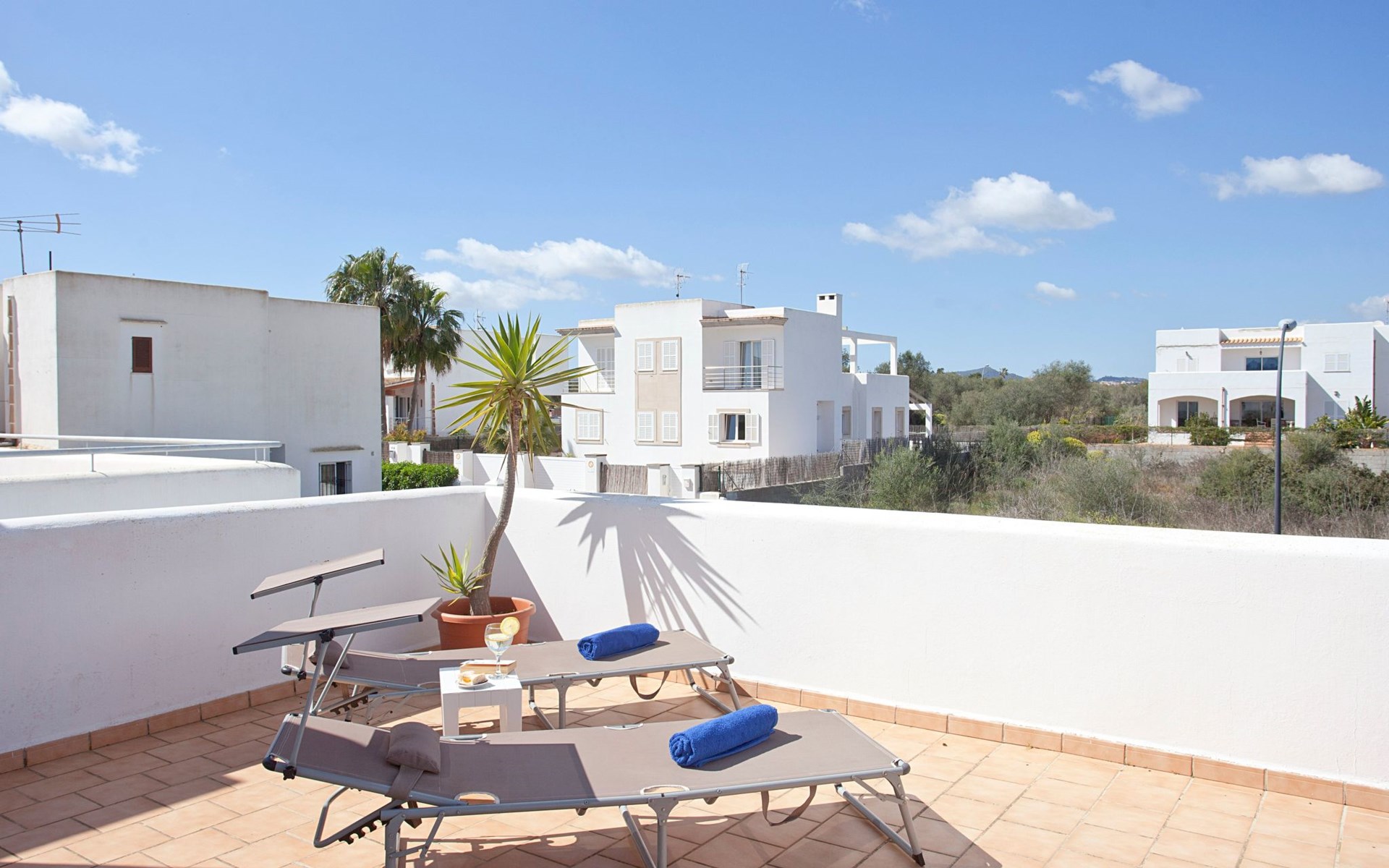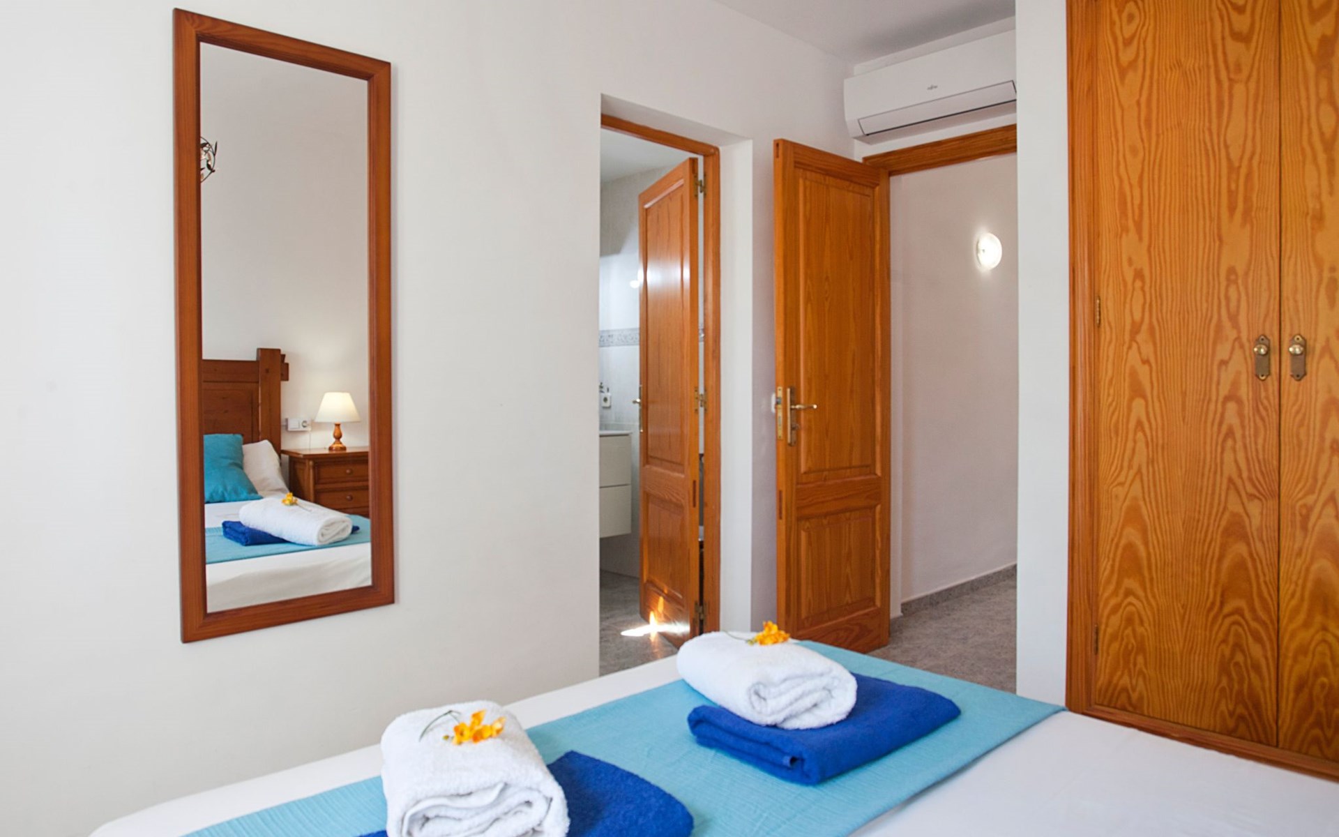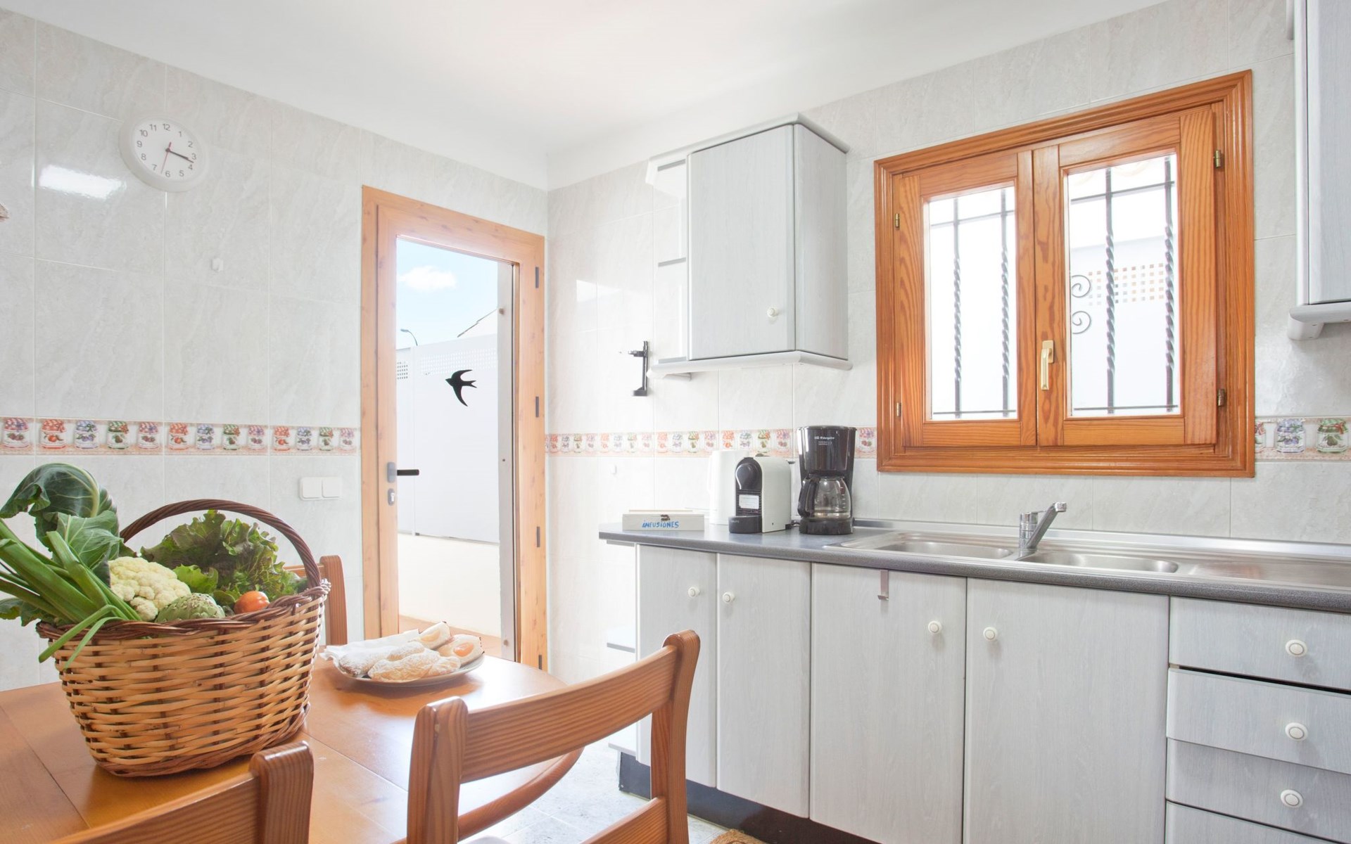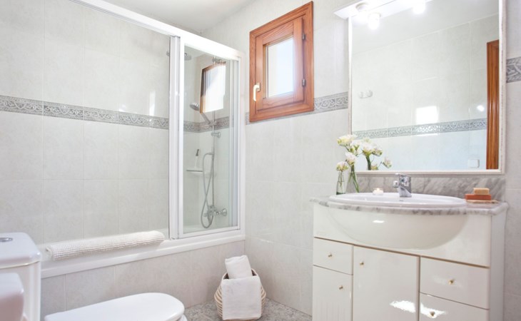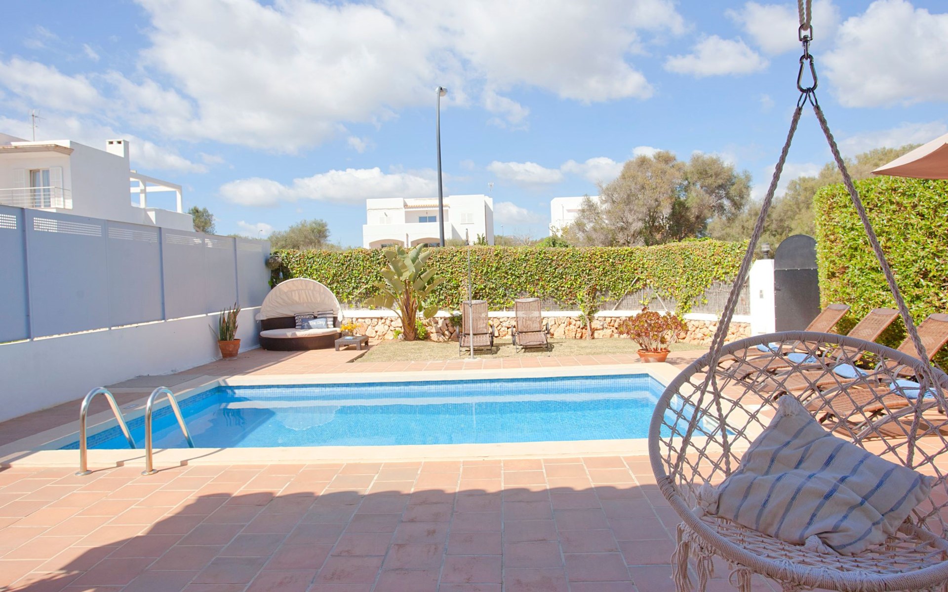 Das Innere der Villa zeigt ein Design, das auf das Wohlbefinden der Gäste ausgerichtet ist. Der Eingang führt in einen einladenden Flur, der zu einem offenen Wohn-/Esszimmer führt. Die Türen des Wohnzimmers führen auf eine teilweise überdachte Terrasse, die mit ihrem Grill ideal ist, um die Natur zu genießen. Die voll ausgestattete Küche mit Frühstückstisch bietet einen direkten Zugang zum Parkplatz. Der Komfort erstreckt sich auch auf die Schlafzimmer, wobei das Hauptschlafzimmer über ein eigenes Bad verfügt, während sich die beiden Zweibettzimmer ein Bad teilen. Alle sind mit Klimaanlage und Heizung ausgestattet.