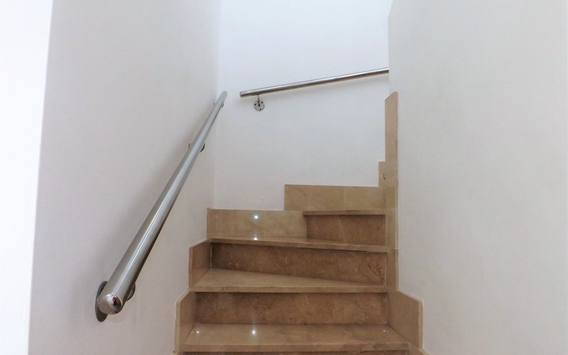 Der Außenbereich der Villa ist nicht weniger beeindruckend: eine teilweise überdachte Terrasse mit gemauertem Grill, die sich perfekt für Zusammenkünfte im Freien eignet. Eine Treppe führt hinunter zu einem attraktiven privaten Swimmingpool, der von einer großzügigen Liegewiese umgeben ist. Der Garten mit Rasenflächen und mediterranen Sträuchern ist sorgfältig von einer Steinmauer umgeben, die eine intime und entspannende Atmosphäre schafft. Die Terrasse ist mit Sonnenliegen, Stühlen, einem Tisch und einem Sofa mit zwei Sesseln ausgestattet und lädt zum Entspannen und Erholen ein.
