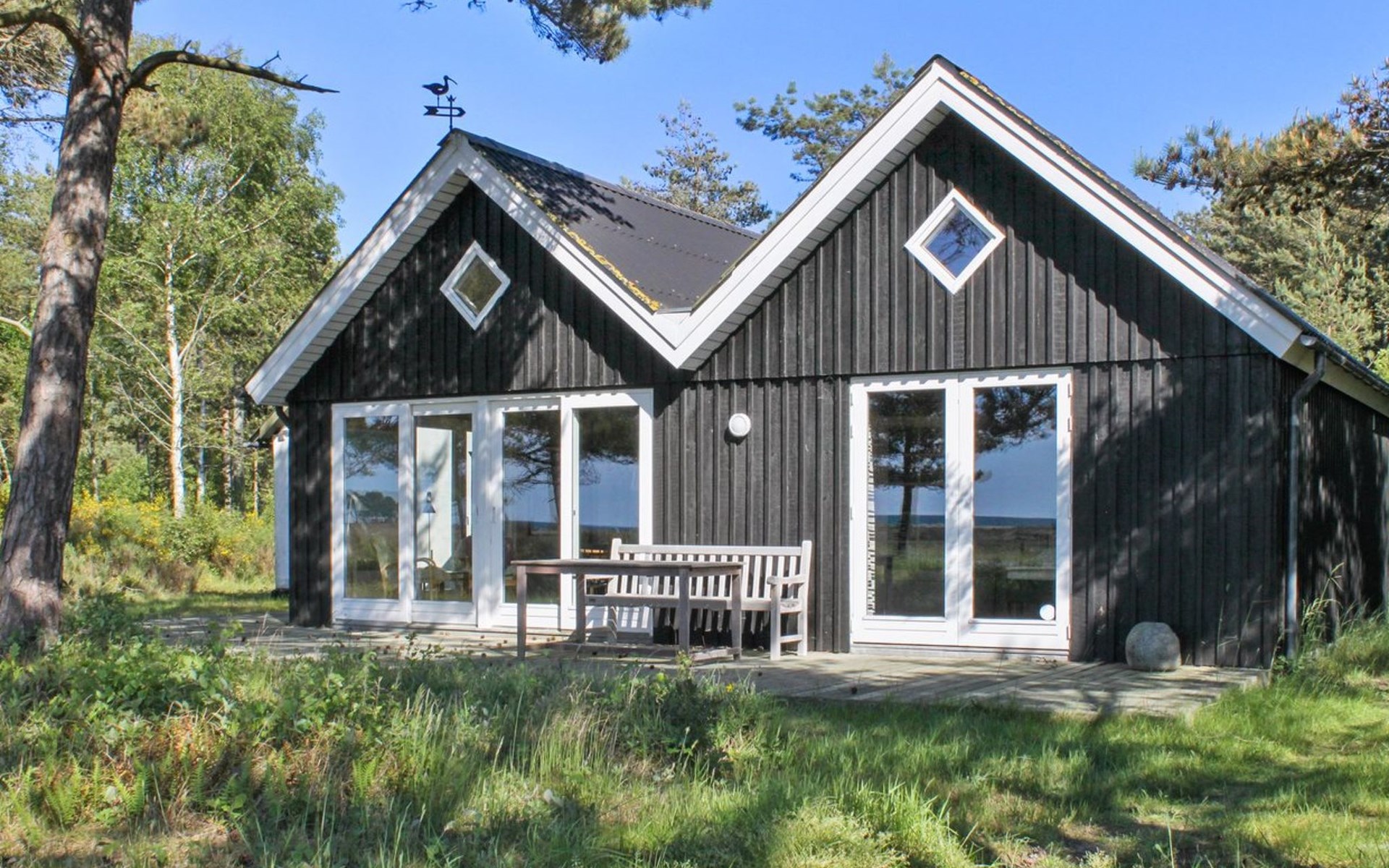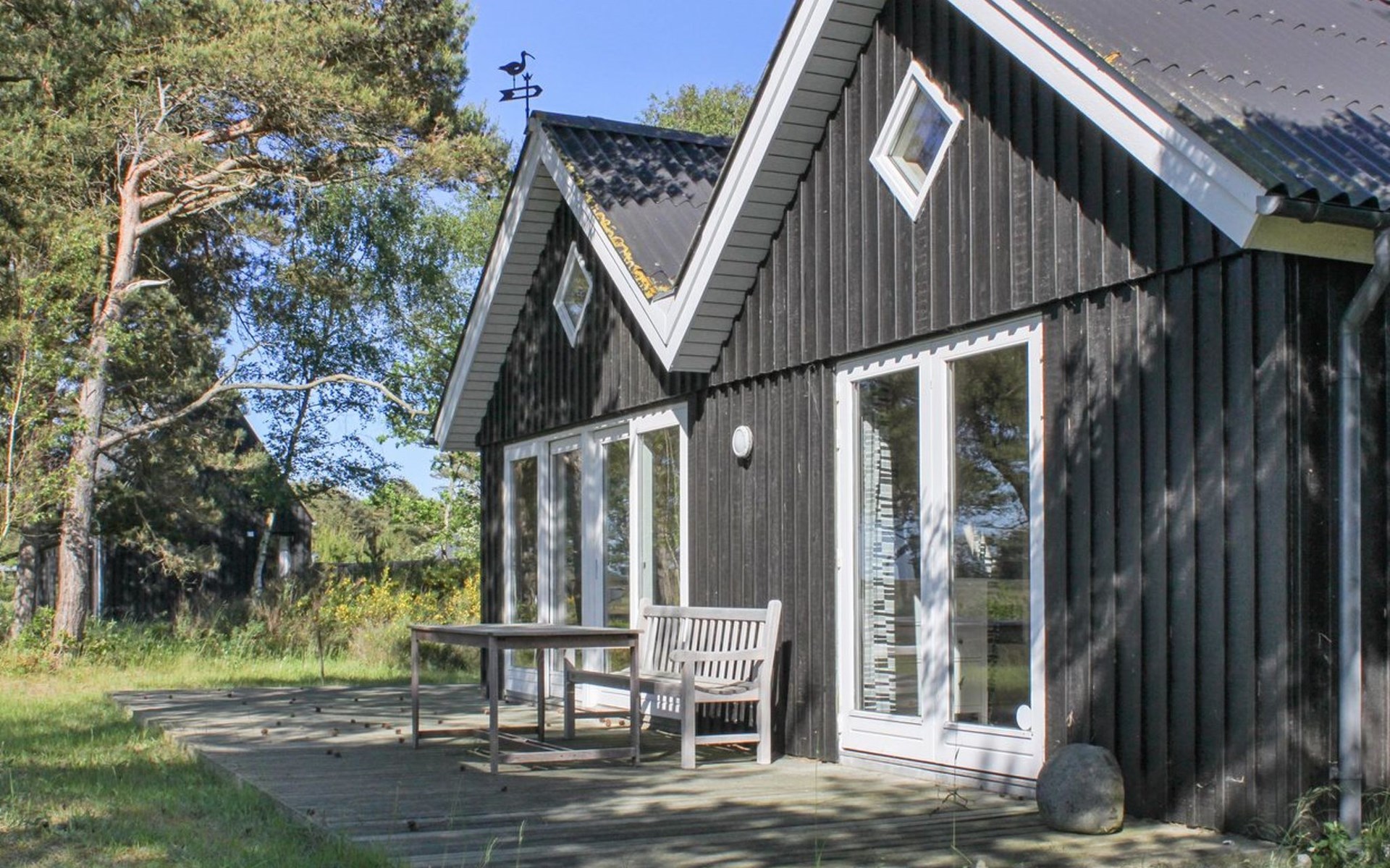 Einfamilienhaus, Baujahr 1936. 200 m vom Meer. Zur Alleinbenutzung: naturbelassenes Grundstück 800 m2. Im Hause: Waschmaschine. Parkplatz beim Haus. Lebensmittelgeschäft 3 km. Der Besitzer akzeptiert keine Jugendgruppen.