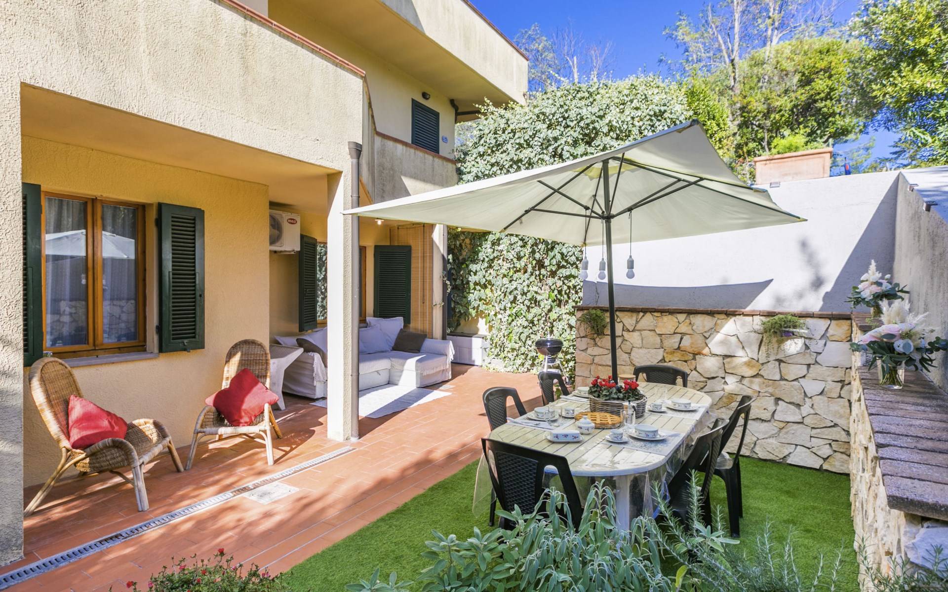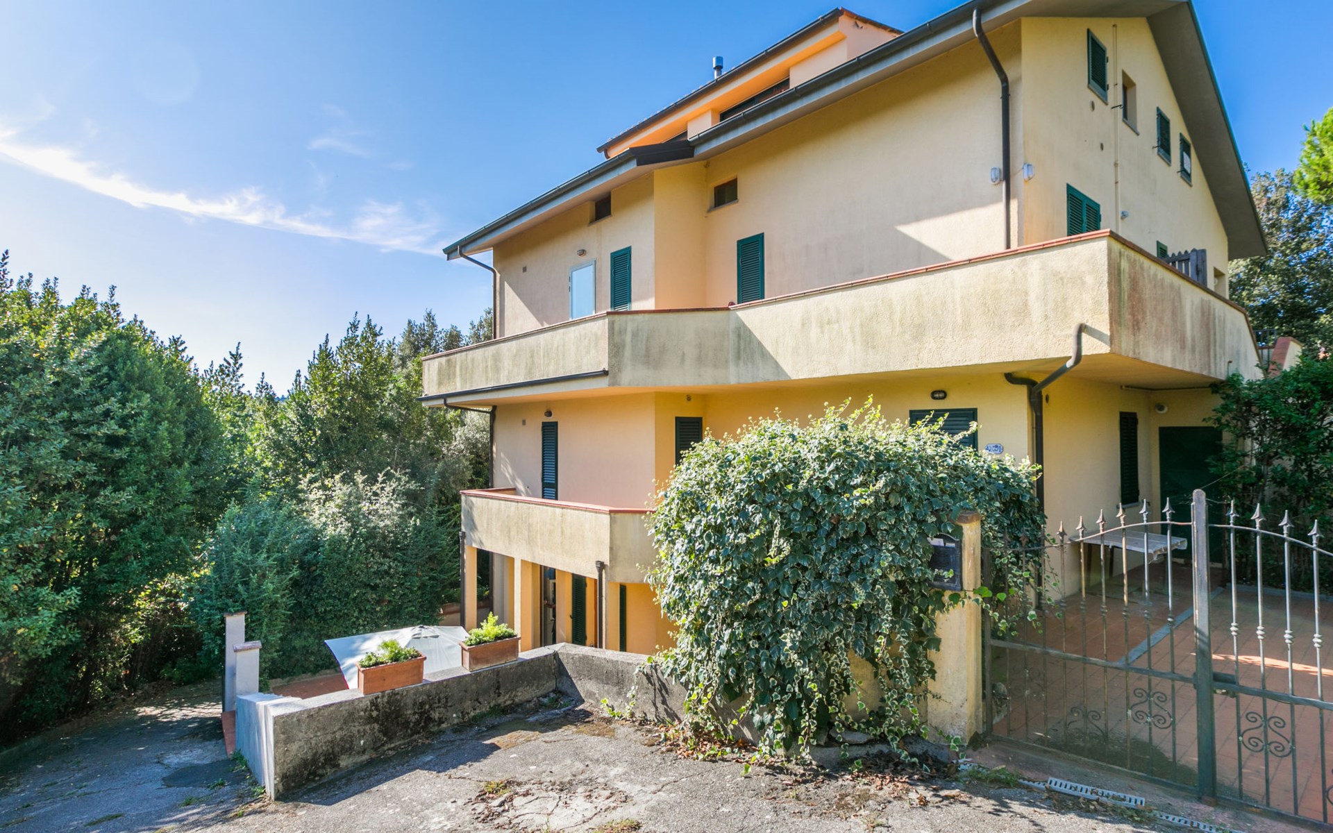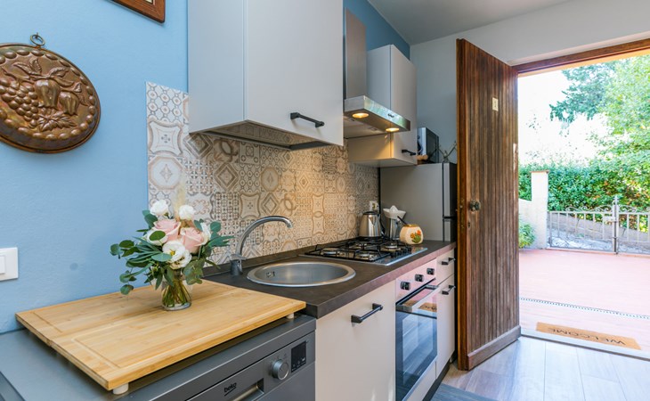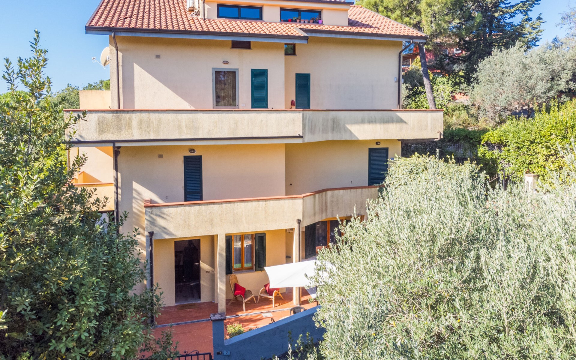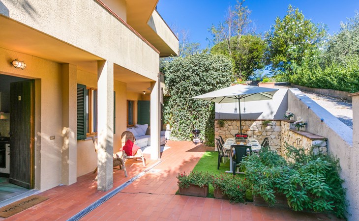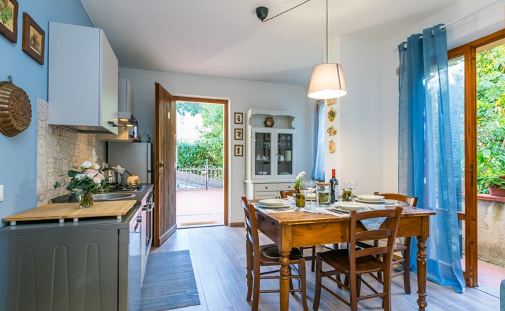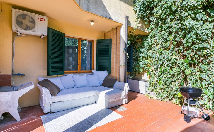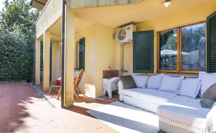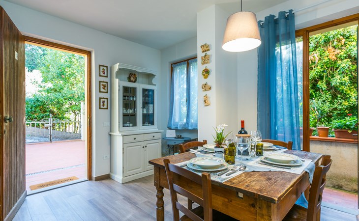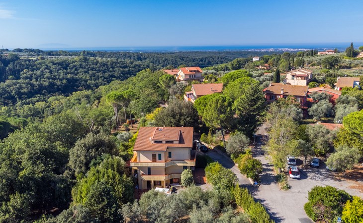 Residenz "Rio del sole", umgeben von Bäumen. 1.3 km vom Zentrum von Montescudaio, 12 km vom Meer. Zur Mitbenutzung: Park, Schwimmbad geschützt (saisonale Verfügbarkeit: 10.Jun. - 10.Sep.) mit Salzelektrolyse-Reinigungssystem. Öffentliche Parkplätze 50 m. Lebensmittelgeschäft 1.2 km, Supermarkt 9 km, Restaurant 350 m, Bushaltestelle "Podere Cerioni" 90 m, Sandstrand "Marina di Cecina" 12 km, Felsstrand "Castiglioncello" 24 km, Thermalbad "Calidario" 43 km. Nahe gelegene Sehenswürdigkeiten: Bolgheri 17 km, San Gimignano 60 km, Pisa 60 km, Lucca 80 km, Firenze 120 km. Bitte beachten: geeignet für Familien. Badekappenpflicht.