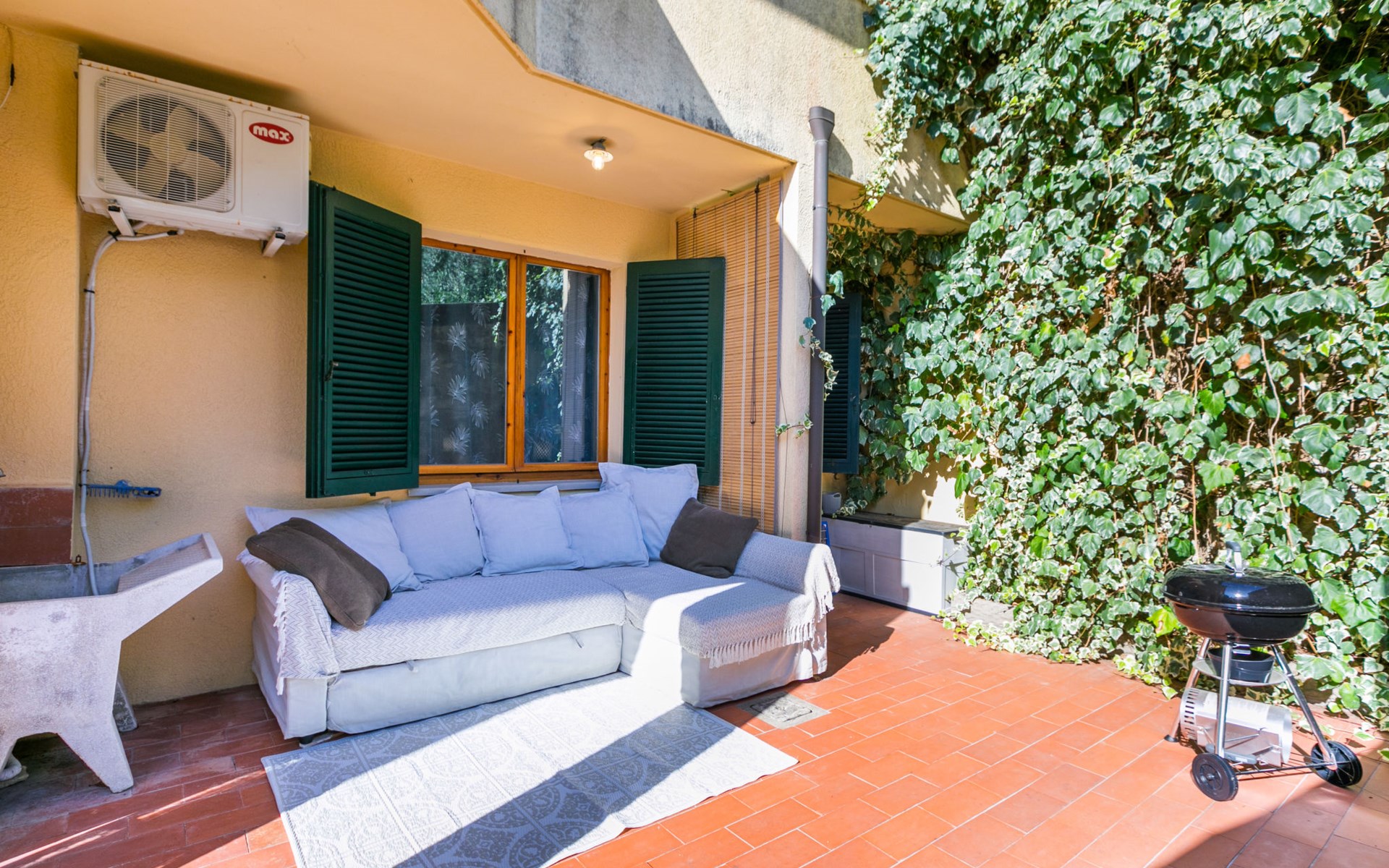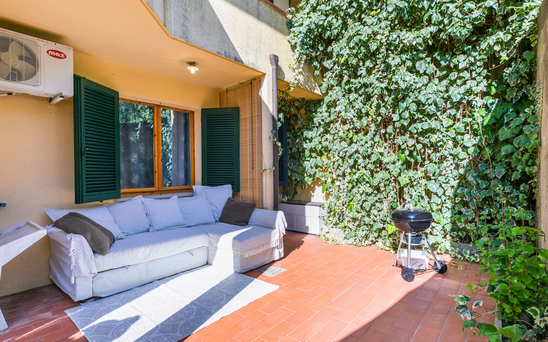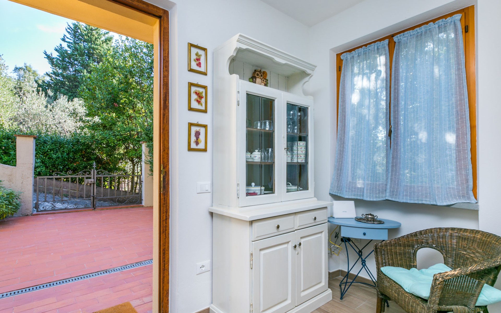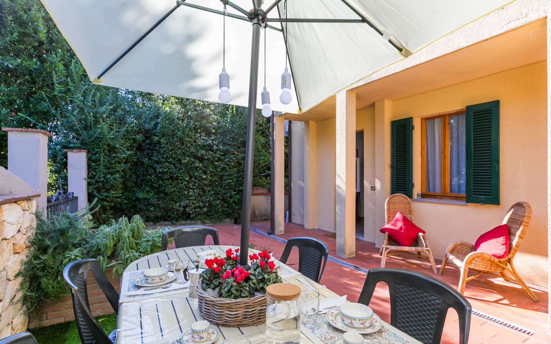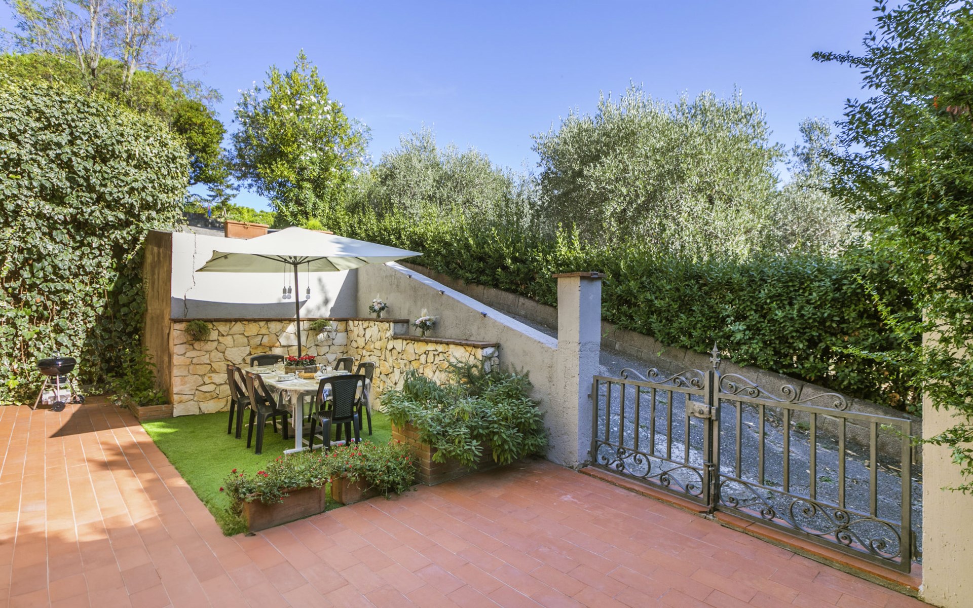 Residenz "Rio del sole", umgeben von Bäumen. 1.3 km vom Zentrum von Montescudaio, 12 km vom Meer. Zur Mitbenutzung: Park, Schwimmbad geschützt (saisonale Verfügbarkeit: 10.Jun. - 10.Sep.) mit Salzelektrolyse-Reinigungssystem. Öffentliche Parkplätze 50 m. Lebensmittelgeschäft 1.2 km, Supermarkt 9 km, Restaurant 350 m, Bushaltestelle "Podere Cerioni" 90 m, Sandstrand "Marina di Cecina" 12 km, Felsstrand "Castiglioncello" 24 km, Thermalbad "Calidario" 43 km. Nahe gelegene Sehenswürdigkeiten: Bolgheri 17 km, San Gimignano 60 km, Pisa 60 km, Lucca 80 km, Firenze 120 km. Bitte beachten: geeignet für Familien. Badekappenpflicht.