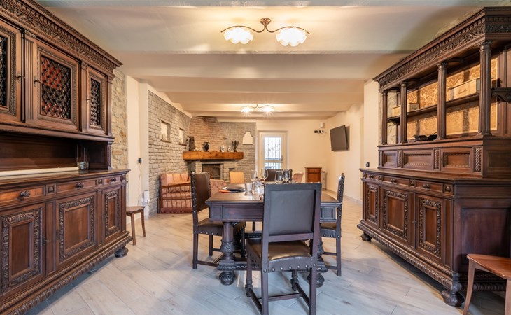 17-Zimmer-Landhaus auf 3 Stockwerken. Geschmackvoll eingerichtet: Wohn-/Esszimmer mit offenem Kamin, Esstisch und TV. Ausgang zur Terrasse. Salon mit offenem Kamin, sep. WC und TV. Ausgang zum Garten. Wohn-/Schlafzimmer mit 1 Doppeldiwanbett, Esstisch, Küchenblock und TV. Ausgang zum Garten. 1 Doppelzimmer mit Dusche/Bidet/WC. Küche (Backofen, Geschirrspüler, 5 Flammen, Pizzaofen). Dusche/Bidet/WC. Obergeschoss: Wohn-/Schlafzimmer mit 1 Doppeldiwanbett, Esstisch, Küchenblock und TV. Ausgang zum Balkon. Wohn-/Schlafzimmer mit 1 Doppeldiwanbett, Esstisch, Küchenblock und TV. Ausgang zum Balkon. Wohn-/Schlafzimmer mit 1 Doppeldiwanbett, Esstisch, Küchenblock und TV. Wohn-/Schlafzimmer mit 1 Doppeldiwanbett, Esstisch, Küchenblock und TV. 4 Doppelzimmer. Abgeschrägte, offene Galerie mit 1 Doppelbett. Abgeschrägte, offene Galerie mit 1 Doppelbett. 4 Duschen/Bidet/WC. Dachgeschoss: (Wendeltreppe) Wohn-/Esszimmer mit 2 Doppeldiwanbetten, offenem Kamin, Esstisch und TV. Ausgang zur Terrasse. 2 abgeschrägte Doppelzimmer, Deckenhöhe 160 - 270 cm. Kochnische (4 Kochplatten, Backofen, Geschirrspüler, Mikrowelle, elektrische Kaffeemaschine). Dusche/Bidet/WC. G-Heizung. Heizung nur verfügbar von 15.10. bis 15.04. Balkon, 2 Terrassen, teilweise überdacht. Zur Verfügung: Waschmaschine, Babybett bis 2 Jahre, Haartrockner. Internet (WLAN, gratis). Bitte beachten: Maximal 1 Haustier/Hund erlaubt. Rauchmelder, Feuerlöscher. IT005060B54CFBNQE4