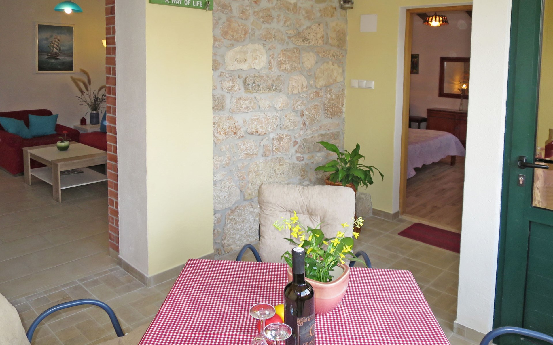 Einfamilienhaus "Kapitan". Im Weiler Slivnica Gornja, 4.7 km vom Zentrum von Vinjerac, 35 km vom Zentrum von Zadar, am Hang, 3 km vom Meer, 3 km vom Strand. Zur Alleinbenutzung: Grundstück 300 m2 (eingezäunt). Grill. Im Hause: Internetzugang, Waschmaschine. Treppenweg (11 Stufen) bis zum Haus. Parkplatz (für 2 Autos) auf dem Grundstück. Einkaufsgeschäft 700 m, Bushaltestelle 5.6 km, Felsstrand 3 km. Bitte beachten: Ein Teil des Hauses ist geschlossen und nicht bewohnt. Flugplatz 28 km vom Haus.