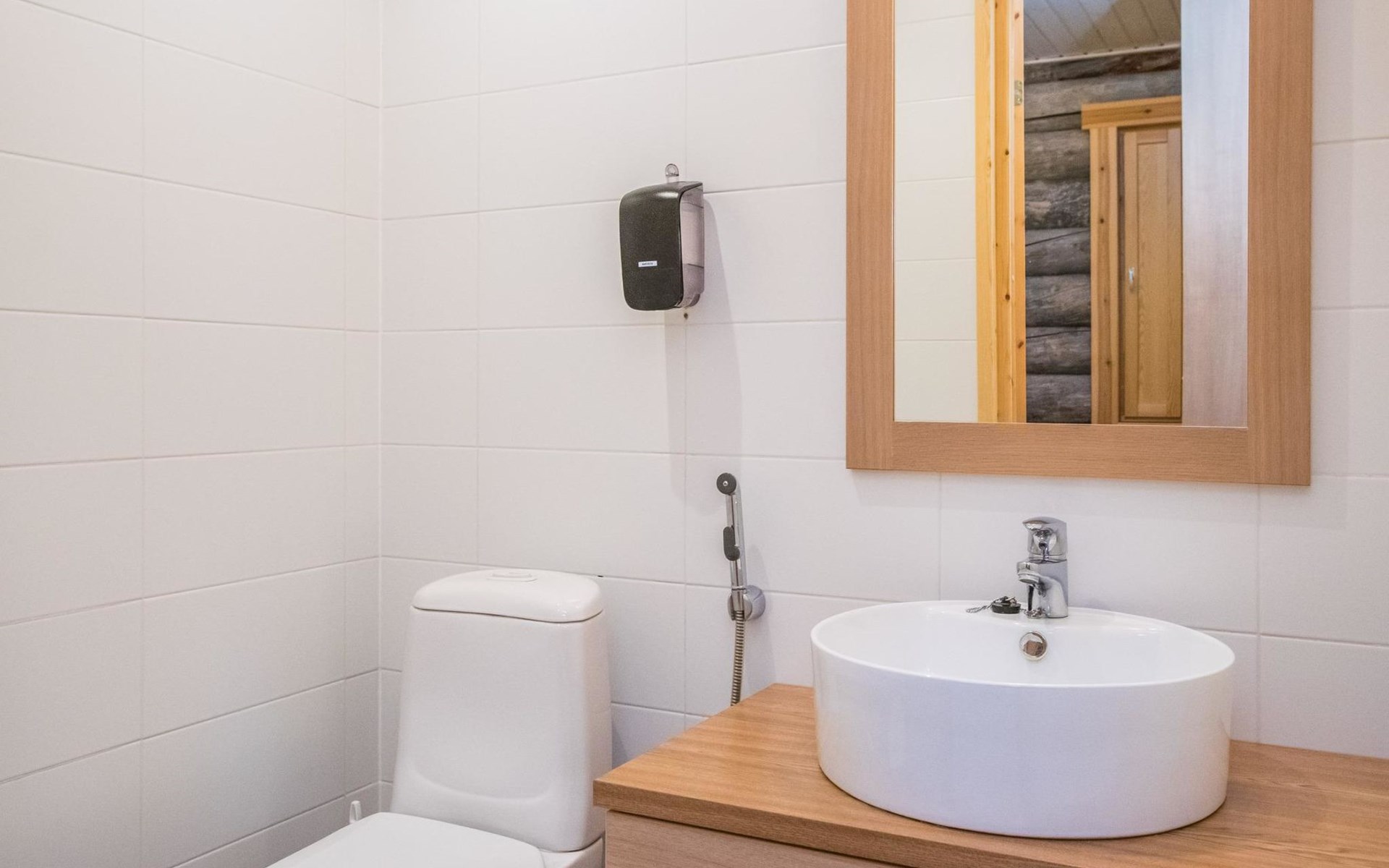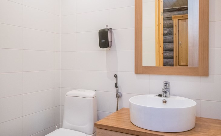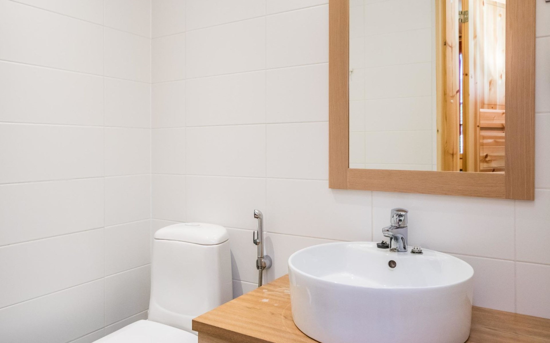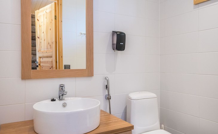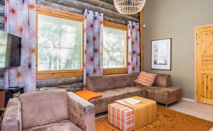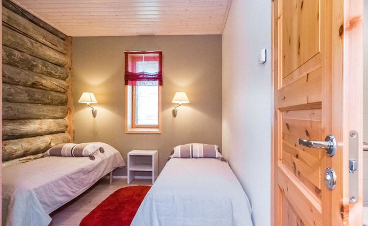 The bedrooms are located on the ground floor. Three bedrooms, each with two beds and a private toilet, provide plenty of private space and a peaceful place to sleep. From the living room there is a staircase to the loft with a lounge and an alcove with two beds.