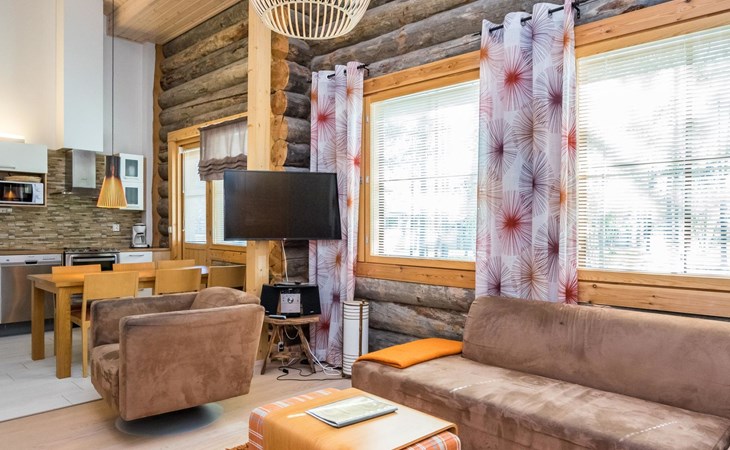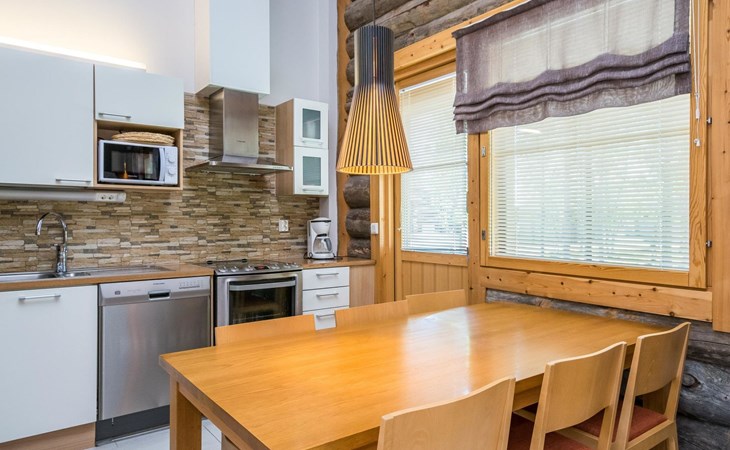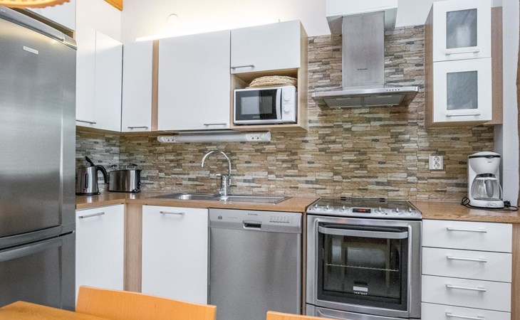 The cottage has a spacious kitchen/living room where you can prepare delicious meals, and in the living room you can relax watching TV or listening to the glow of the fireplace. There is also access to the terrace.