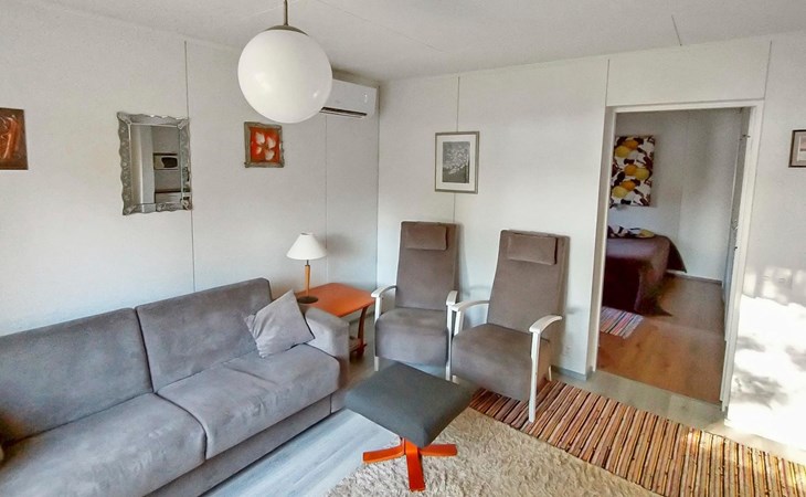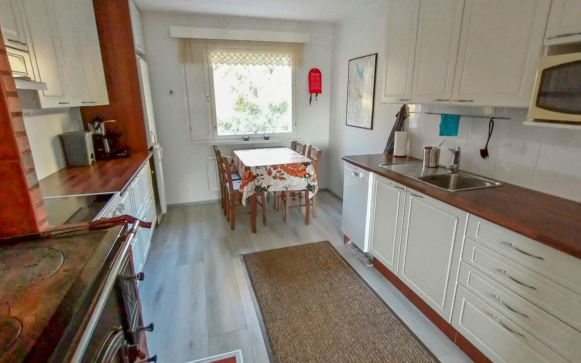 220 km nordwestlich von Rovaniemi, 16 km südlich von Muonio, See Kangosjärvi 60 m (Seelänge 5.5 km, Breite 1.5 km), flacher Sandstrand 150 m entfernt, eigenes Ruderboot, Elektromotor und Batterie erhältlich. Holz-Ferienhaus, Baujahr 1976, renoviert und erweitert im Jahr 2018. Wohnzimmer, Küche, zwei Schlafzimmer, eins mit 2 Betten, anderes mit 1 Bett. Zusätzlich 2 Zusatzbetten, die in jeden Raum verschoben werden können. Sauna, Badezimmer/Toilette, Diele und verglaste Veranda. Carport für ein Auto. Im Ferienhaus sind die Hunde nicht erlaubt, nur Katzen oder andere Haustiere. Luftwärmepumpe, die im Sommer auch zur Kühlung eingesetzt werden kann. Lagerfeuerplatz mit Ofen und Räucherofen im Hof. Eisbohrer, Wald-Ski (ein Paar), Schneeschuhe (3 Paare), 2 Tretschlitten, 1 Schlitten und 1 Rucksack stehen zur Verfügung. Das Ferienhaus Huitsin Nevada ist ein modernes und komfortables Ferienhaus am See. Olostunturi ist vom Ferienhaus zu sehen, Entfernung auf der Strasse 22 km. Dienstleistungen in Muonio Zentrum 16 km. Schwedische Grenzübergangsstelle 15 km. Skipisten von der Dorfhalle (Entfernung 300 m), Loipenlänge 1 km, 2 km, 3 km und 5 km. Pallas-Yllästunturi Nationalpark 30 km, Ylläs Skigebiet, Äkäslompolo 40 km (Hinweis: es kann sein, dass die gerade Strasse mitten im Winter nicht befahrbar ist). Levi 76 km.