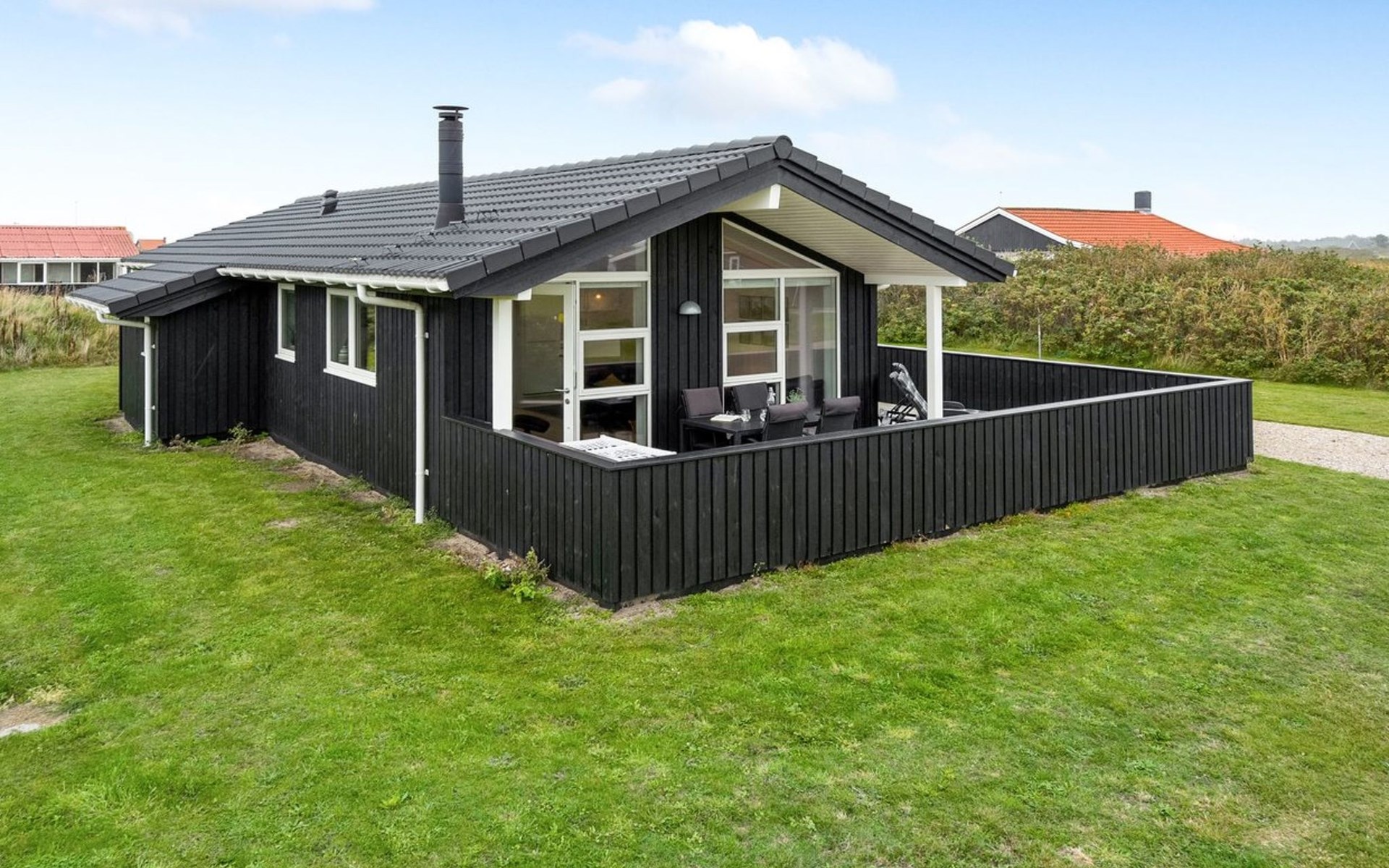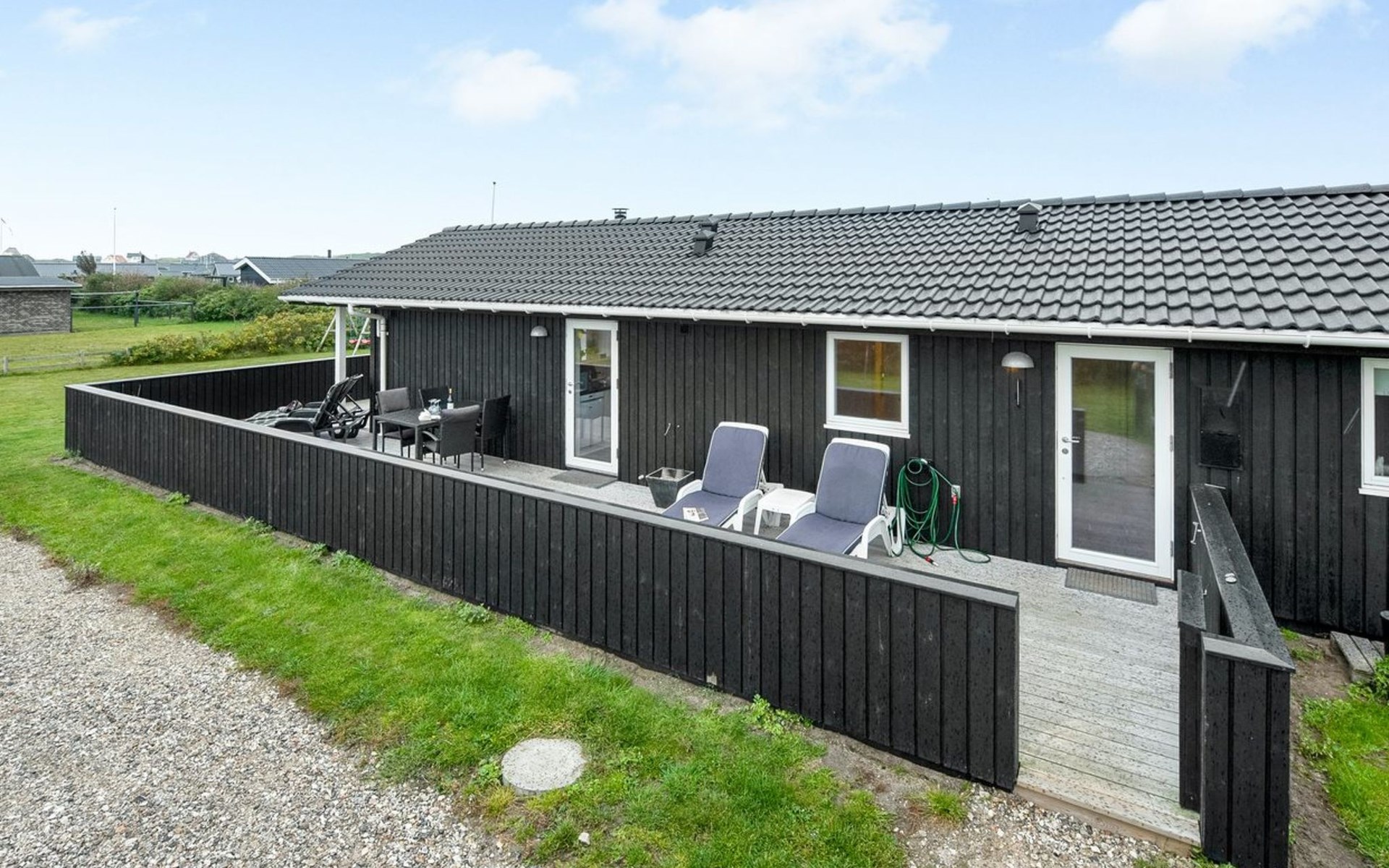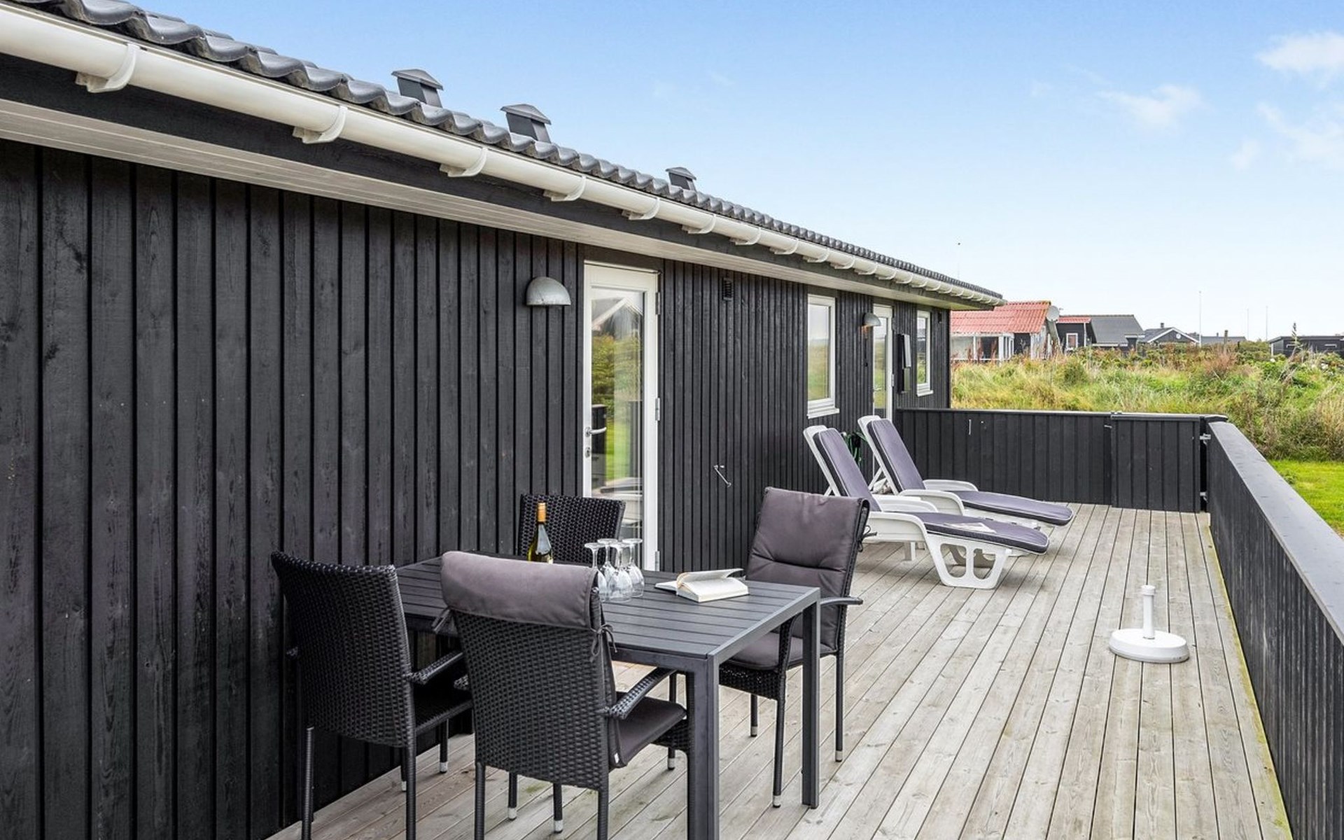 Einfamilienhaus, Baujahr 2017. 500 m vom Meer. Zur Alleinbenutzung: naturbelassenes Grundstück 1'500 m2. Terrasse (55 m2), Grill, Kinderspielplatz (Schaukel). Im Hause: Sauna, Waschmaschine, Wäschetrockner. Parkplatz beim Haus. Lebensmittelgeschäft 800 m. Golfplatz 1 km. Der Besitzer akzeptiert keine Jugendgruppen.