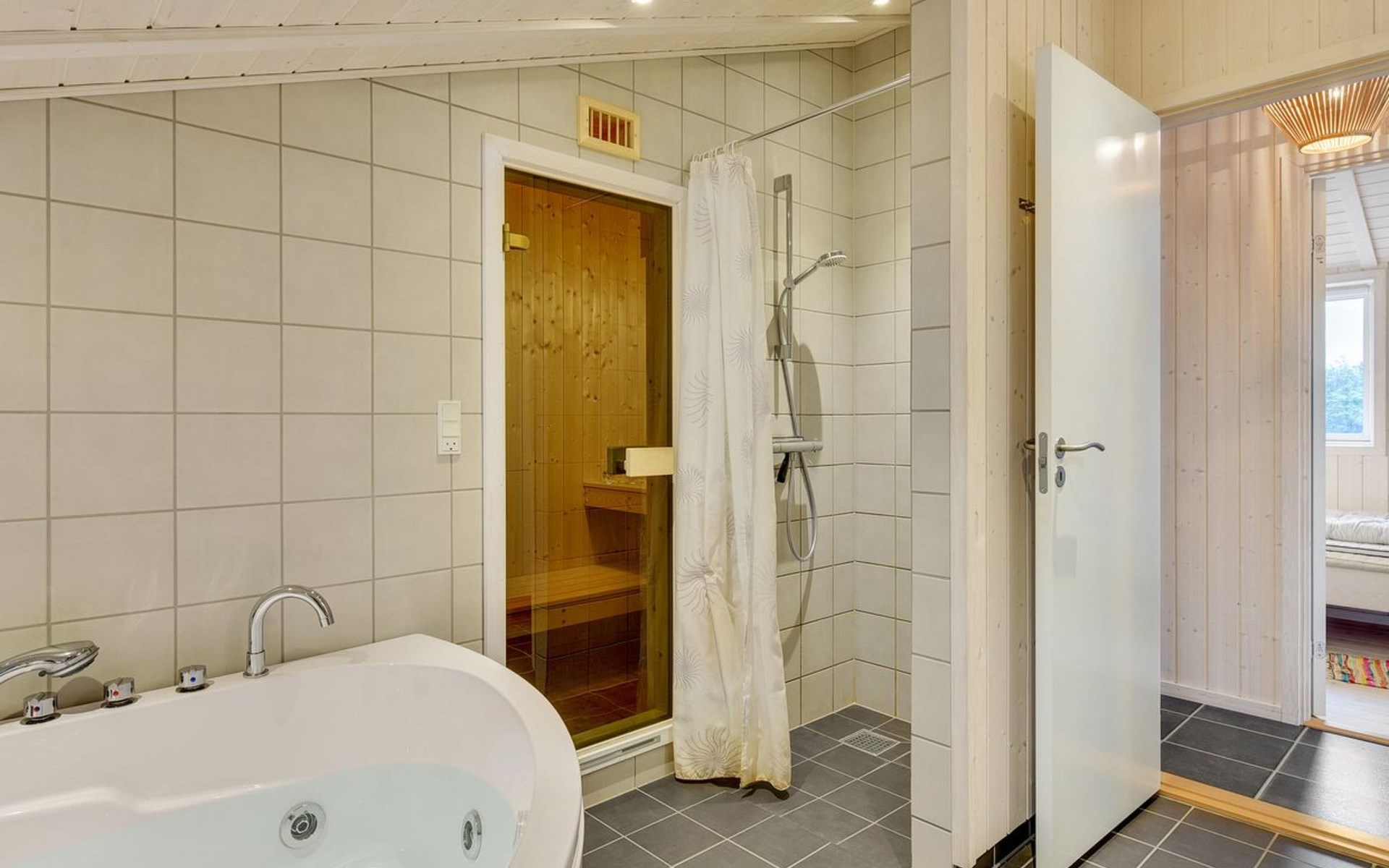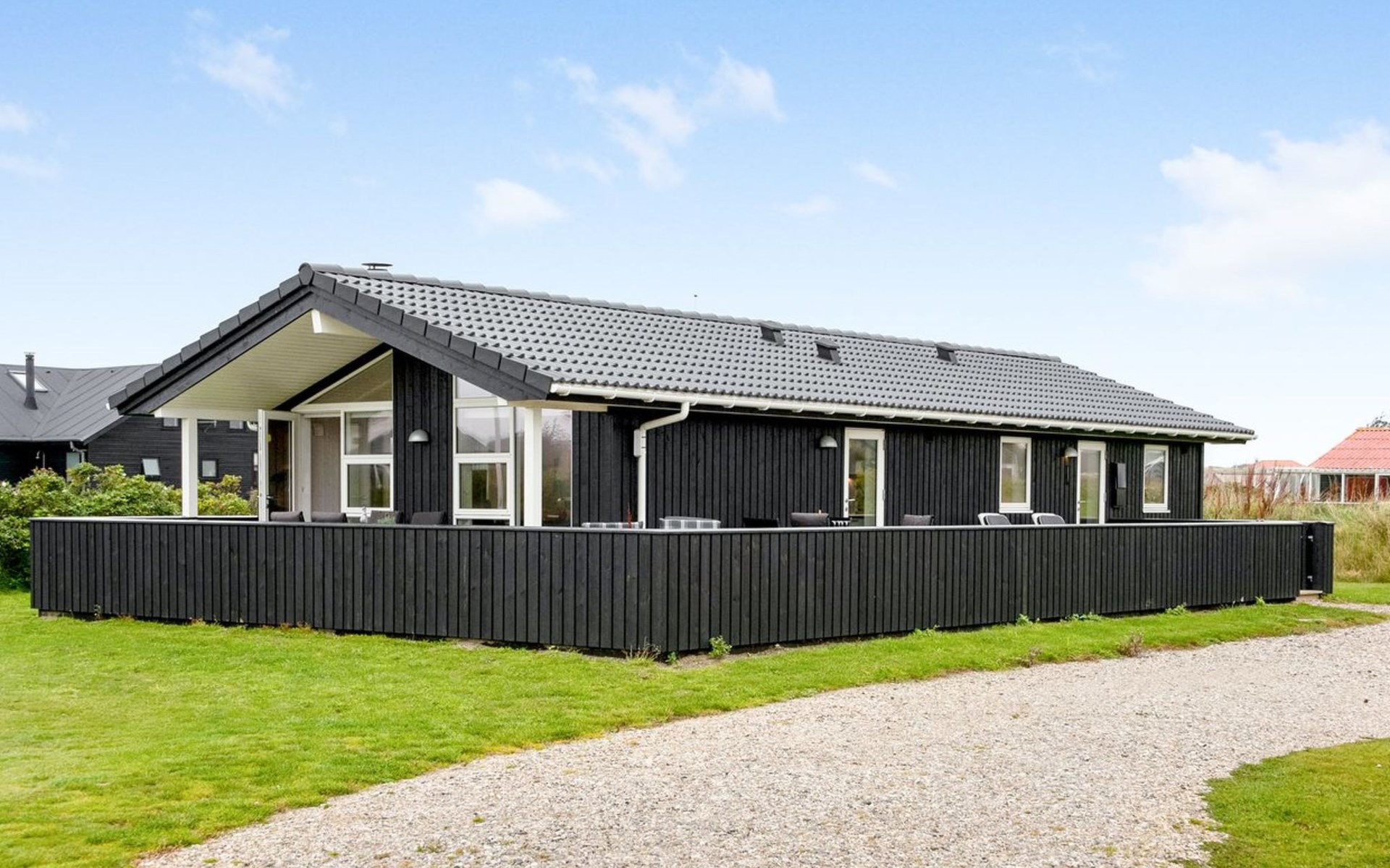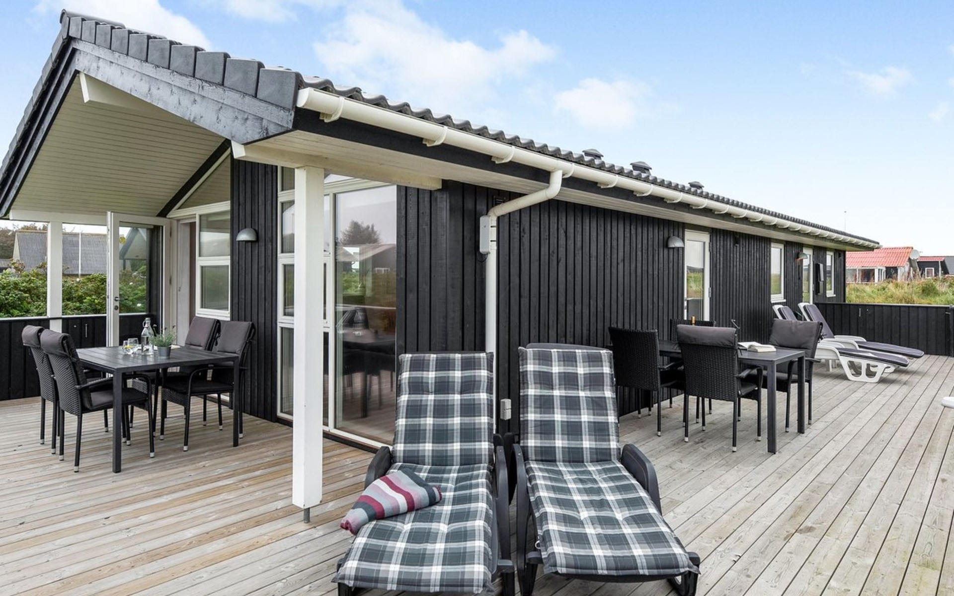 Einfamilienhaus, Baujahr 2017. 500 m vom Meer. Zur Alleinbenutzung: naturbelassenes Grundstück 1'500 m2. Terrasse (55 m2), Grill, Kinderspielplatz (Schaukel). Im Hause: Sauna, Waschmaschine, Wäschetrockner. Parkplatz beim Haus. Lebensmittelgeschäft 800 m. Golfplatz 1 km. Der Besitzer akzeptiert keine Jugendgruppen.