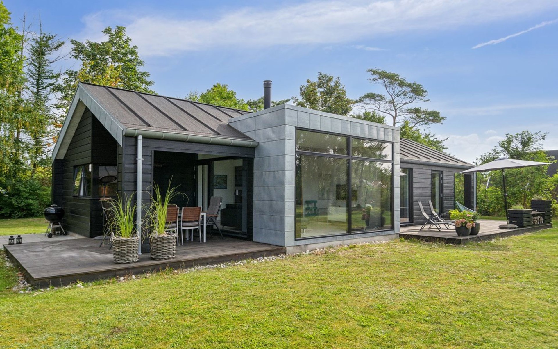 Einfamilienhaus, Baujahr 2016. 150 m vom Meer. Zur Alleinbenutzung: Grundstück 870 m2, gepflegter Garten. Terrasse (53 m2). Im Hause: Waschmaschine, Wäschetrockner. Parkplatz beim Haus. Lebensmittelgeschäft 1 km. Der Besitzer akzeptiert keine Jugendgruppen.