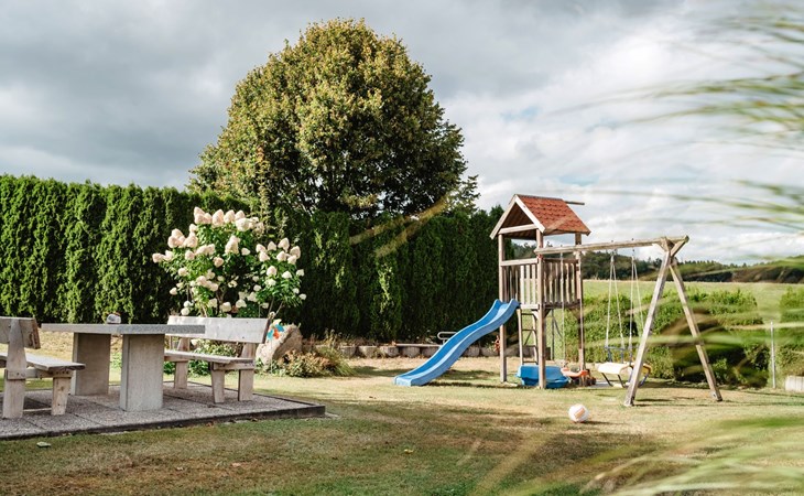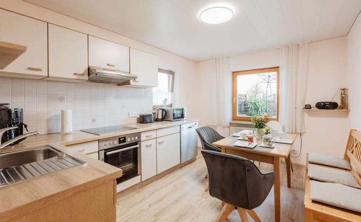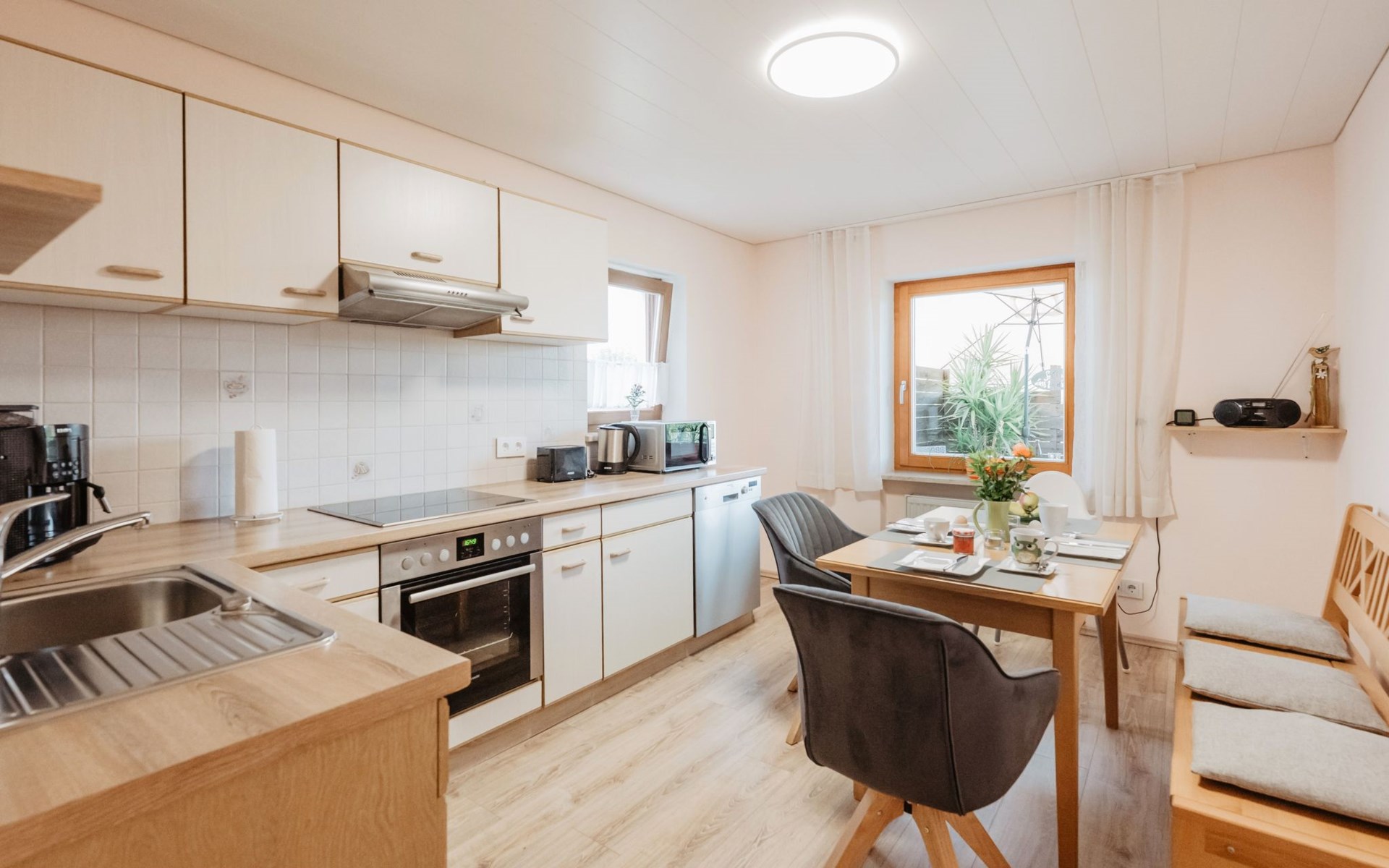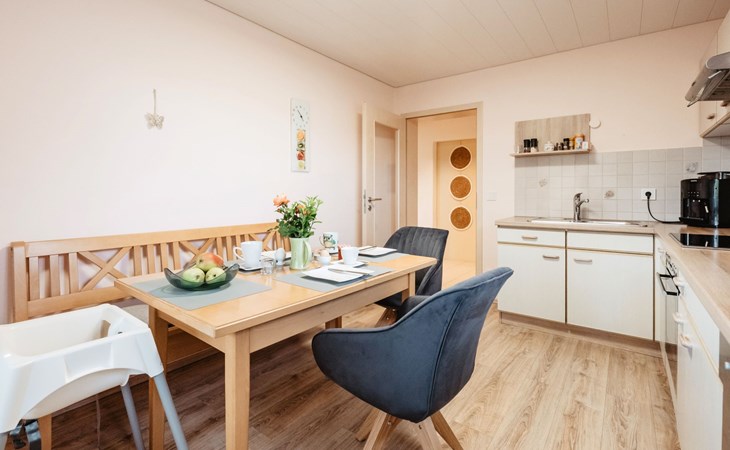 In nur 200m Entfernung liegt die nächstgelegene Ortsmitte, was Spaziergänge und den Besuch lokaler Einrichtungen erleichtert. Für die Selbstverpflegung gibt es einen Lebensmittelhandel in 3 km Entfernung. Gruppenbuchungen sind in dieser Ferienwohnung nicht gestattet, was einen ruhigen und erholsamen Aufenthalt garantiert. Der Anbieter wohnt ebenfalls auf dem Grundstück, was eine persönliche Betreuung und schnelle Unterstützungsleistung im Bedarfsfall sicherstellt.