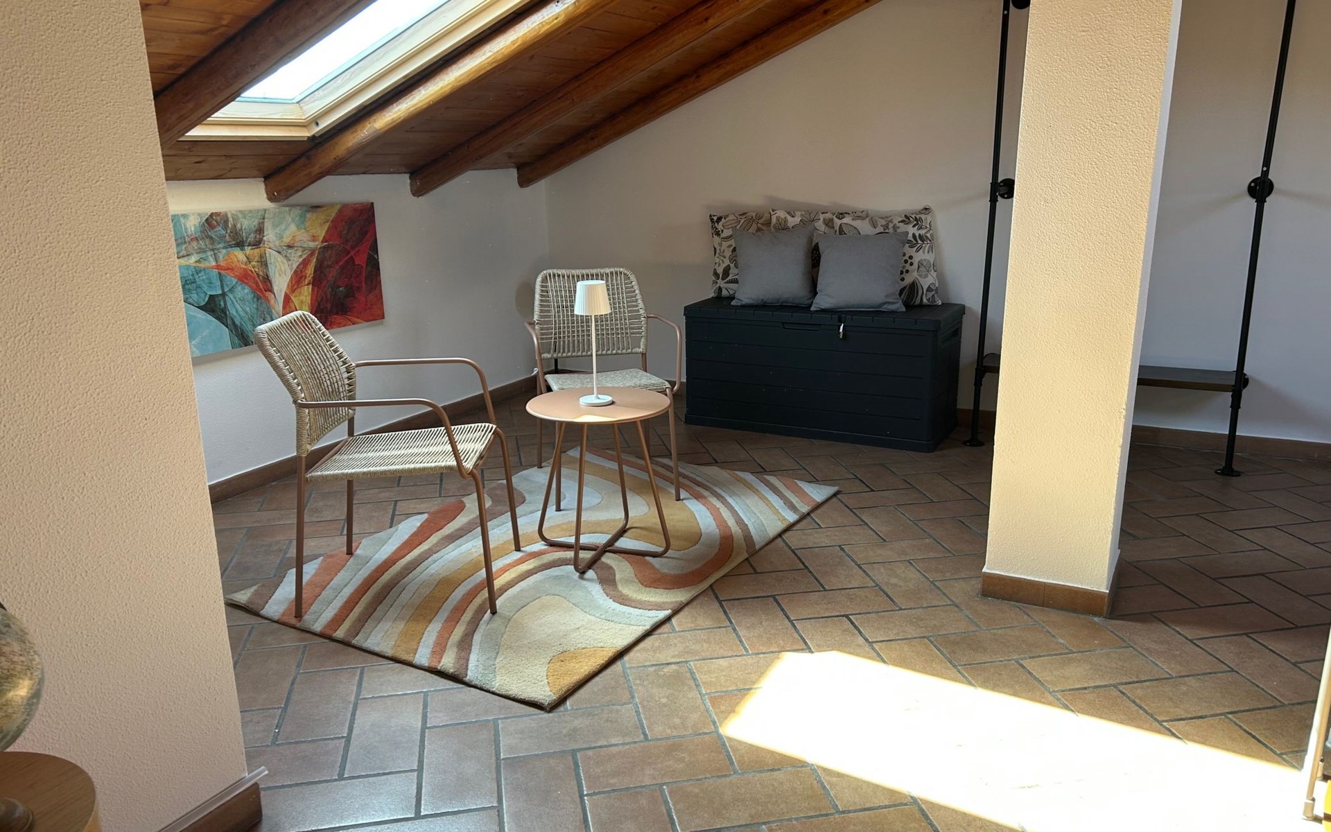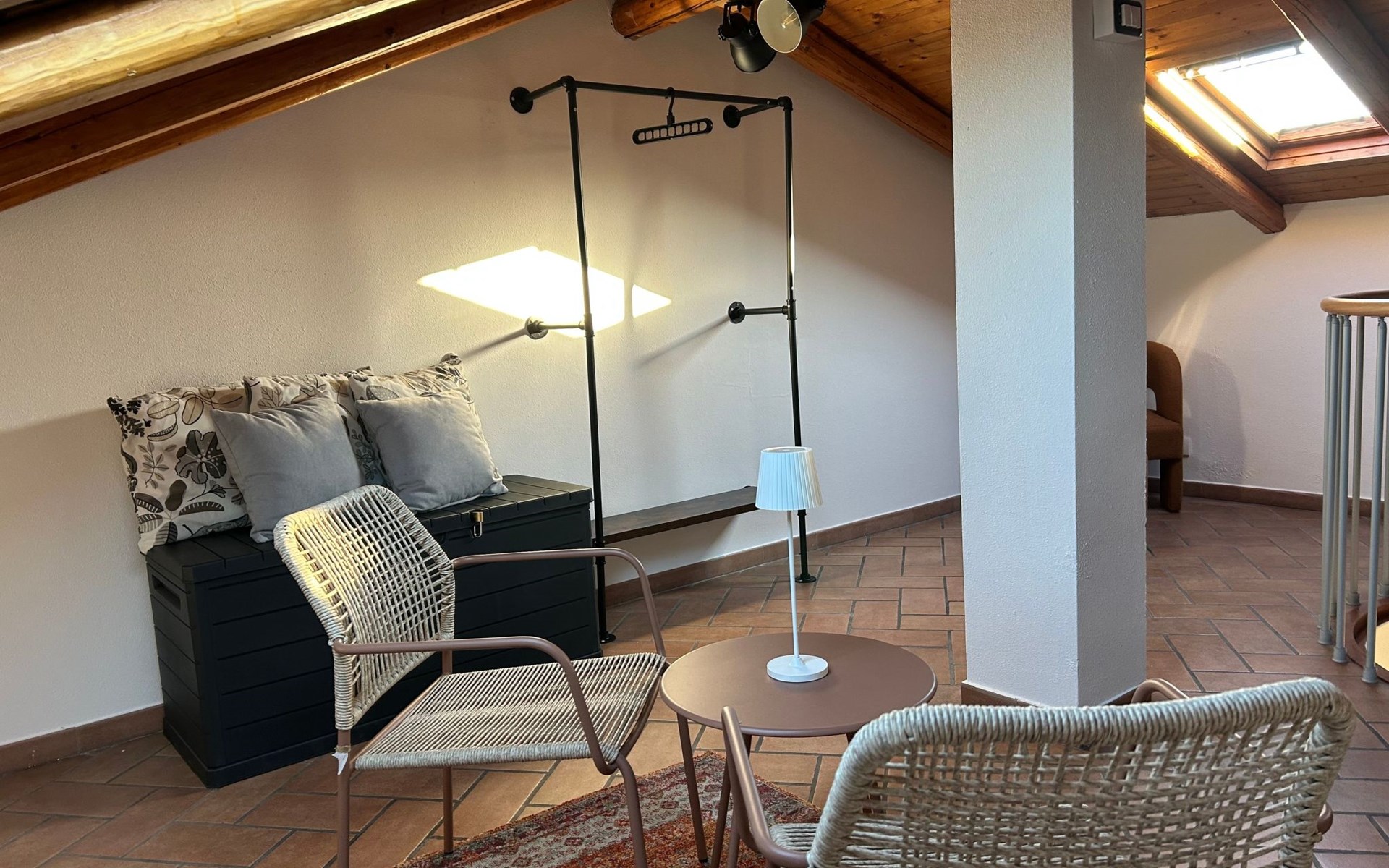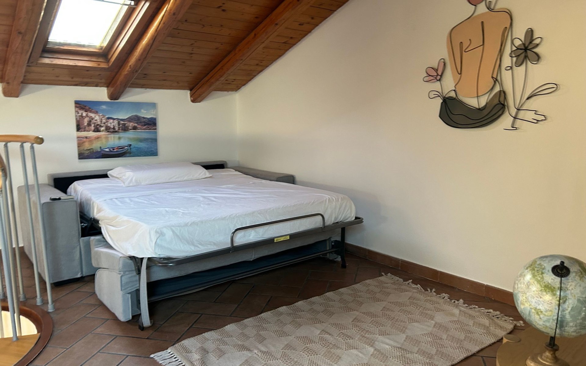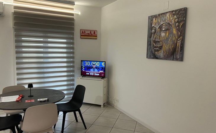 Im Inneren finden Sie eine gut gepflegte Unterkunft mit einer Reihe von modernen Annehmlichkeiten. Für Ihre Entspannung und Unterhaltung ist die Wohnung mit einem Smart-TV und einer Klimaanlage in allen Zimmern ausgestattet, um maximalen Komfort in den wärmeren Monaten zu gewährleisten. Für diejenigen, die in Verbindung bleiben oder aus der Ferne arbeiten müssen, erleichtert die Verfügbarkeit einer effizienten Waschmaschine und eines Wäschetrockners, die Ihnen exklusiv zur Verfügung stehen, das tägliche Leben. Es gibt auch eine Kaffeemaschine mit Pads, um den Tag auf dem richtigen Fuß zu beginnen, und einen Deckenventilator, der eine angenehme Brise während der wärmeren Abende bietet.