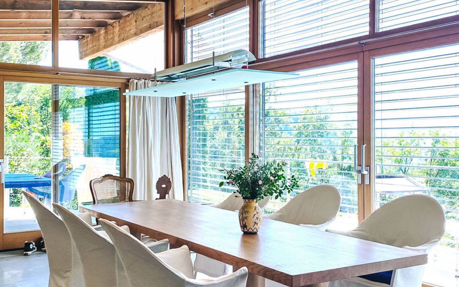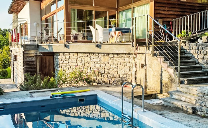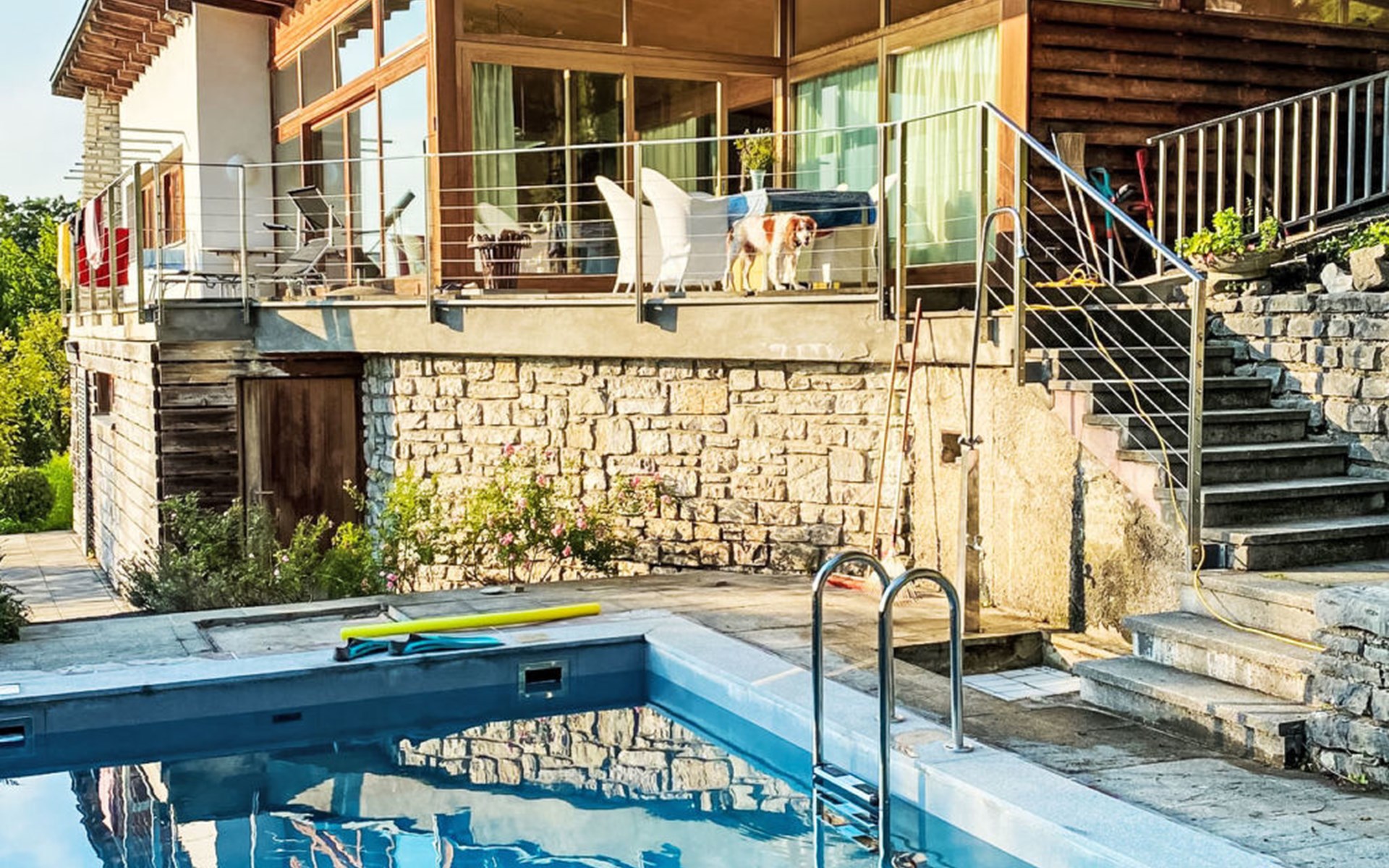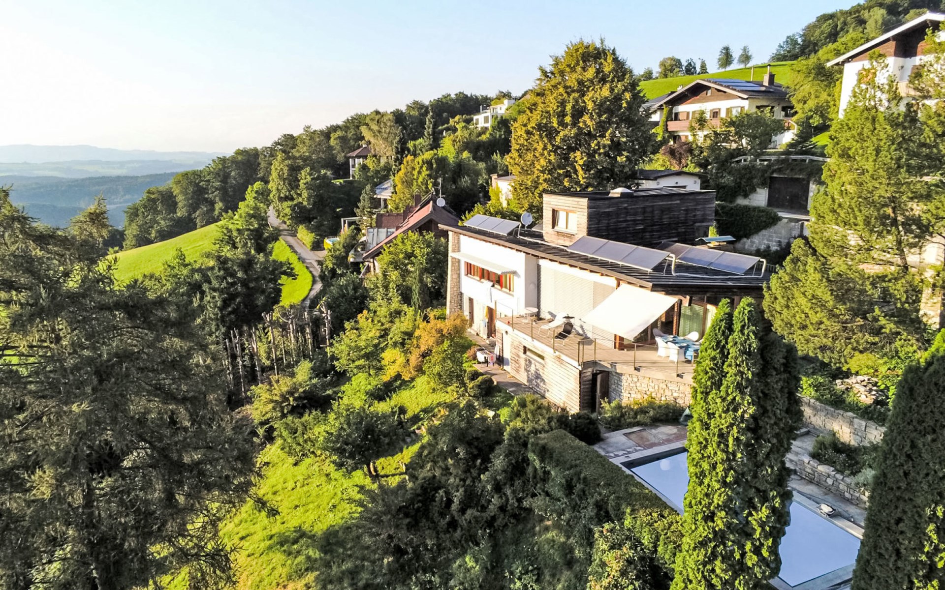Koppl 5 km von Salzburg: Traumhaftes Haus in hervorragender Gegend! Atemberaubender Blick über Salzburg! 5 km vom Stadtzentrum von Salzburg! modernes, komfortables Einfamilienhaus "Heuberg", auf 2 Stockwerken. Ausserhalb des Ortes, ruhige, erhöhte Lage am Hang. Zur Alleinbenutzung: Grundstück, Garten, Schwimmbad (7 x 3 m, 170 cm tief, saisonale Verfügbarkeit: 15.Mai. - 15.Sep.). Aussendusche, Grill. Im Hause: Zentralheizung. Steile Zufahrt. Parkplatz (für 3 Autos) beim Haus, Einzelgarage, öffentliche Parkplätze auf der Strasse. Lebensmittelgeschäft 2 km, Supermarkt 2 km, Restaurant 1 km, Bäckerei 2 km, Bushaltestelle 1.5 km. Golfplatz (9 Loch) 12 km, Skilift 20 km, Skipisten 20 km. Nahe gelegene Sehenswürdigkeiten: Stadt Salzburg 13 km. Wandergebiete: Ebenau Mühlen Rundwanderweg 4 km.