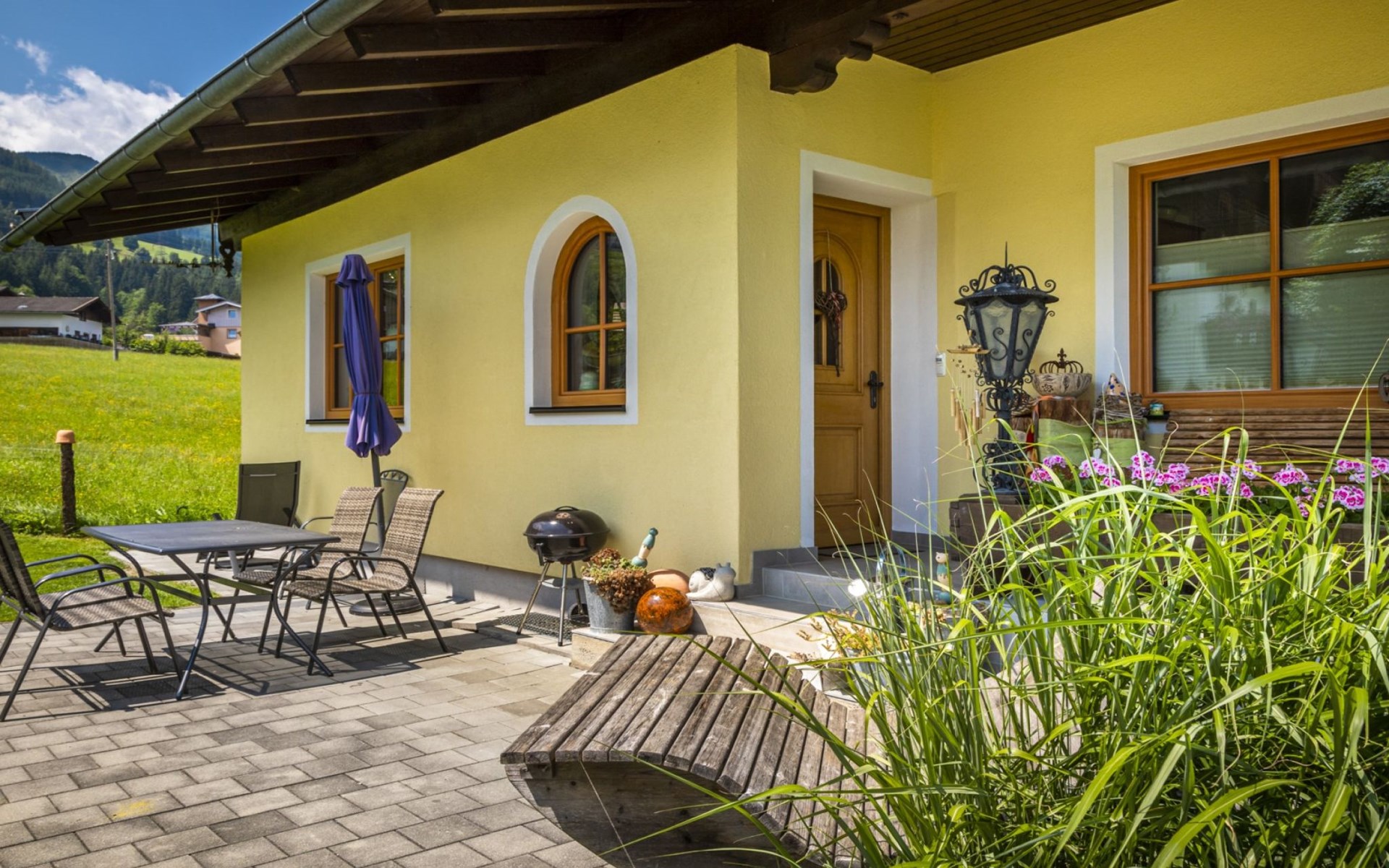 Ferienhaus Haus "Erlachhof". 1 km vom Zentrum von Niedernsill, am Ortsrand, 15 km vom Zentrum von Zell am See, 41 km vom Zentrum von Kitzbühl, 1.5 km vom See, 10 km vom Skigebiet. Zur Mitbenutzung: Gartenmöbel, Grill, Kinderspielplatz. Im Hause: Skiraum, Skischuhtrockner. Parkplatz beim Haus. Einkaufsgeschäft 1.5 km, Bushaltestelle "Jesdorf Bergfried" 1.7 km, Bahnstation "Zell am See" 14 km, Freibad 5 km, Badesee "Niedernsill" 1.5 km. Bergeisenbahn 10 km, Skipisten 10 km, Schlittelbahn 1.5 km, Langlaufloipe 200 m. Ab Hof Verkauf von bäuerlichen Produkten.
