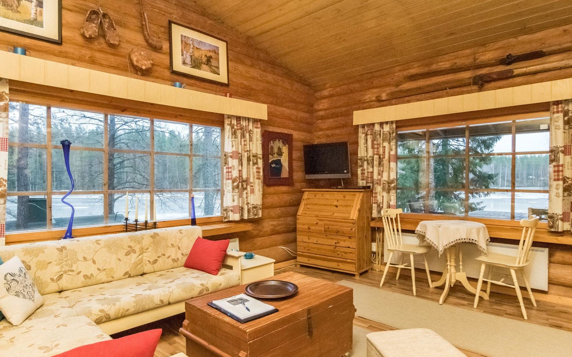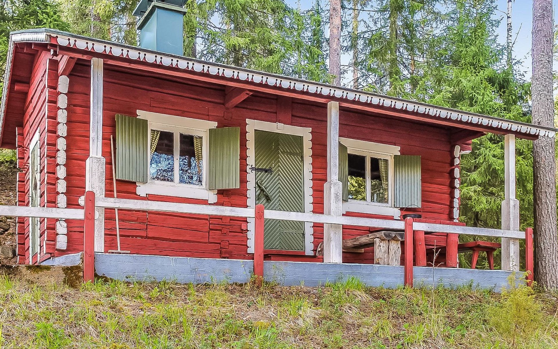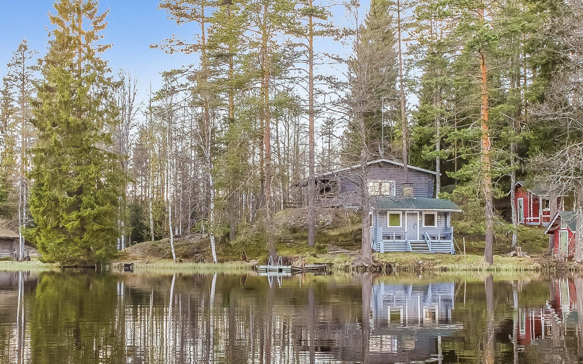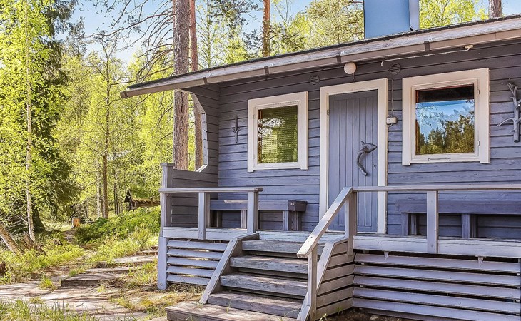 Savonlinna 50 km östlich, Multalampi-Teich 20 m (Länge 0.6 km, Breite 0.15 km), tiefer und weicher Schlammboden, Sandstrand um die Anlegestelle, Boot. Blockhaus, Baujahr 1972, renoviert im Jahr 2012, Wohnküche, Schlafnische (5.5 m²) mit zwei Betten, Schlafboden mit Matratzen für drei Personen (Höhe max. 1 m, Grundfläche 18 m², steile Leiter zum Dachboden), Badezimmer mit Dusche und Toilette, Diele, Terrasse. Separate Sauna, Baujahr 1972 (10 m²), Holzofen und Heiztank, fliessend kaltes Wasser aus dem Teich, elektrisches Licht, Wohnzimmer mit Kamin, Terrasse, Badestrand ist 5 m entfernt. Nur für den Sommer: Schlafhütte, Baujahr 1972 (15 m²), Schlafsofa für zwei, "kleine Küche", elektrisches Licht, elektrische Heizung, offener Kamin. Holzschuppen. Gebäude im Hof sind zur Eigennutzung des Besitzers (Rauchsauna und Garage). Charakteristische, schön eingerichtete Ferienhausanlage auf einem Hügel. Das Grundstück ist von zwei Teichen umgeben (Multalampi und Heinälampi Teich). Der Hof besteht aus Wald und natürlicher Vegetation. Steinstufen vom Parkplatz zu den Gebäuden, Objekt ist daher nicht für gehbehinderte Person geeignet. Das Badezimmer hat niedrige Decke, Höhe 180 cm. Die Schlafhütte ist frisch eingerichtet, in der "Küche" ist Kaffeemaschine mit Kaffee verfügbar. Die Schlafhütte ist nur für den Sommer vorgesehen. Fahrräder zu mieten (2 Stk.). Särkisalmi ABC 5 km, Oronmylly 8 km, Parikkala 10 km, Statue (Denkmal) Park 15 km, Whitefish Bay (Felchen-Bucht), Vogelschutzgebiet 15 km, Pajarihovi Zoo und Spa 50 km, Savonlinna, Olavinlinna 50 km, Punkaharju, Lusto 15 km, Kerimäki 38 km, Imatra 75 km, beschilderte Schneemobilwege 1 km. Gelegenheit zur Teilnahme an geführten Angel- und Jagdausflügen.