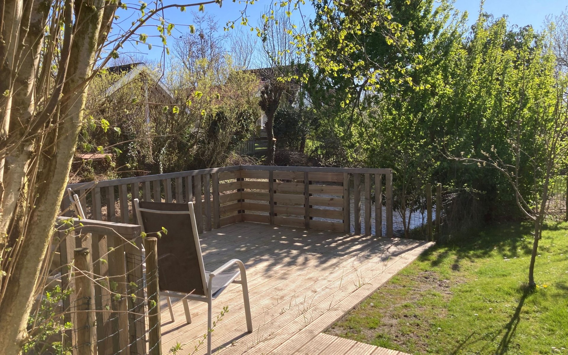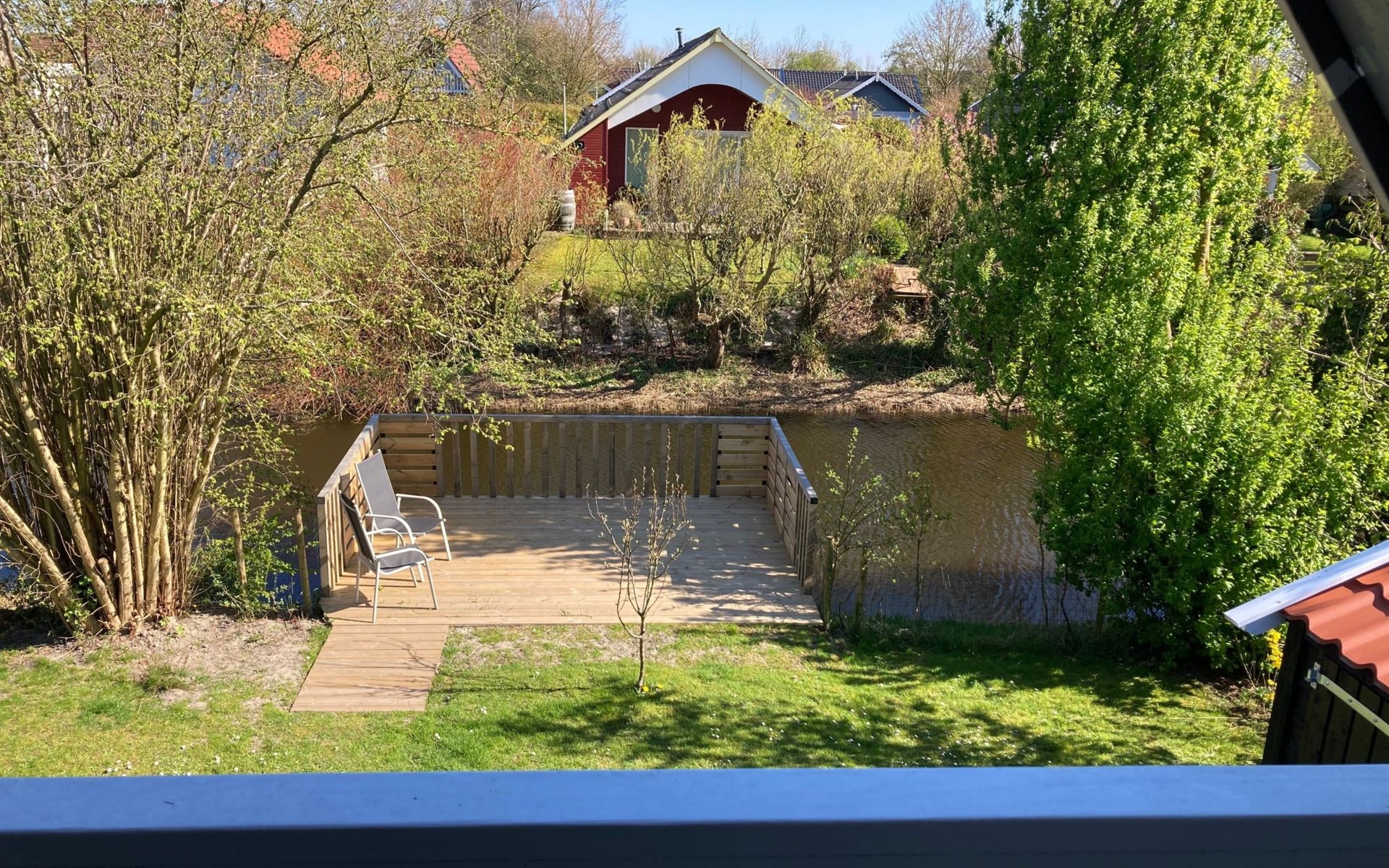Die Terrasse ist mit Gartenmöbeln, Sonnenschirm ausgestattet. Das Grundstück ist zum Wasser eingzäunt und somit auch für Kinder bestens geeignet. Hinter dem Haus befindet sich ein breiter, fischreicher Graben. Rotfedern, Rotaugen, Aale, Karpfen, Barsche u. Hechte. Alles Fische, die hier regelmäßig gefangen wurden. Das Haus selber ist hervorragend isoliert und selbst bei tropischen Temperaturen bleibt es innen angenehm kühl.