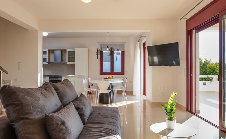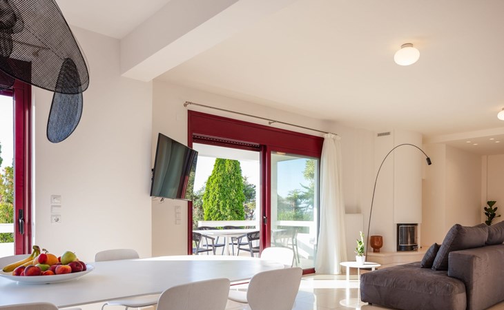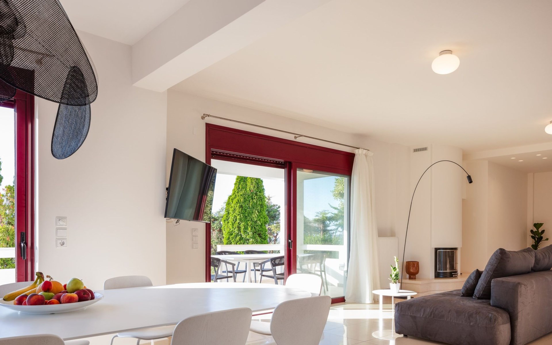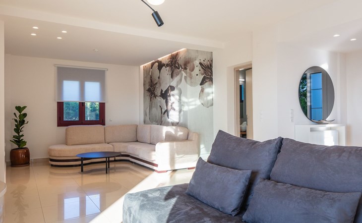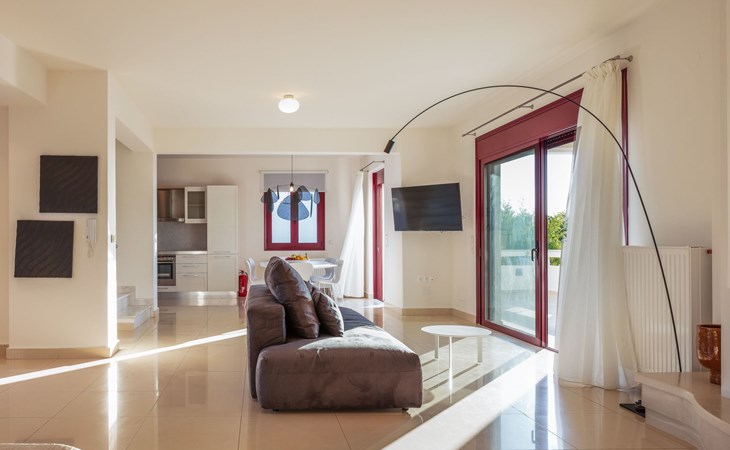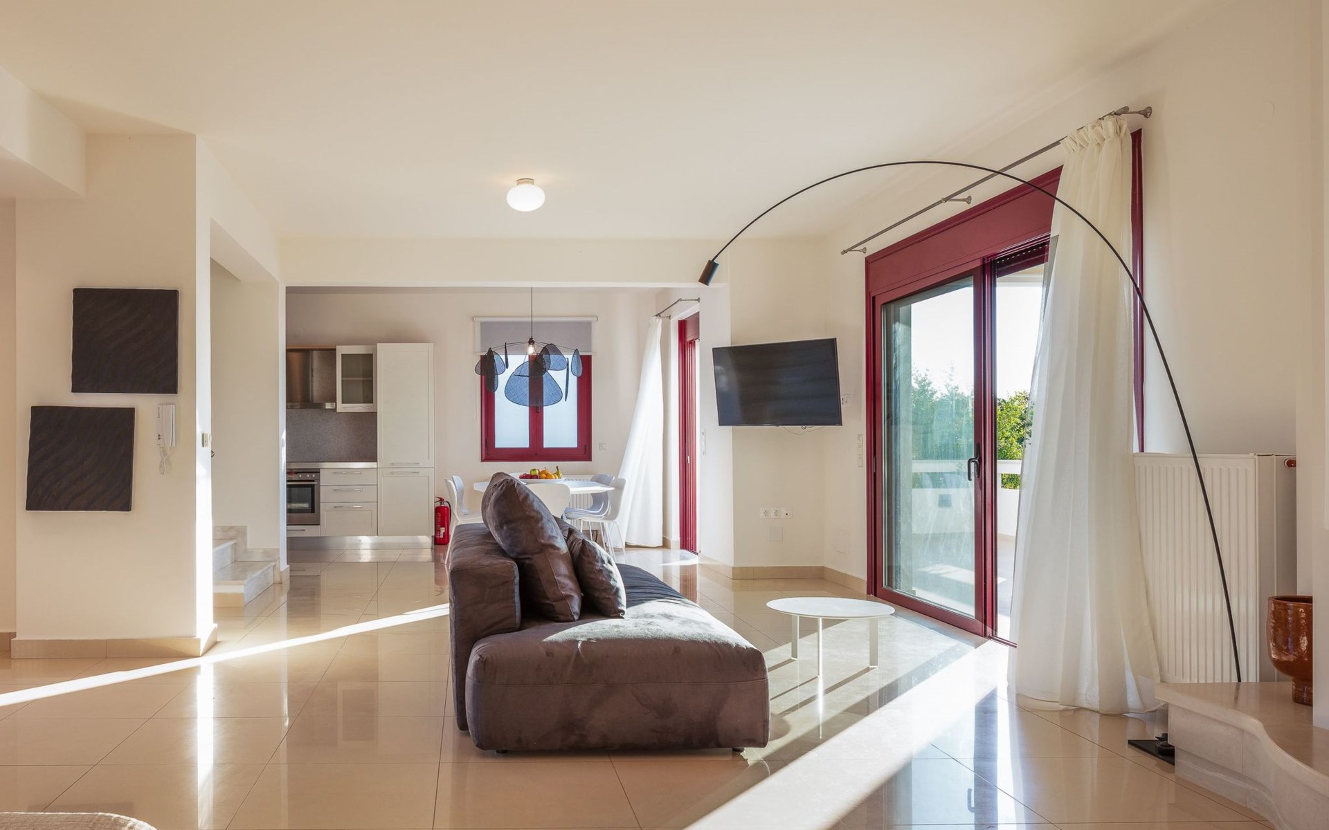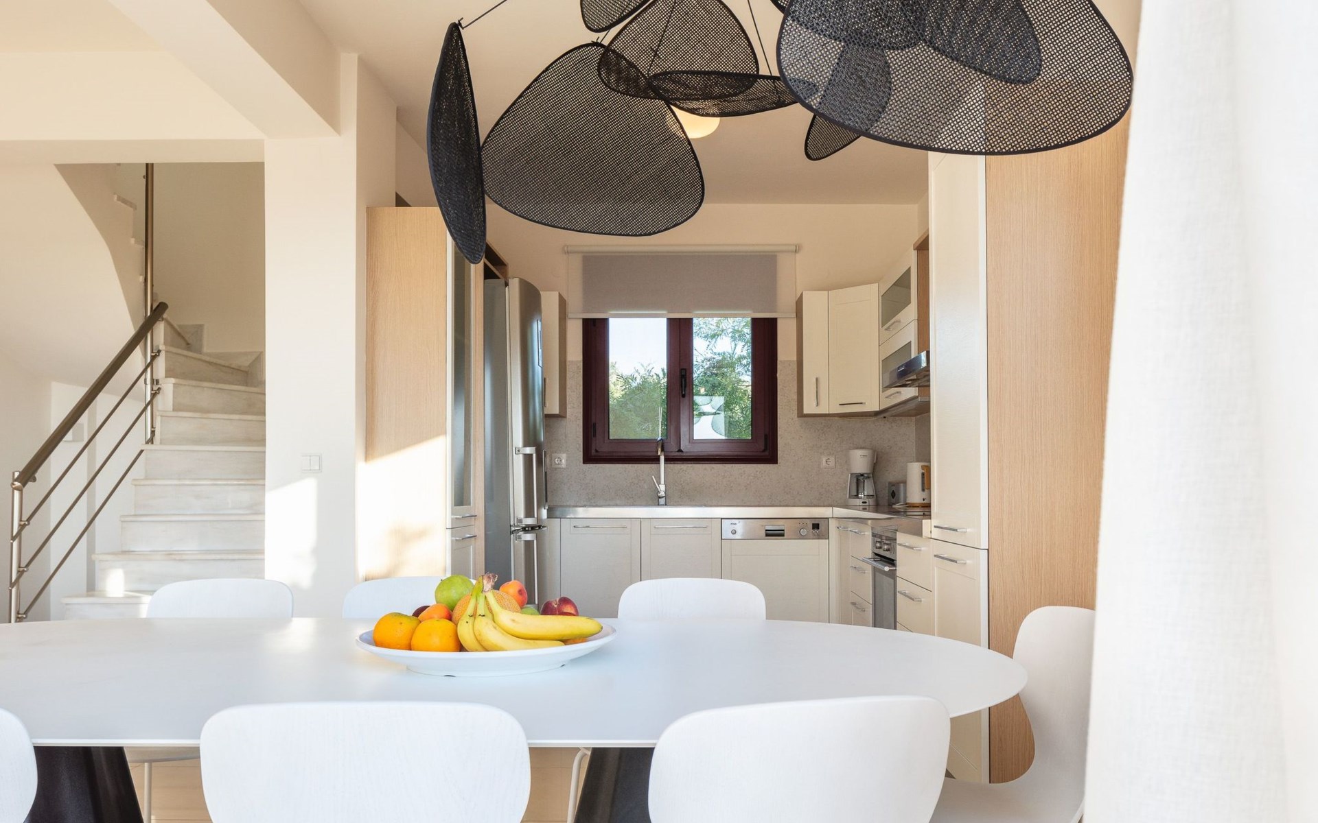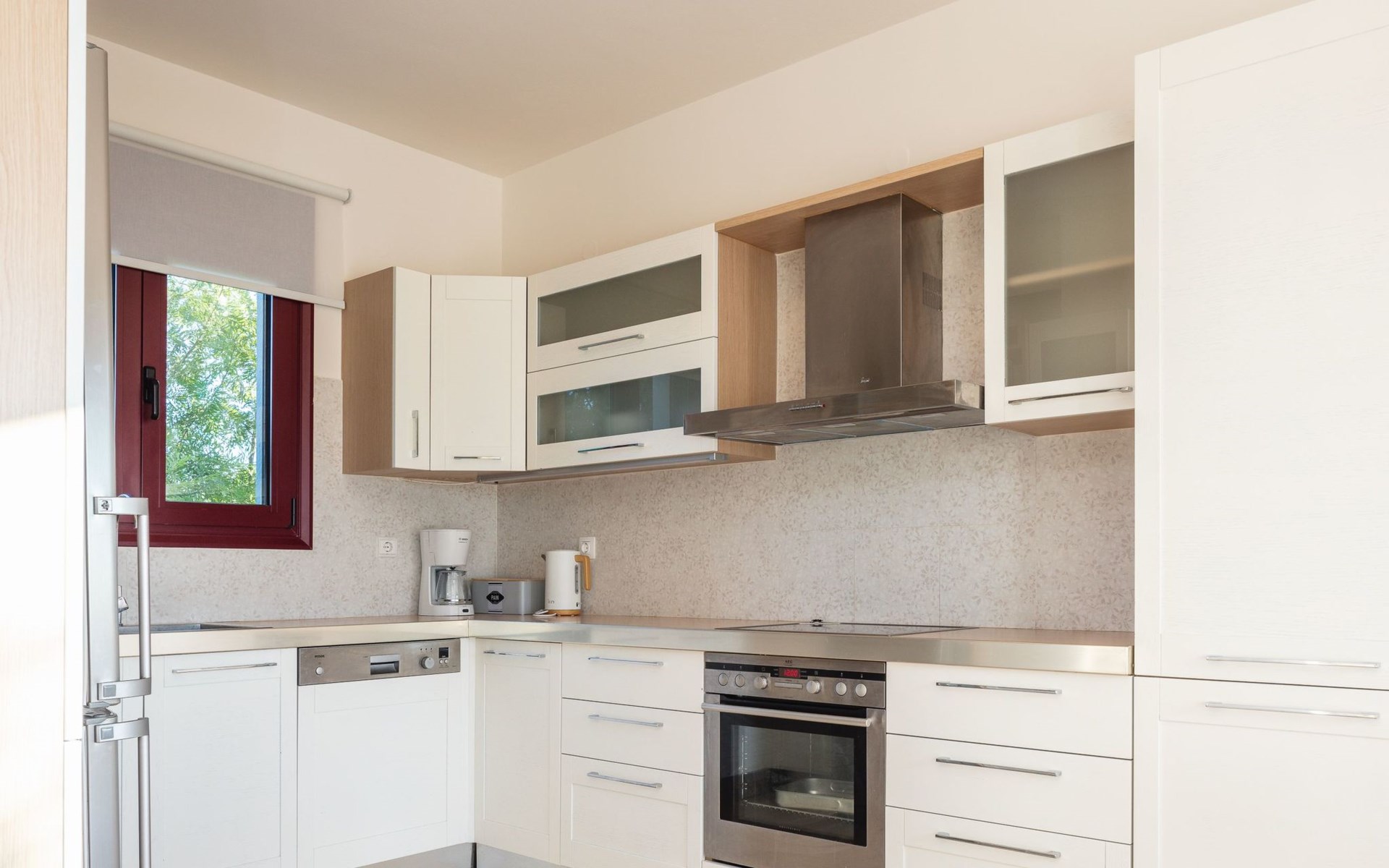 Zwei Wohnzimmer mit allen Annehmlichkeiten und einfachem Zugang zur Veranda. Das Wohnzimmer verfügt über flexible Sofas für die gesamte Gruppe. Die Villa verfügt über 4 Schlafzimmer und 4 Betten und bietet Platz für 9 Personen in Betten und maximal 11 Personen. Die voll ausgestattete Küche neben dem Wohnzimmer bietet Ihnen die Möglichkeit, Mahlzeiten für die ganze Familie zuzubereiten. Es verfügt über einen großen Kühlschrank, einen 4-Platten-Herd und einen Elektroherd, eine Mikrowelle, einen Geschirrspüler, einen Toaster, eine Filterkaffeemaschine, Geschirr und Besteck