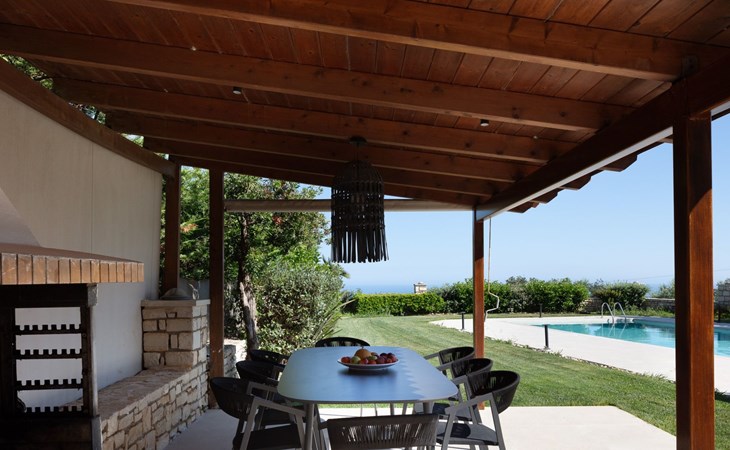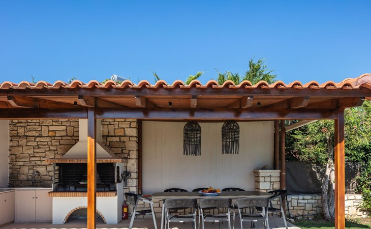 Vollständig ausgestatteter Grillplatz, der auch einen Holzofen und eine Spüle enthält. Der Grillplatz verfügt über einen Esstisch. Ein einzigartiger Bereich des Hauses zum Entspannen unter Sonnenschirmen oder zum Spielen mit Ihren Kindern auf der Rasenfläche. Zusätzlich zum Pool (kann auf Anfrage und gegen Aufpreis beheizt werden) und den Grillplätzen, die sich neben dem Garten befinden. Liegestühle und Sonnenschirme am Pool sorgen für Ihre Entspannung.