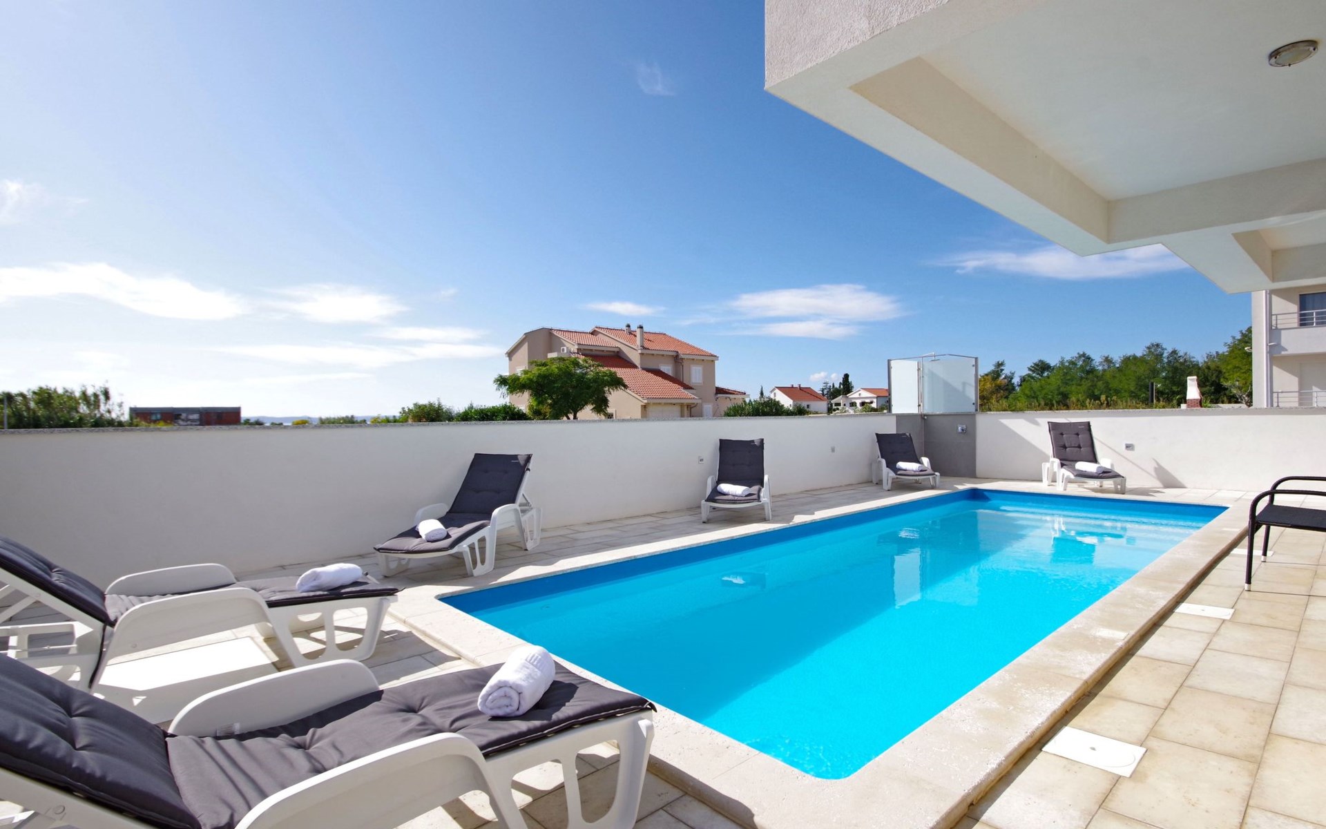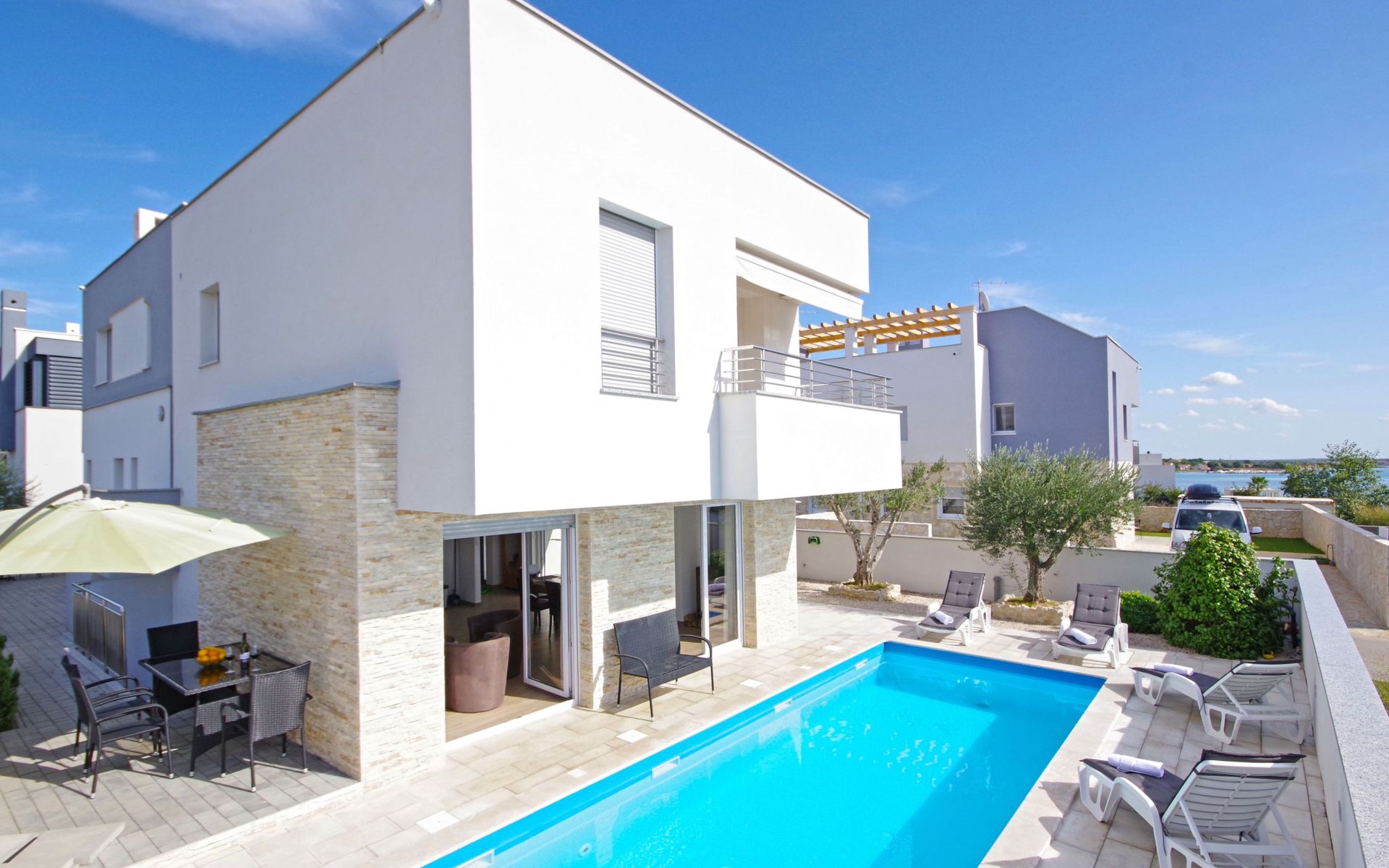 Die Parkplätze an der Unterkunft können Sie kostenlos nutzten. Der Flughafen Zadar liegt 30 km von der Unterkunft entfernt.