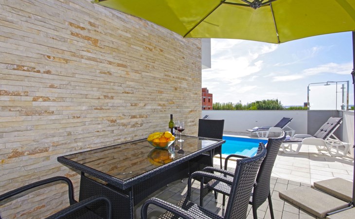 Das im Jahre 2016 erbauten Apartments ist. ca. 45 qm groß und geschmackvoll sowie modern eingerichtet. Das klimatisierte und beheizbare Apartment hat eine Loggia, ca. 4 qm groß . Apartment Laura bietet einen beheizbaren Außenpool sowie eine möblierte Sonnenterrasse. WLAN ist in allen Bereichen kostenfrei. Auf einer gemeinsamen Terrasse steht für die Gäste ein Kamin (Grill) zur Verfügung.