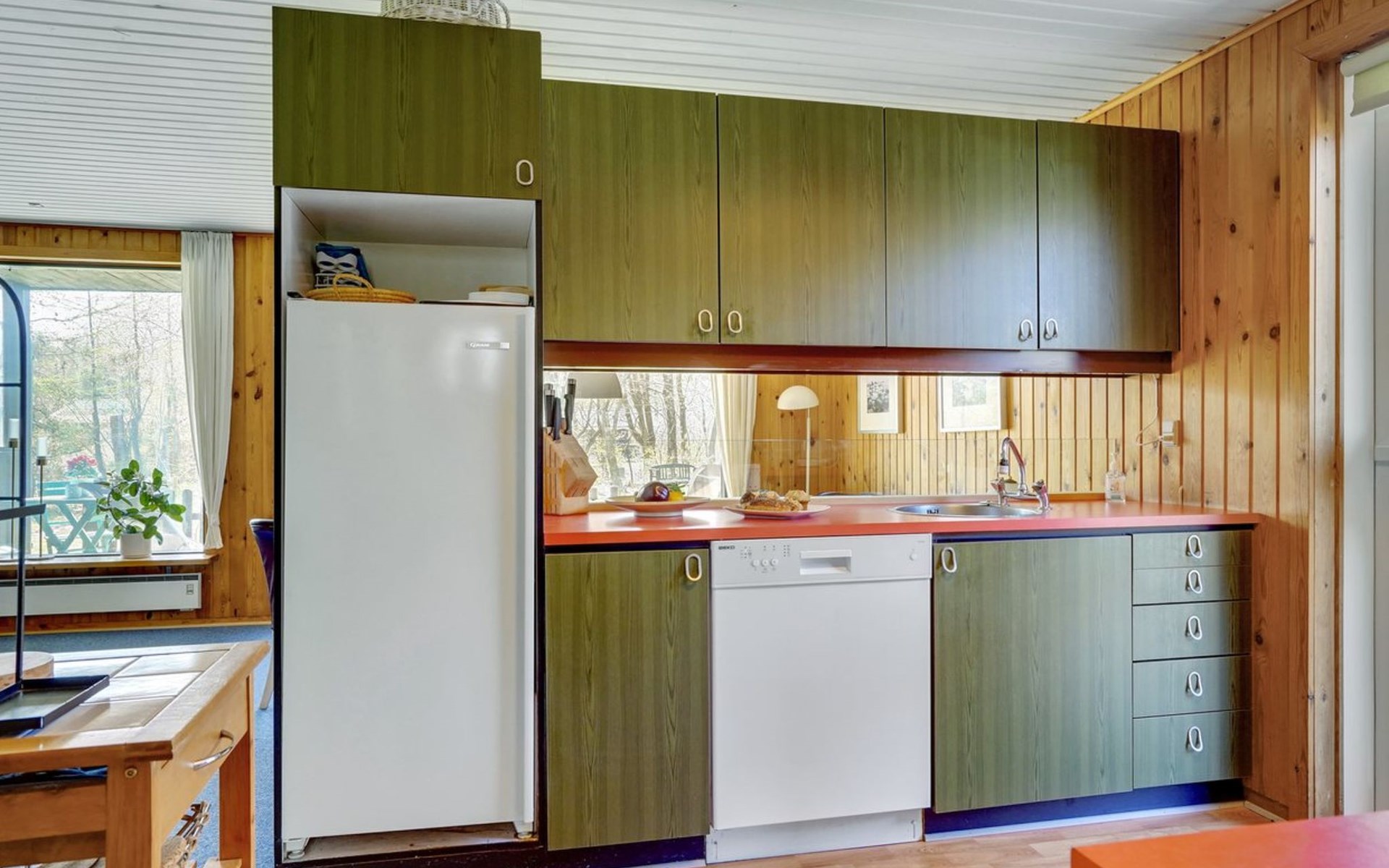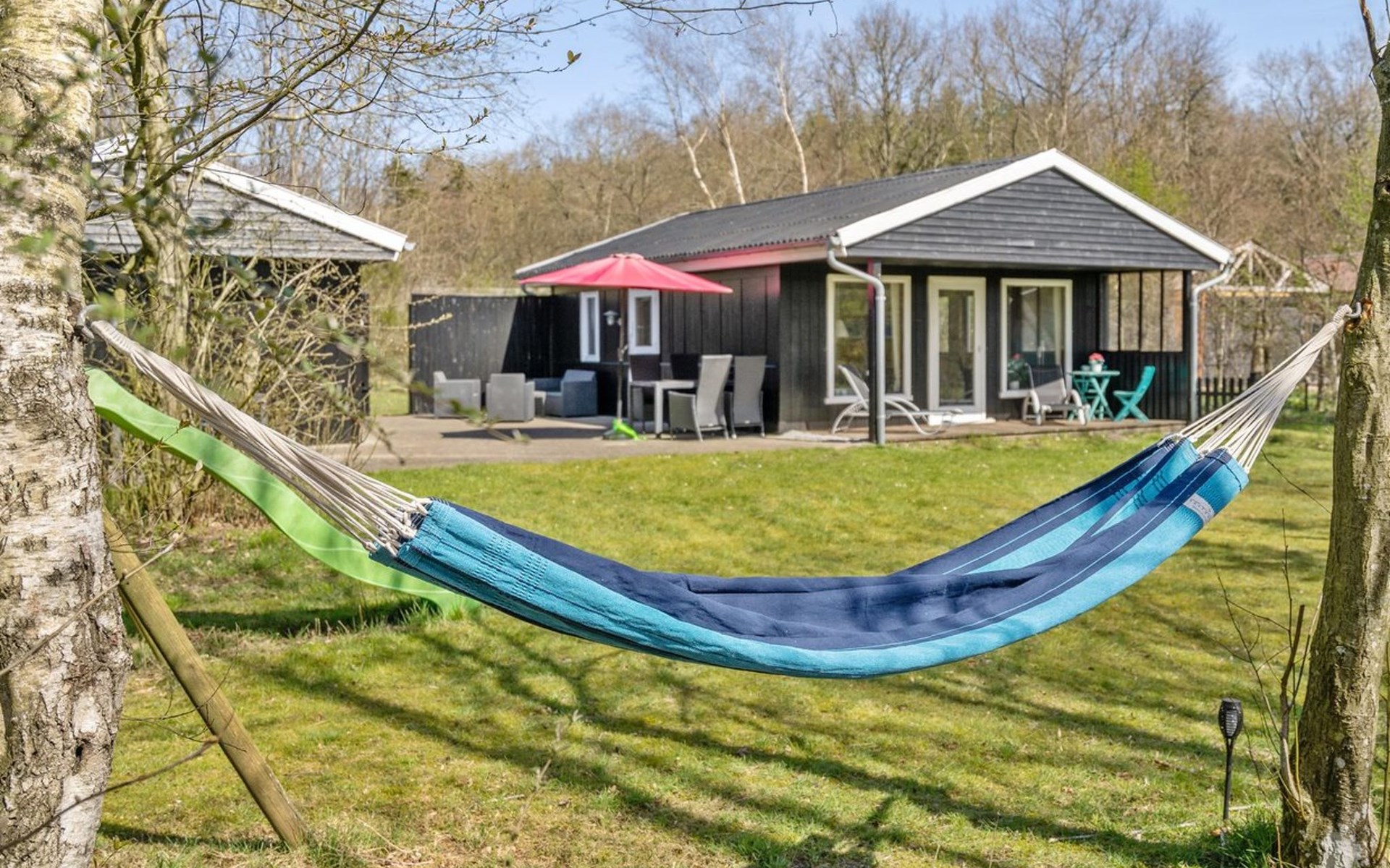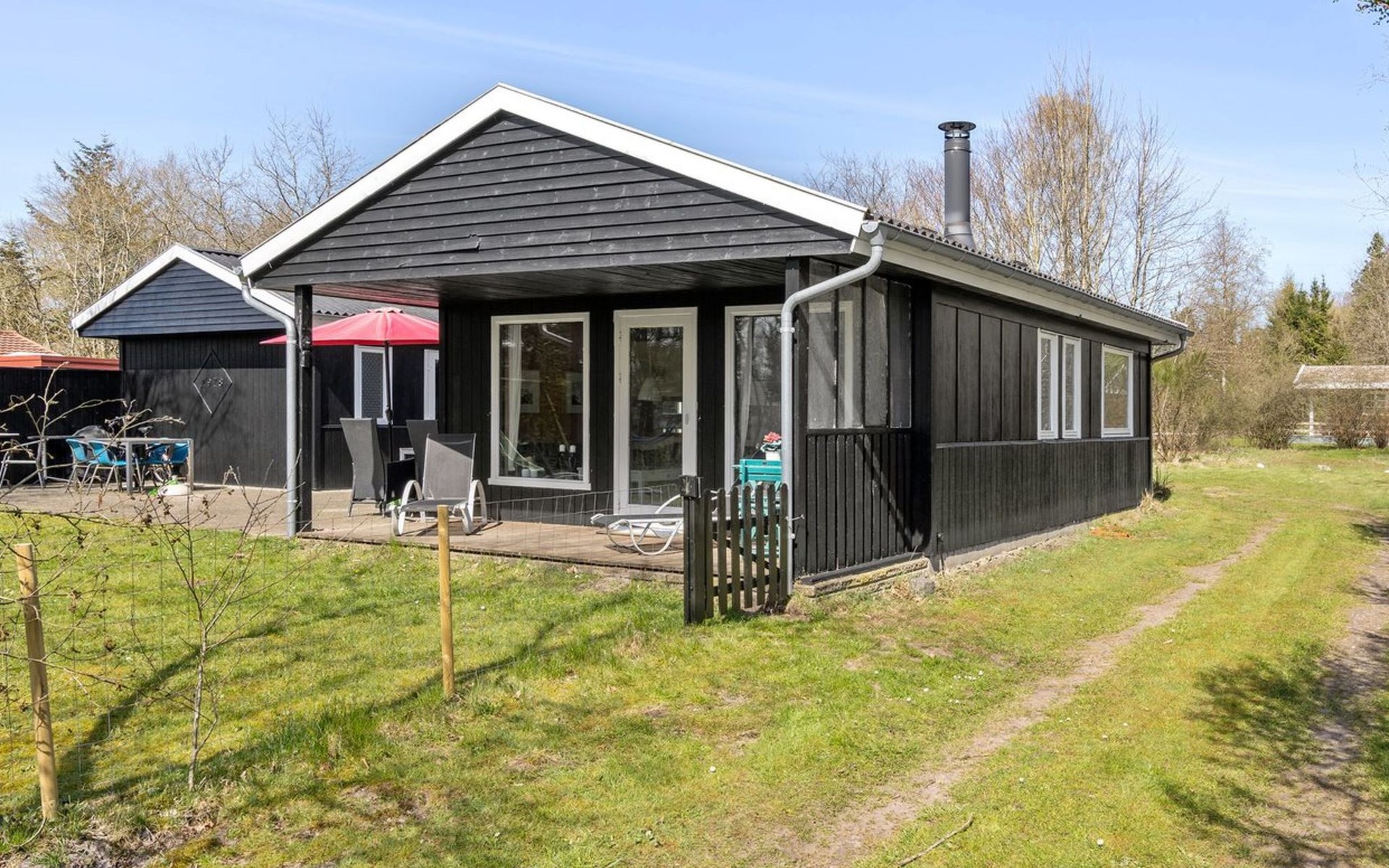 Einfamilienhaus, Baujahr 1978. Zur Alleinbenutzung: naturbelassenes Grundstück 877 m2. Terrasse (50 m2), Grill, Kinderspielplatz (Schaukel). Im Hause: Waschmaschine, Wäschetrockner. Parkplatz beim Haus. Lebensmittelgeschäft 500 m. Der Besitzer akzeptiert keine Jugendgruppen.