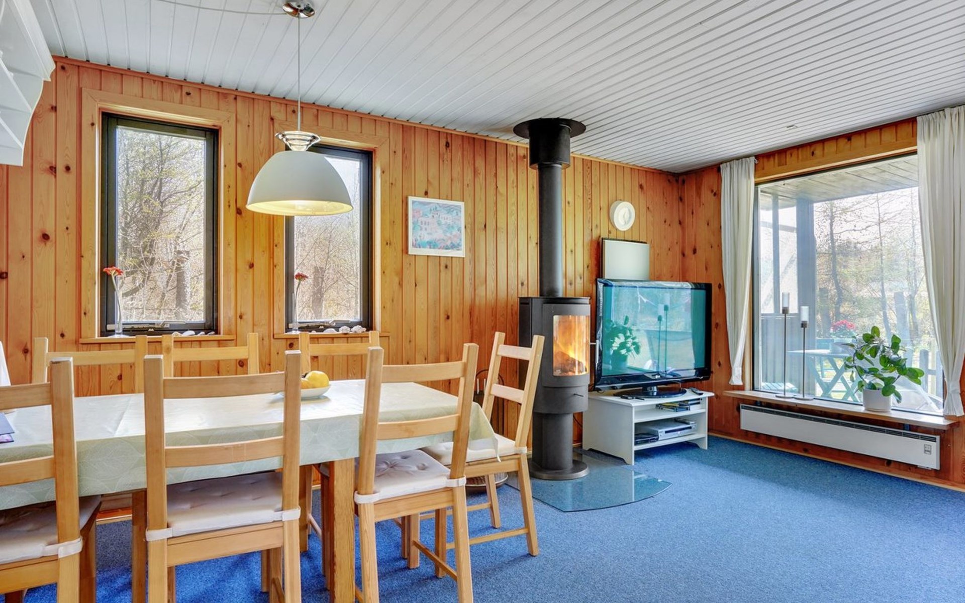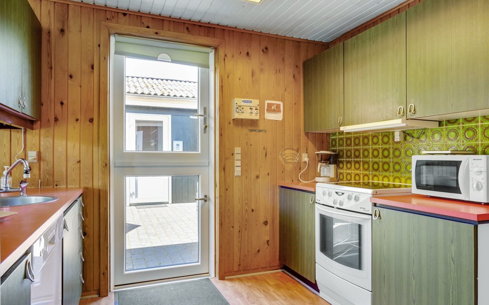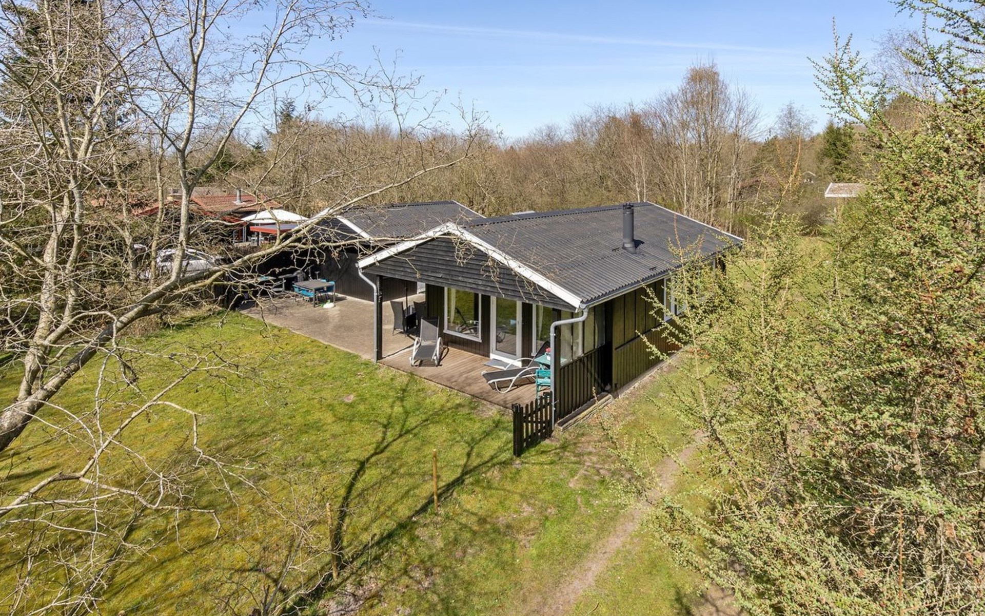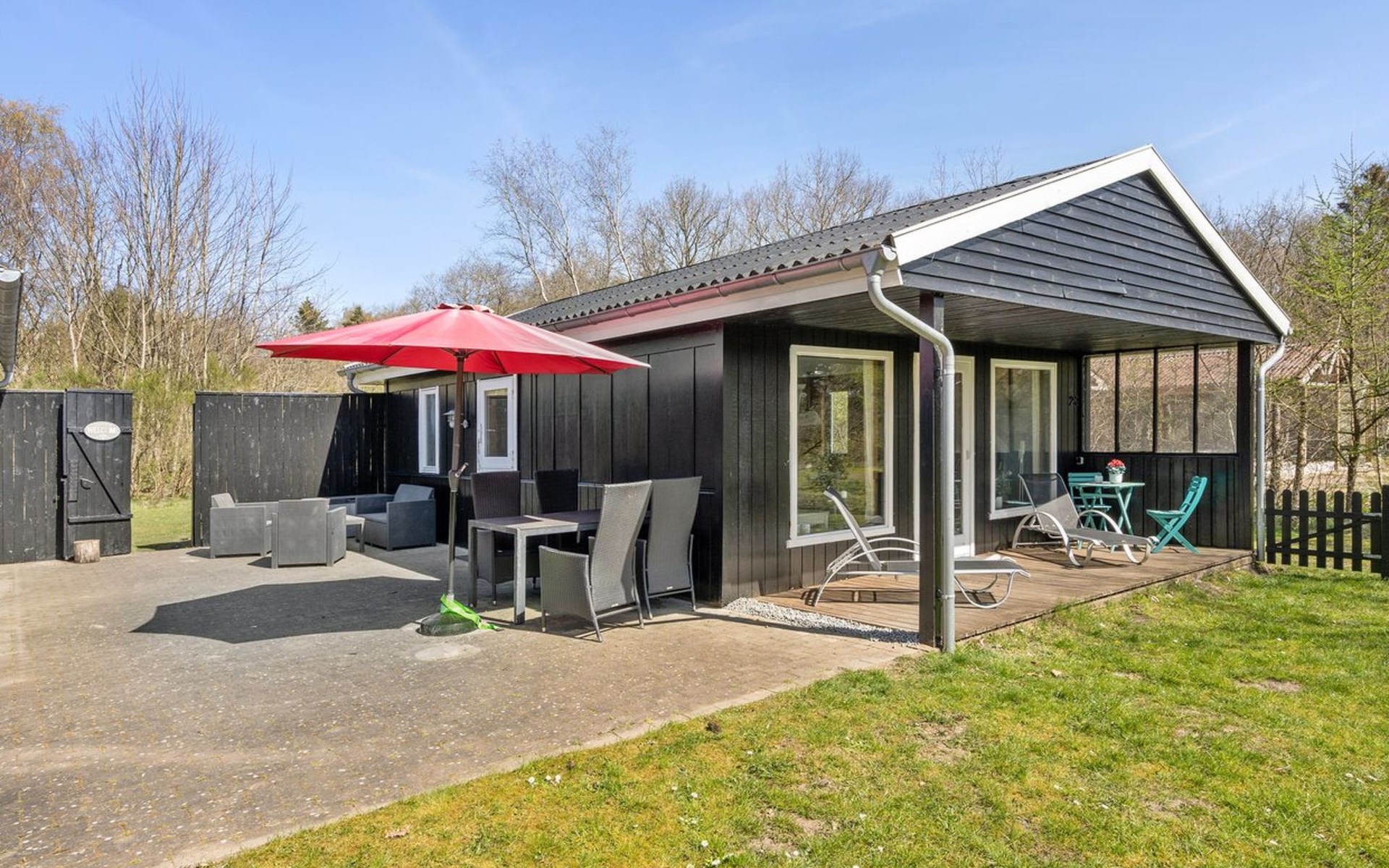 Einfamilienhaus, Baujahr 1978. Zur Alleinbenutzung: naturbelassenes Grundstück 877 m2. Terrasse (50 m2), Grill, Kinderspielplatz (Schaukel). Im Hause: Waschmaschine, Wäschetrockner. Parkplatz beim Haus. Lebensmittelgeschäft 500 m. Der Besitzer akzeptiert keine Jugendgruppen.