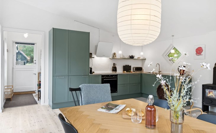 Einfamilienhaus, Baujahr 2007. 750 m vom Meer. Zur Alleinbenutzung: naturbelassenes Grundstück 2'590 m2. Grill. Im Hause: Waschmaschine. Parkplatz beim Haus. Carport. Lebensmittelgeschäft 2.5 km. Golfplatz 4.6 km. Der Besitzer akzeptiert keine Jugendgruppen.