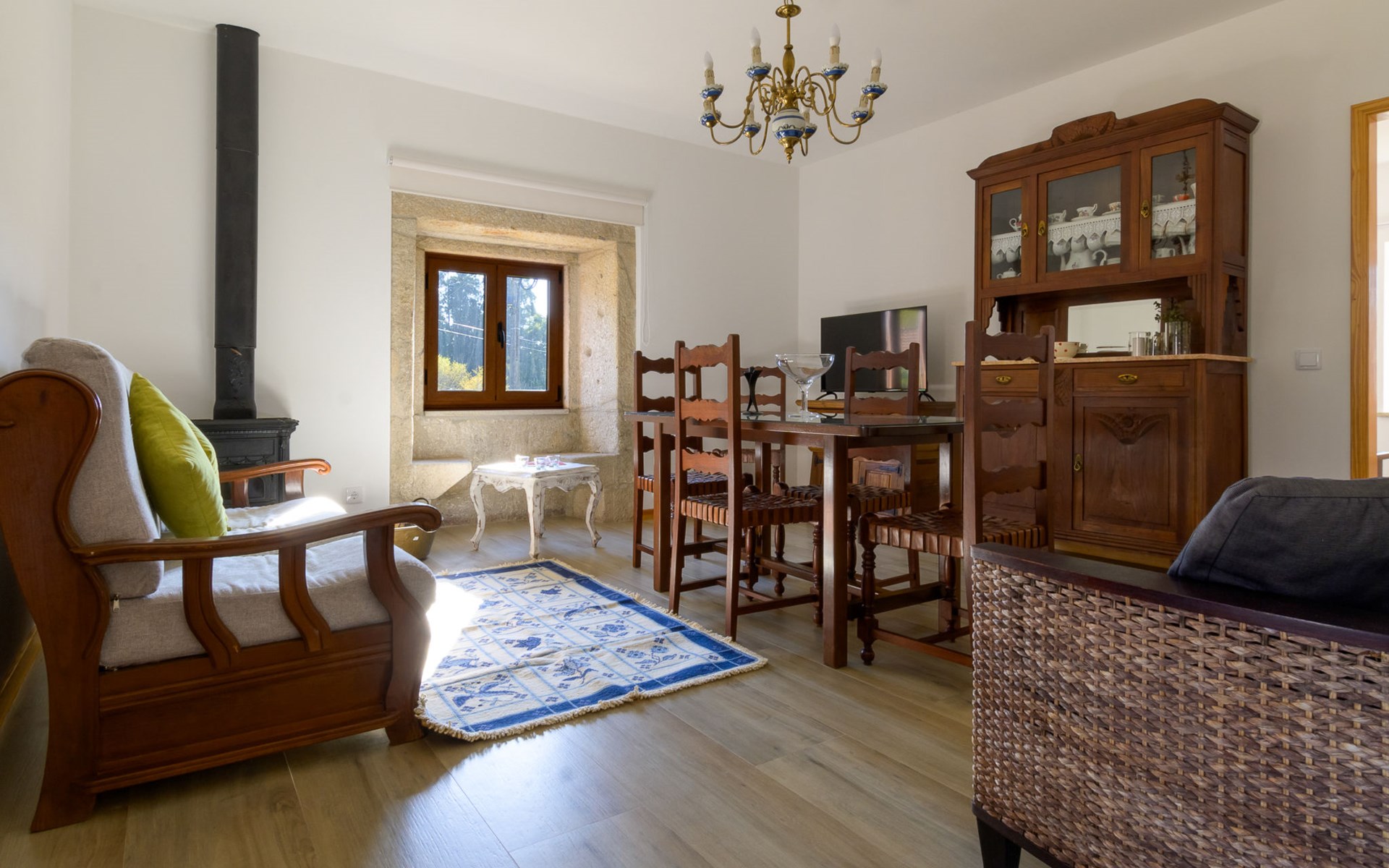 Vilar de Mouros: Sehr schönes, gemütliches Landhaus "Pedra", renoviert im Jahre 2024, umgeben von Bäumen und Feldern. Ausserhalb des Ortes, 1 km vom Zentrum von Vilar de Mouros, im Grünen. Zur Alleinbenutzung: naturbelassenes Grundstück. Im Hause: Wireless LAN. Parkplatz beim Haus auf dem Grundstück. Lebensmittelgeschäft, Supermarkt 800 m, Einkaufszentrum 7.5 km, Restaurant 900 m, Bar 600 m, Bäckerei 800 m, Café 850 m, Fußgängerzone 100 m, Bushaltestelle 7.5 km, Sandstrand "Azenhas de Vilar de Mouros Fluvi" 1.5 km. Nahe gelegene Sehenswürdigkeiten: Cascata do Pincho, Montaria 16.8 km, Miradouro do Cervo, Lovelhe 13.3 km, Muralhas e Praia do Camarido 9 km, Fortaleza de Valença 26.6 km, Caminha 7.7 km, Torre do Relógio e Porta Medieval 7.7 km. Bekannte Seen in der Umgebung sind gut erreichbar: Rio Coura 1.5 km. Wandergebiete: Passeio Marítimo da Guarda por N13 13.2 km. Bitte beachten: Fahrzeug empfohlen. Geeignet für Familien. Be- und Entladen am Ferienhaus möglich.