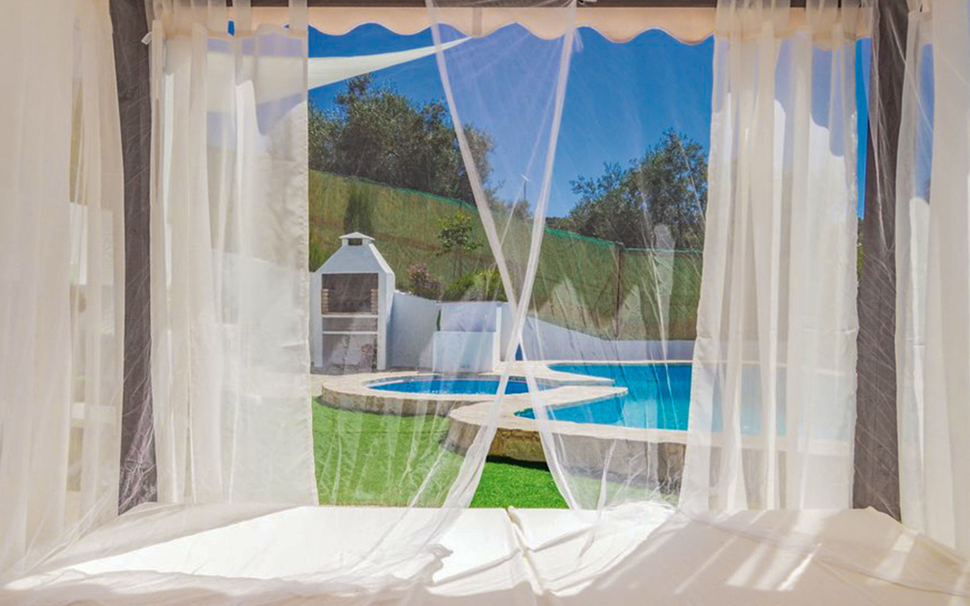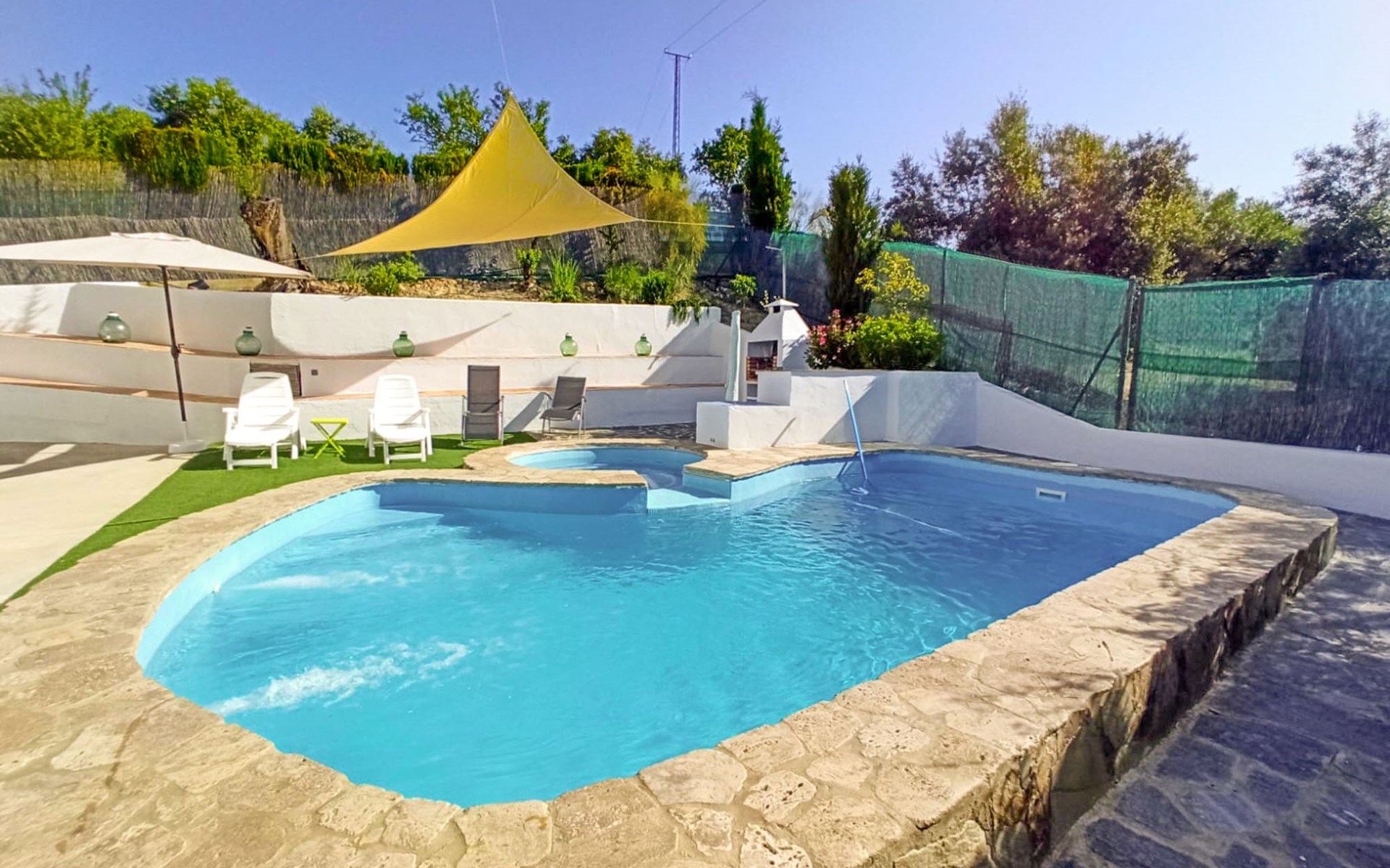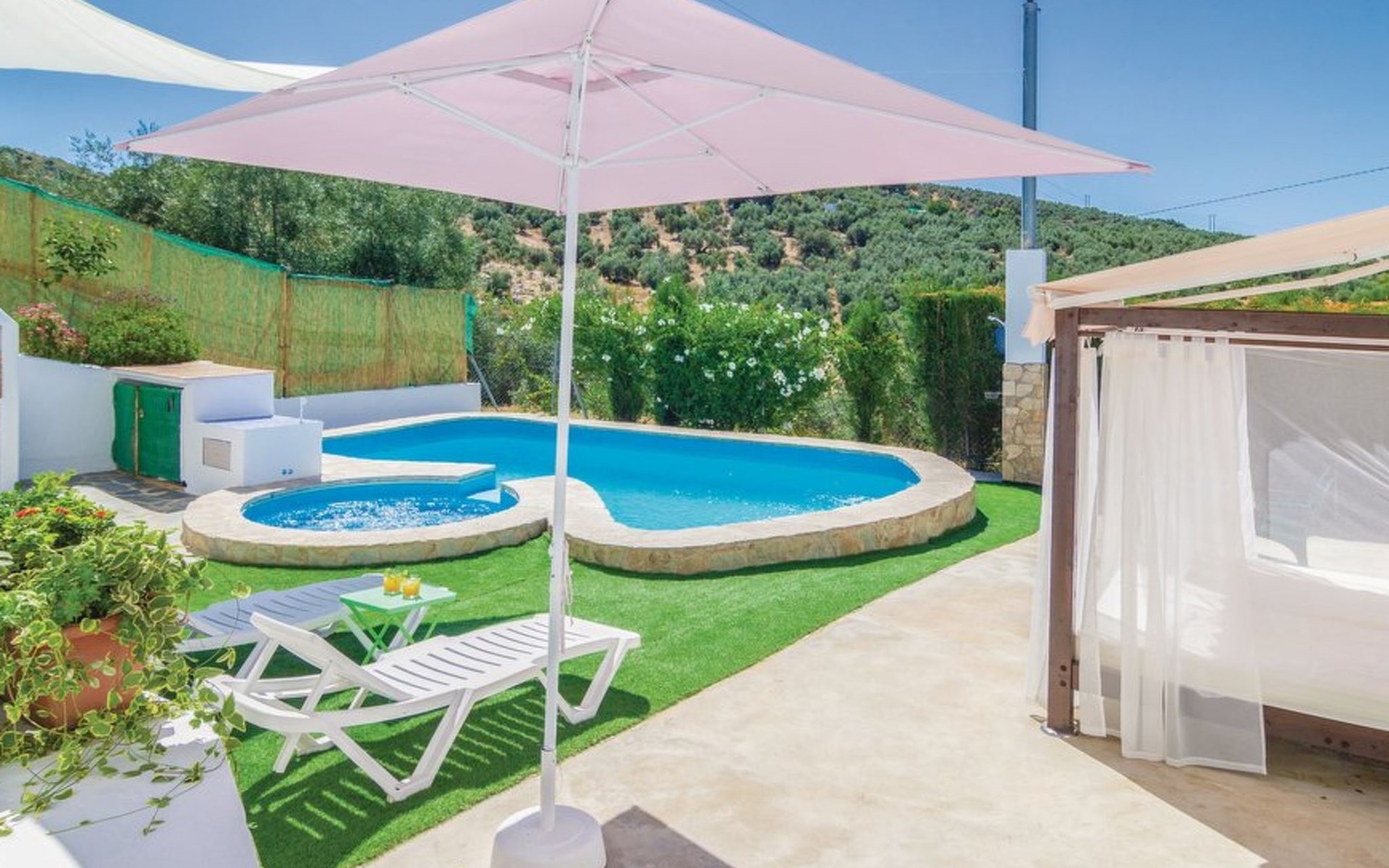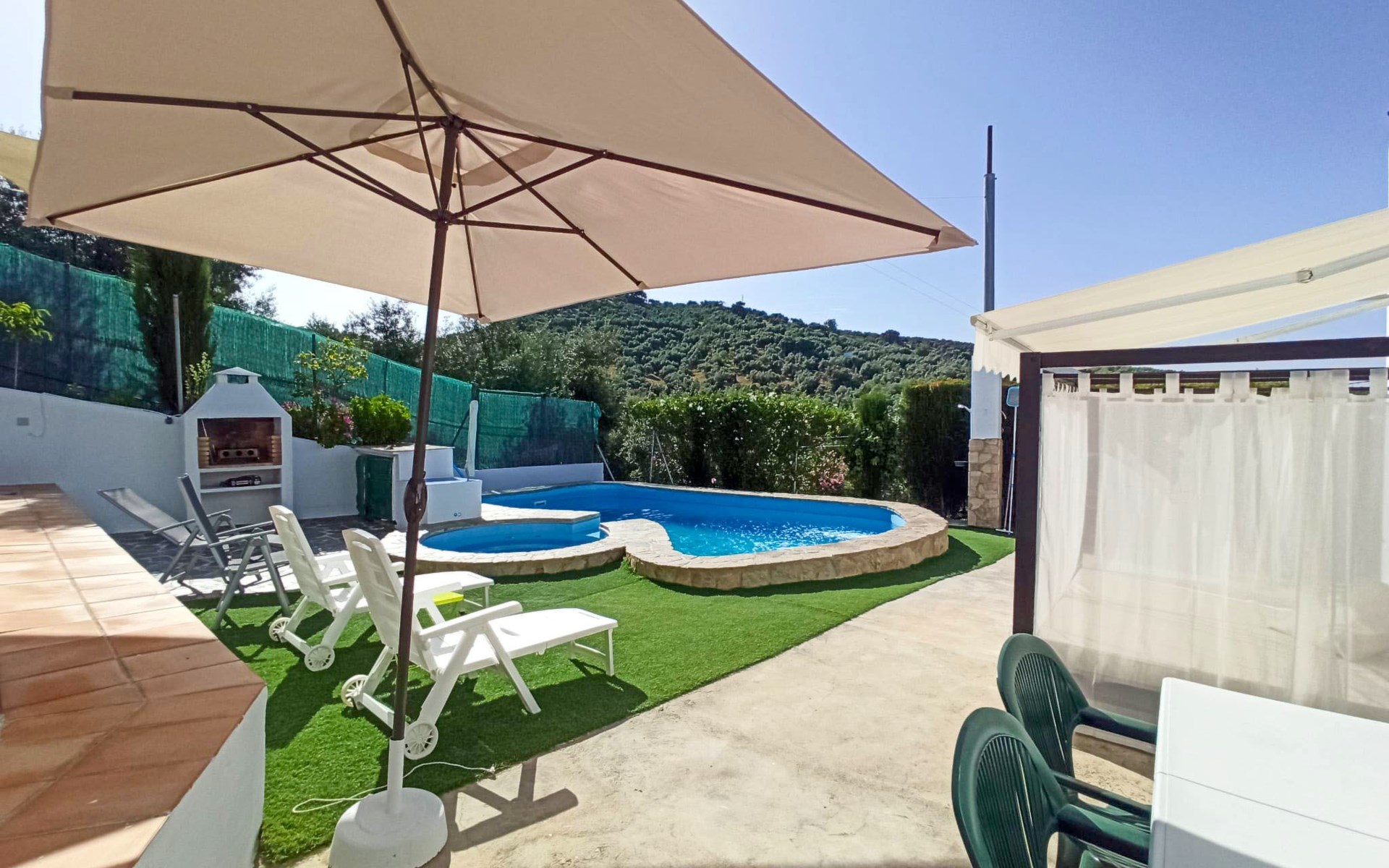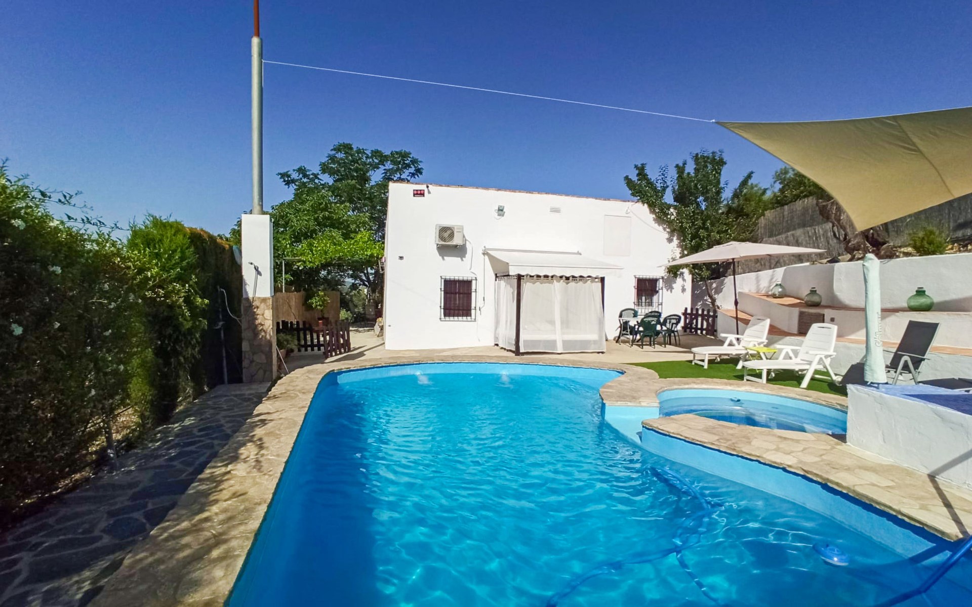 Komfortables Bauernhaus "El Viso". Alleinstehende, ruhige, sonnige Lage. Zur Alleinbenutzung: Garten 300 m2 mit Rasen, Schwimmbad (4 x 7 m, 120 - 200 cm tief, saisonale Verfügbarkeit: 01.Jan. - 31.Dez.). Aussendusche, Sprudelbad, Terrasse, Gartenmöbel, Grill, Parkplatz (für 3 Autos) beim Haus. Einkaufsgeschäft 500 m, Supermarkt 7.5 km, Restaurant 7.5 km, Bar 7.5 km, Café 7.5 km, Bushaltestelle "Zambra" 6 km, Sandstrand 109 km. Nahe gelegene Sehenswürdigkeiten: Antequera 62 km, Córdoba 80 km, Granada 118 km. Wandergebiete: Sierras Subbéticas 17 km, Laguna de Fuente de Piedra 70 km. Jugendgruppen nur auf Anfrage. Der Besitzer akzeptiert keine Gruppen.