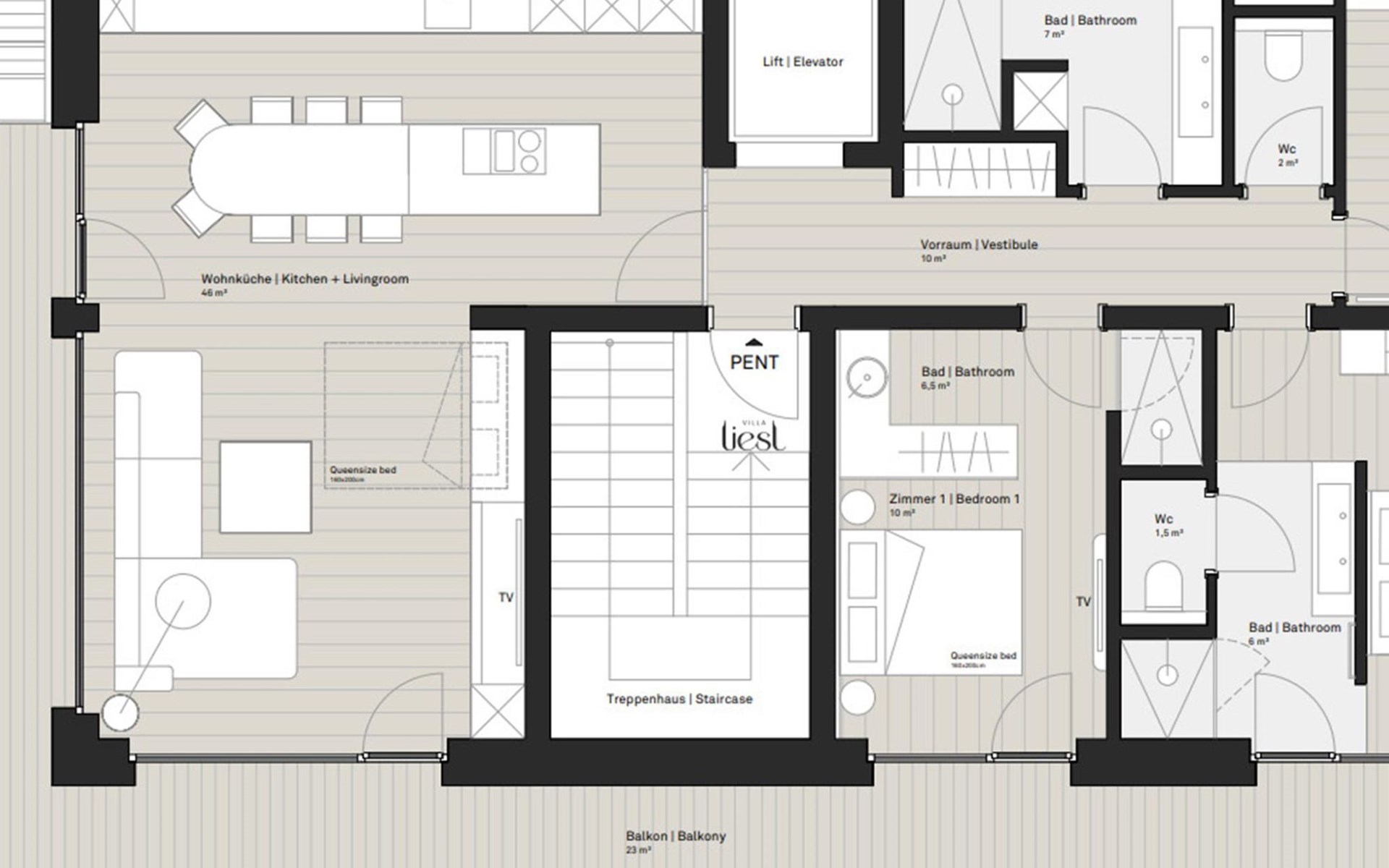 Haus im Ennstal: Modernes Appartementhaus "Villa Liesl by AlpsResorts", auf 3 Stockwerken. 200 m vom Zentrum von Haus im Ennstal, 400 m vom Skigebiet. Im Hause: Empfang, Einstellraum für Fahrräder, Skiraum, Zentralheizung, Skischuhtrockner. Parkplatz (überdacht). E-Ladestation. Supermarkt 250 m, Bahnstation "Schladming" 3 km. Golfplatz (18 Loch) 2.5 km, Skisportanlagen 400 m, Skiverleih 400 m, Skischule. Bekannte Skigebiete sind gut erreichbar: Schladming Planei, Ski Amade 400 m. Bitte beachten: Jugendgruppen nur auf Anfrage. Gratis Skibus. Der gratis Skibus fährt zum Skigebiet Ski Amade.
