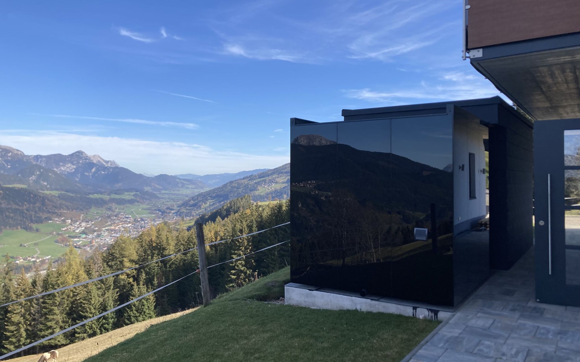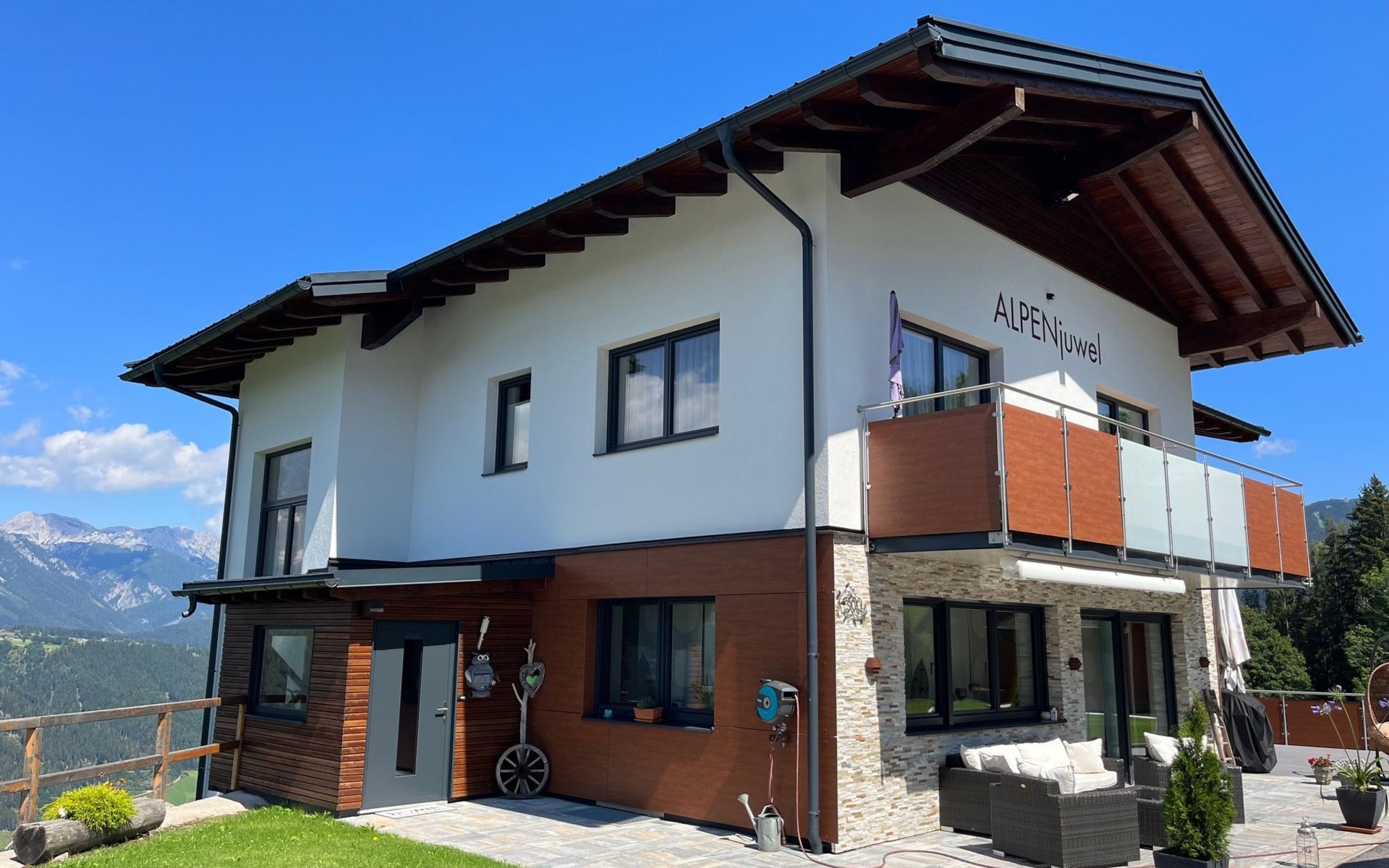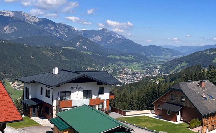 Schladming-Dachstein Sommercard (ca. Ende Mai-Ende Oktober) mit vielen Vorteilen inkludiert ! modernes, komfortables Dreifamilienhaus "Alpenjuwel", 1'132 m.ü.M., Baujahr 2016, umgeben von Bäumen und Wiesen. Im Ortsteil Rohrmoos, 6 km vom Zentrum von Schladming, 3 km vom Zentrum von Rohrmoos, alleinstehende, erhöhte Lage auf einem Hügel, 1 km vom Skigebiet, im Grünen. Zur Mitbenutzung: grosser Garten 1'300 m2 (nicht eingezäunt) mit Rasen. Im Hause: Sauna (extra). Einstellraum für Fahrräder, Skiraum, Skischuhtrockner. Brötchenservice. 6 km lange Zufahrt bis zum Grundstück (Bergstrasse). Im Winter bitte Schneeketten mitbringen. Einkaufsgeschäft 3 km, Supermarkt 6 km, Restaurant 2.5 km, Bushaltestelle 250 m, Bahnstation "Schladming" 6 km, Freibad 6.5 km, Hallenbad 6.5 km, Badesee "Pichl" 12 km. Golfplatz (18 Loch) 11 km, Bergeisenbahn 1 km, Skilift 1 km, Skipisten 1 km, Skibushaltestelle 300 m. Bekannte Skigebiete sind gut erreichbar: Planai 6 km, Hochwurzen 1 km. Bitte beachten: Der Besitzer wohnt im selben Haus. Panorama-Aussensauna gegen Gebühr (Euro 20,-/Stunde).
