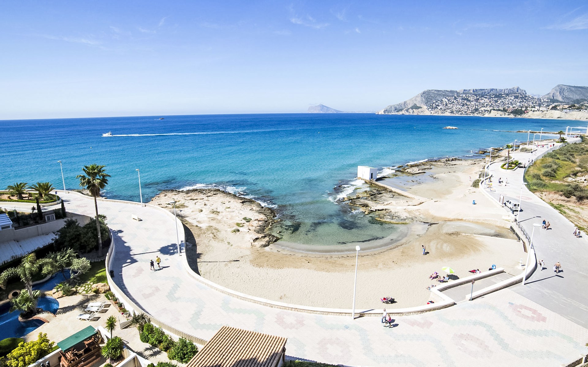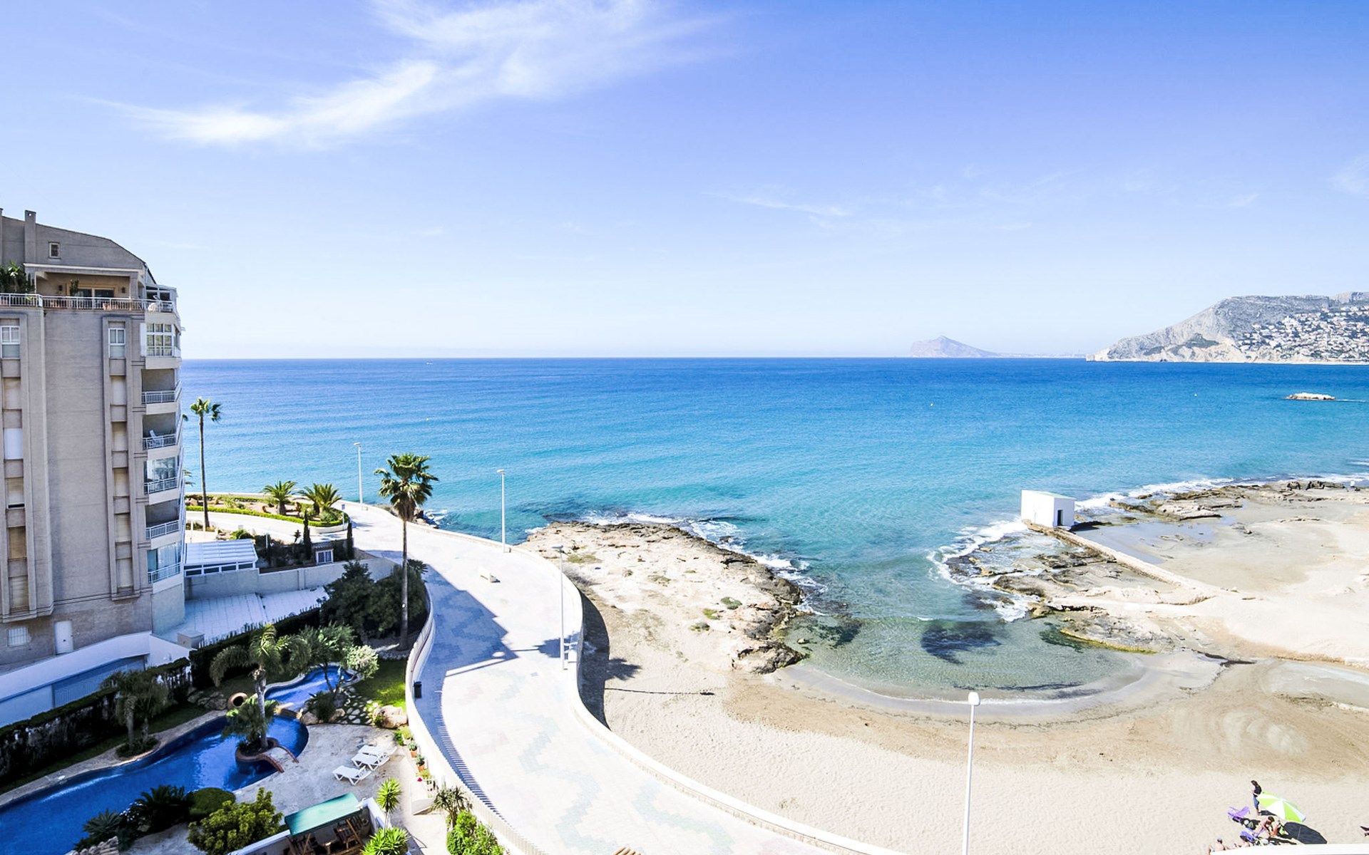 Calpe Playa: Schönes, komfortables Appartementhaus "Realet". Im Ort, 1.2 km vom Zentrum von Calpe, ruhige, sonnige Lage, 10 m vom Meer, direkter Zugang zum Strand. Zur Mitbenutzung: Grundstück (eingezäunt), Schwimmbad (saisonale Verfügbarkeit: 01.Jan. - 31.Dez.). Aussendusche. Im Hause: Wireless LAN, Fahrstuhl. Einkaufsgeschäft, Supermarkt 600 m, Restaurant, Bar 50 m, Bäckerei 600 m, Café, Biergarten 50 m, Bushaltestelle "Parada Bus" 110 m, Sandstrand 50 m. Sporthafen 850 m, Jacht-Hafen, Surfschule, Segelschule. Nahe gelegene Sehenswürdigkeiten: Aqualandia, Mundomar, Terra Mítica, Terra Natura, Benidorm Palace (Benidorm). Wandergebiete: Peñon de Ifach. Bitte beachten: geeignet für Familien, geeignet für Senioren.
