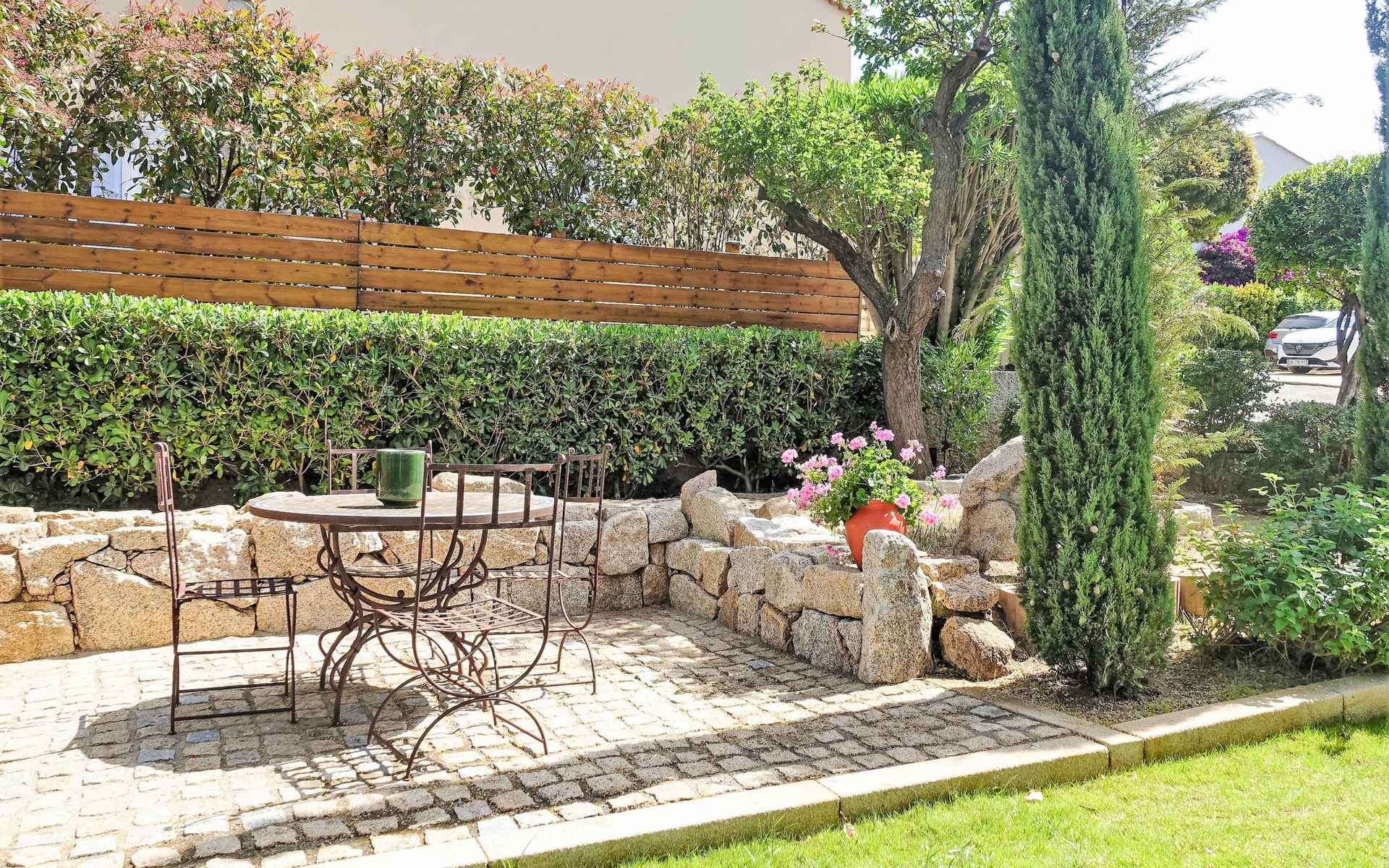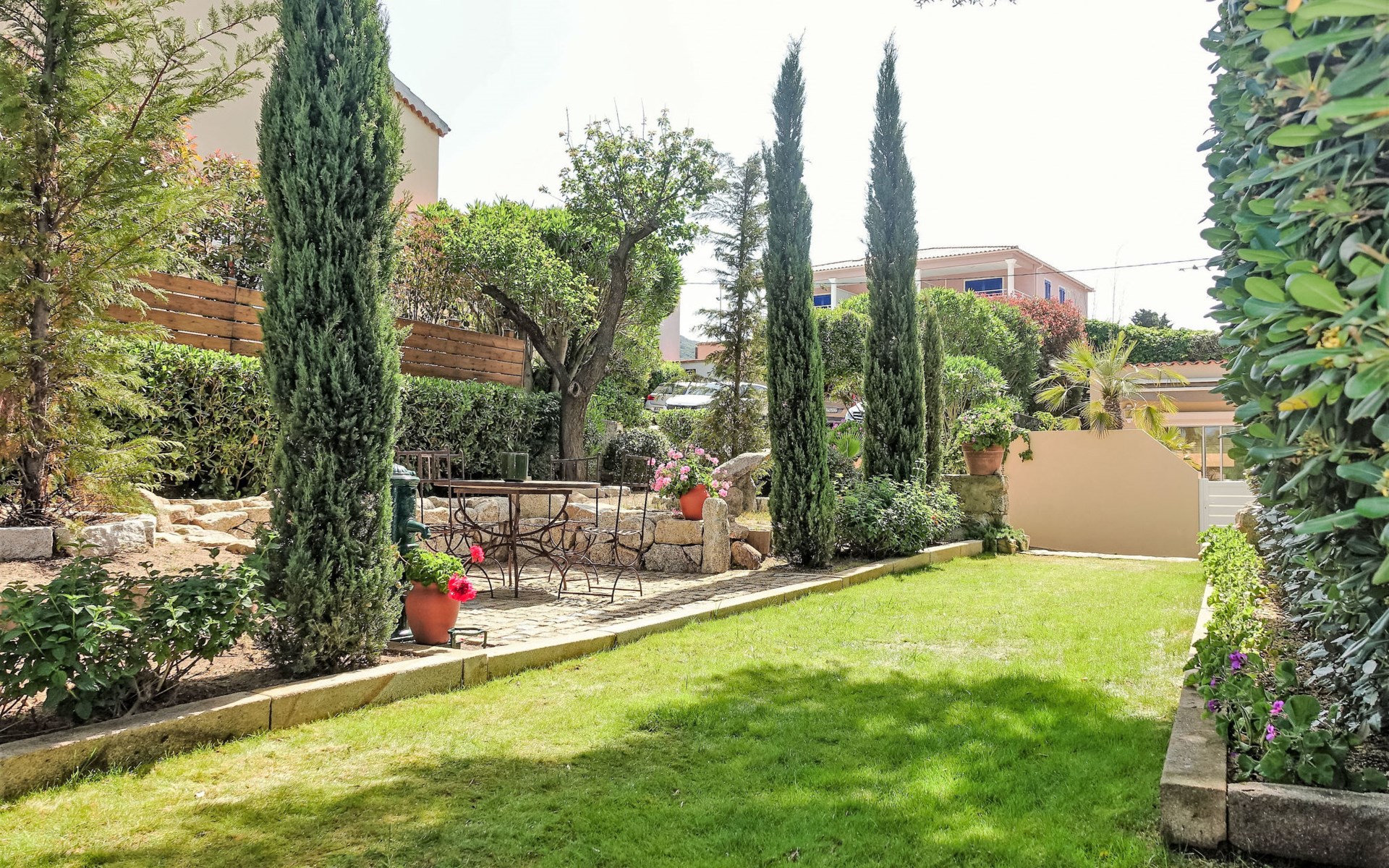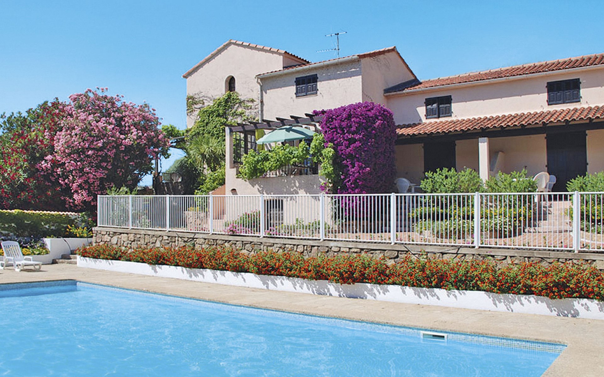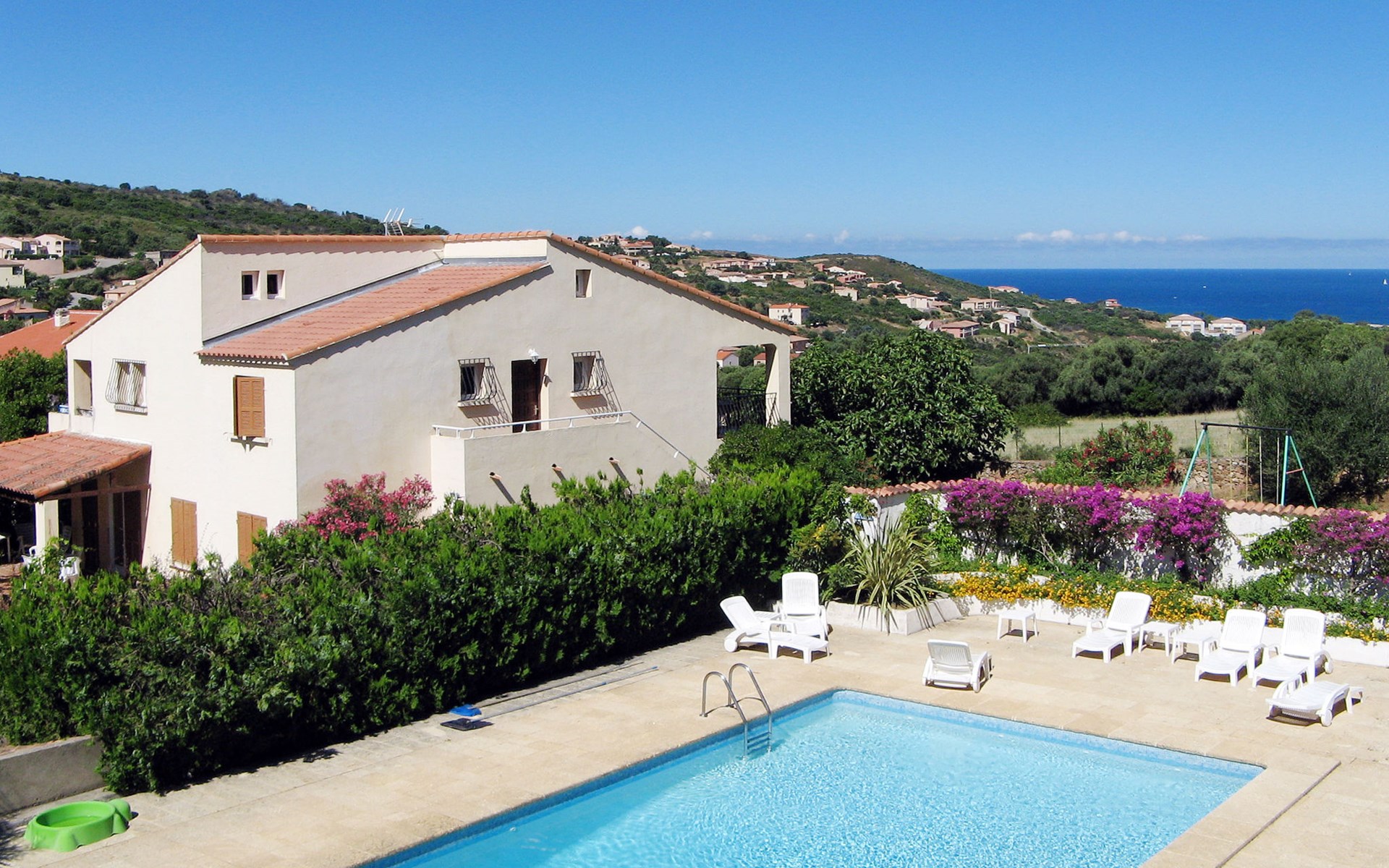 Residenz "Marie Diane". 21 Wohnungen in der Residenz. 700 m vom Zentrum von Propriano, am Ortsrand, 70 km vom Zentrum von Ajaccio, 181 km vom Zentrum von Bastia, sonnige Lage am Hang, 1.3 km vom Meer. Zur Mitbenutzung: Grundstück (eingezäunt), gepflegter terrassierter Garten mit Blumen und Bäumen, Schwimmbad eingezäunt (12 x 6 m, saisonale Verfügbarkeit: 15.Mai. - 30.Sep.). Aussendusche. In der Anlage: Tischtennis, Tischfussball, Waschmaschine (zur Mitbenutzung). Parkplatz auf dem Grundstück. Supermarkt 700 m, Bushaltestelle 1.5 km, Sandstrand 1.3 km. Bitte beachten: Fahrzeug empfohlen. Der Besitzer wohnt auf dem gleichen Grundstück. Das Foto ist nur ein Hausbeispiel.