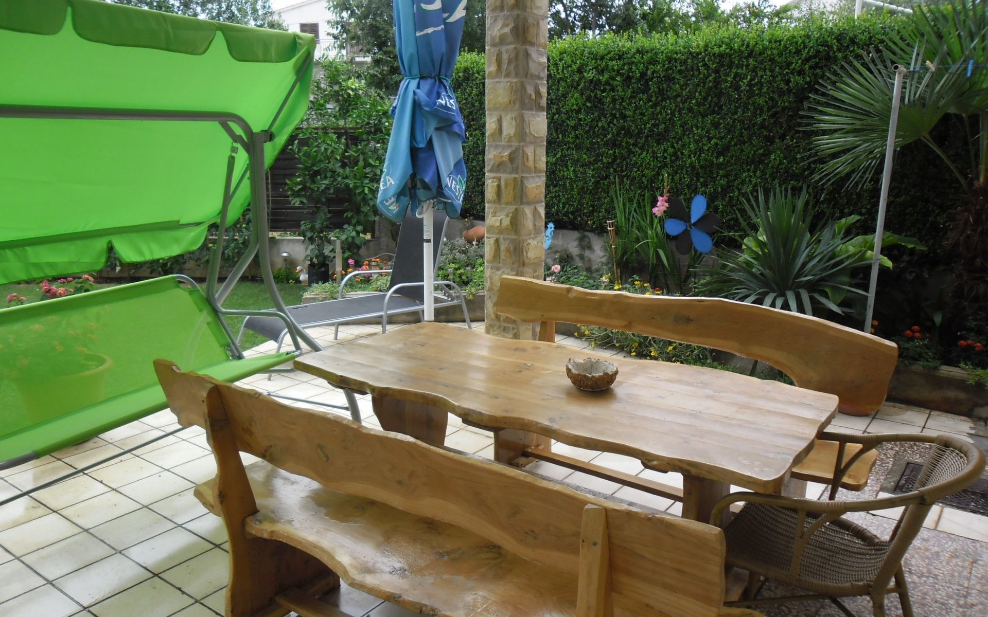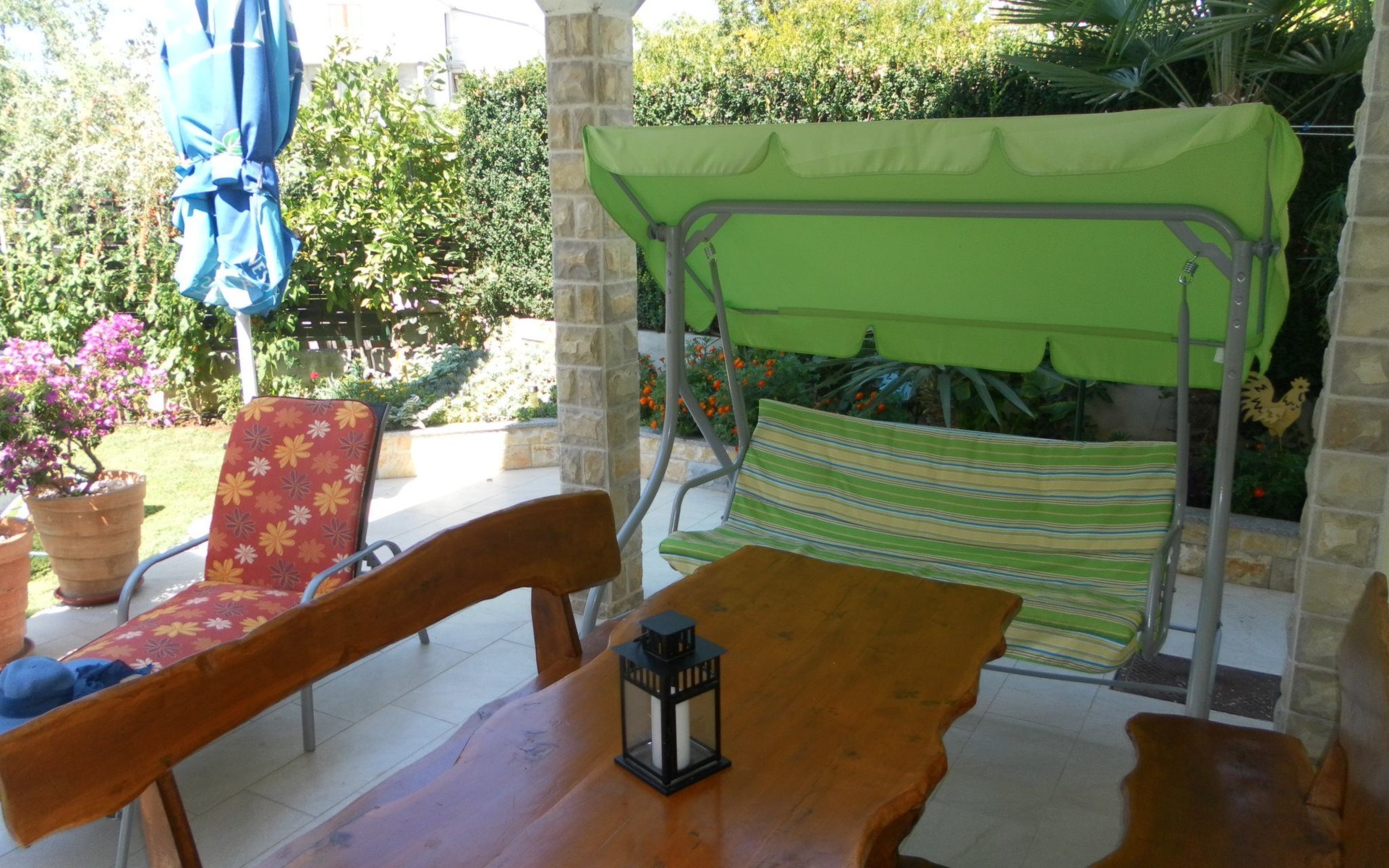 Der Außenbereich lädt mit einer einladenden Terrasse direkt vor dem Eingang zum Entspannen ein. Komplett möbliert mit bequemen Sitzgelegenheiten und einer Schaukel, ist es der perfekte Ort, um die Seele baumeln zu lassen und den Blick auf den liebevoll angelegten Garten und Hof zu genießen. Ein Parkplatz mit ausreichend Platz für bis zu fünf Fahrzeuge steht ebenfalls zu Ihrer Verfügung.