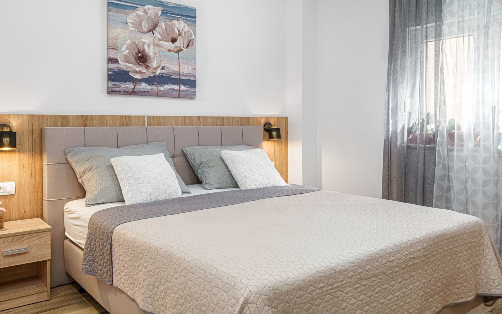 Nicht nur die Wohnung selbst, auch die Umgebung hat einiges zu bieten. Mit nur 500 Metern Entfernung zum blauen Strand und dem Stadtzentrum liegen Entspannung und städtisches Flair gleichermaßen nah. Innerhalb eines Radius von 600 Metern finden sich alle nötigen Einrichtungen – vom ersten Laden, der nur 150 Meter entfernt ist, über eine Bäckerei nach 200 Metern bis hin zu Markt, Bank, Restaurants, Apotheke und Arzt in 600 Metern Entfernung. Hier haben Sie alles, was Sie für einen unbeschwerten Aufenthalt benötigen, in unmittelbarer Nähe.