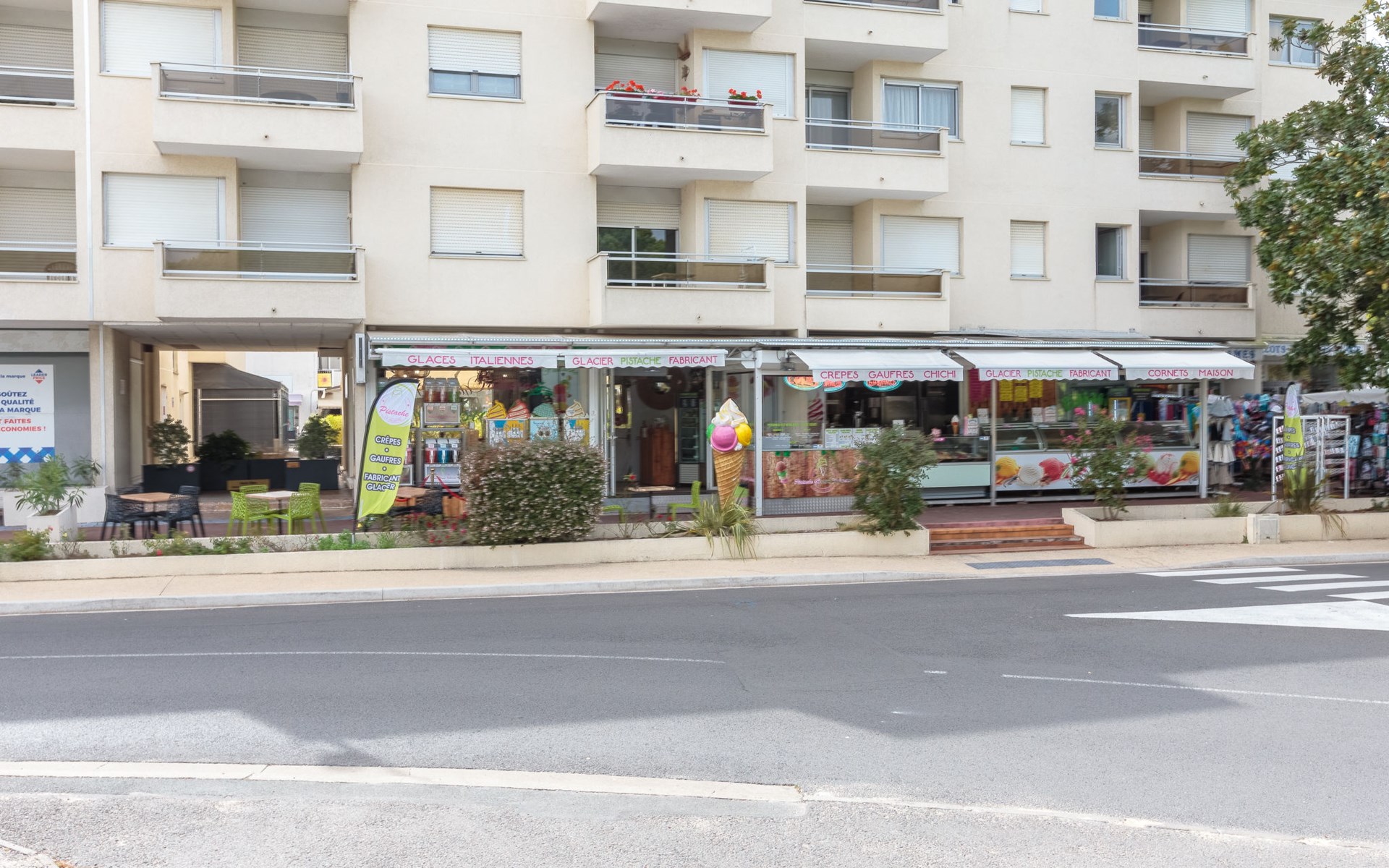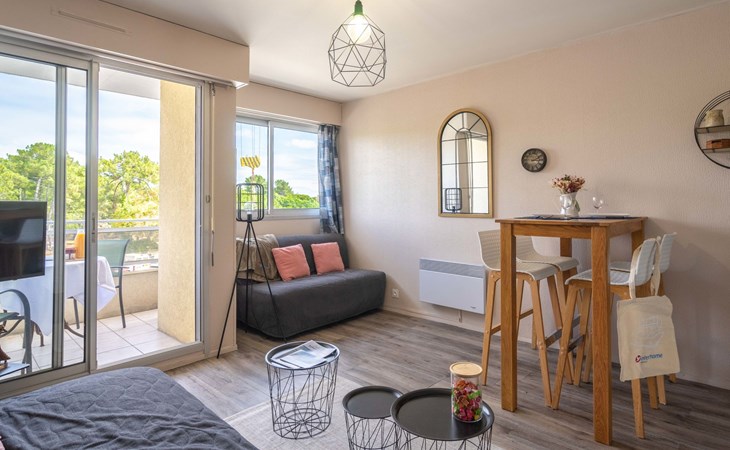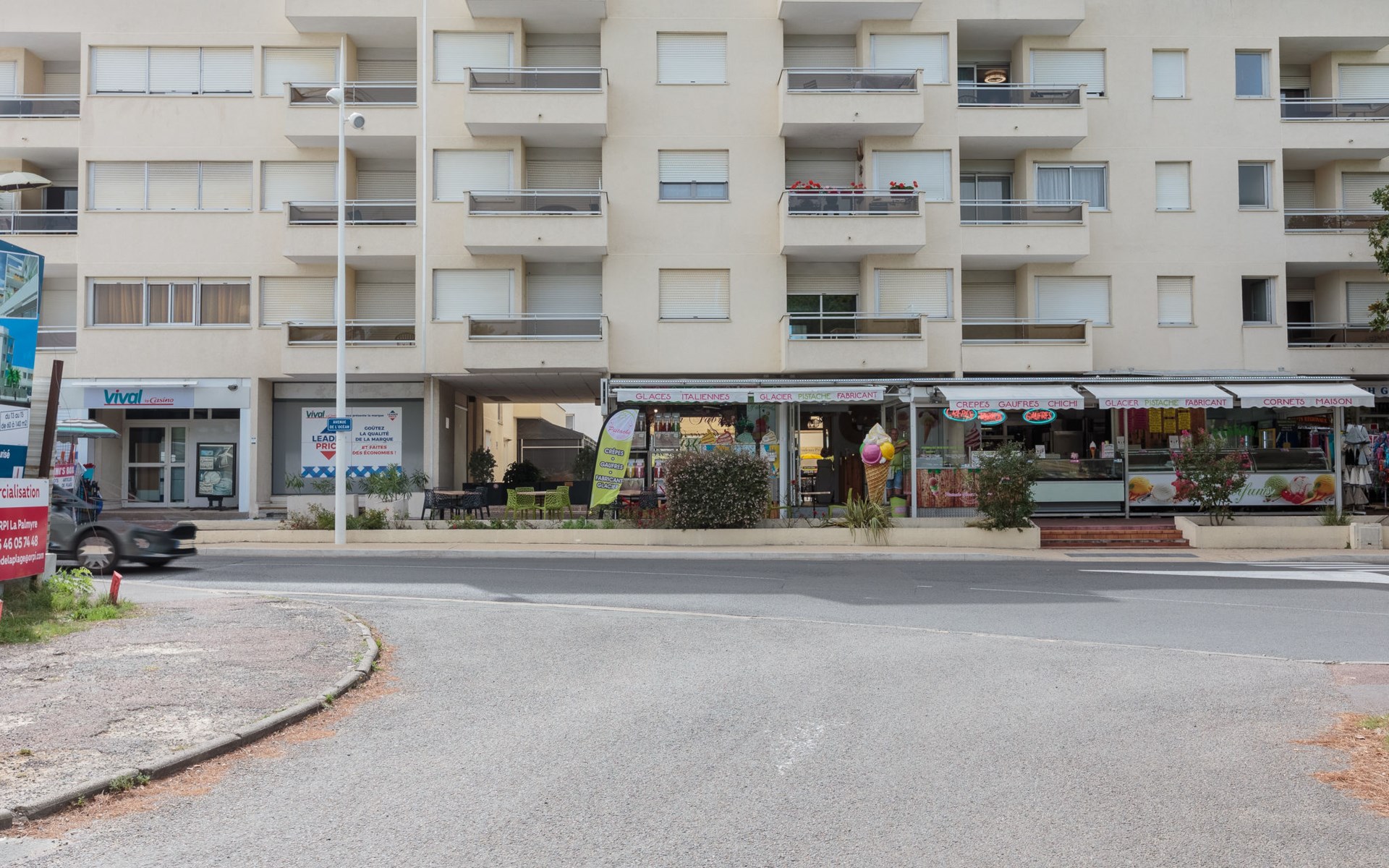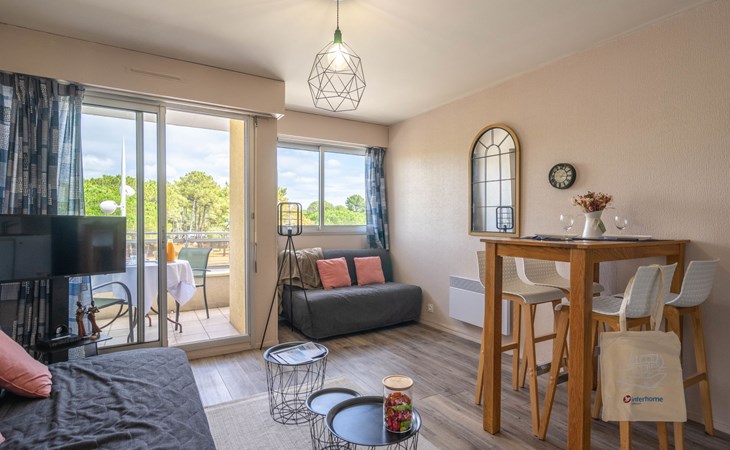 La Palmyre 15 km von Royan: Residenz "Les Ecureuils", auf 4 Stockwerken. Im Ortszentrum von La Palmyre, belebte Lage, im Herzen der Stadt, 1 km vom Meer, 1 km vom Strand. Im Hause: Fahrstuhl. Einkaufsgeschäft 20 m, Lebensmittelgeschäft, Supermarkt, Restaurant, Bar, Bäckerei 20 m, Bahnstation "Royan" 17 km, Sandstrand "La Palmyre" 1 km, Thermalbad "Thalassothérapie Thalazur Royan" 15 km. Sporthafen 900 m, Golfplatz (9 Loch) 2.5 km, Surfschule 350 m, Segelschule 1.3 km, Minigolf 900 m, Reitstall 5 km. Nahe gelegene Sehenswürdigkeiten: Parc d'attraction Youpi-Land 1 km, Zoo de La Palmyre 1.3 km, Hippodrome - La Palmyre 1.3 km, Luna Park (Juillet - Août) 5 km, Embarcadère Royan - Le Verdon 15 km, Centre aquatique Iléo - Ile d'Oléron 35 km. Die Schlüsselübergabe findet bei der Agentur Interhome in Vaux sur Mer statt, 13 km.