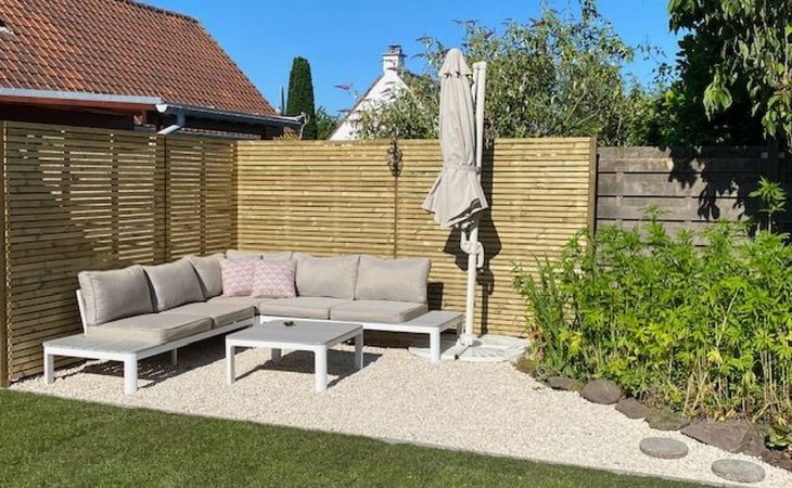 - komplett eingefriedet (mit Mauer, Zaun oder Hecke)